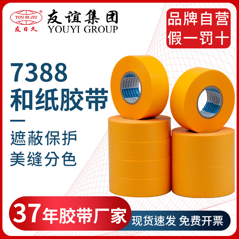 友日久和纸胶带中高粘美纹纸墙面无痕喷涂遮蔽分色纸厂家定制7388