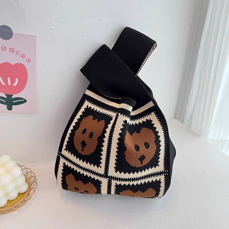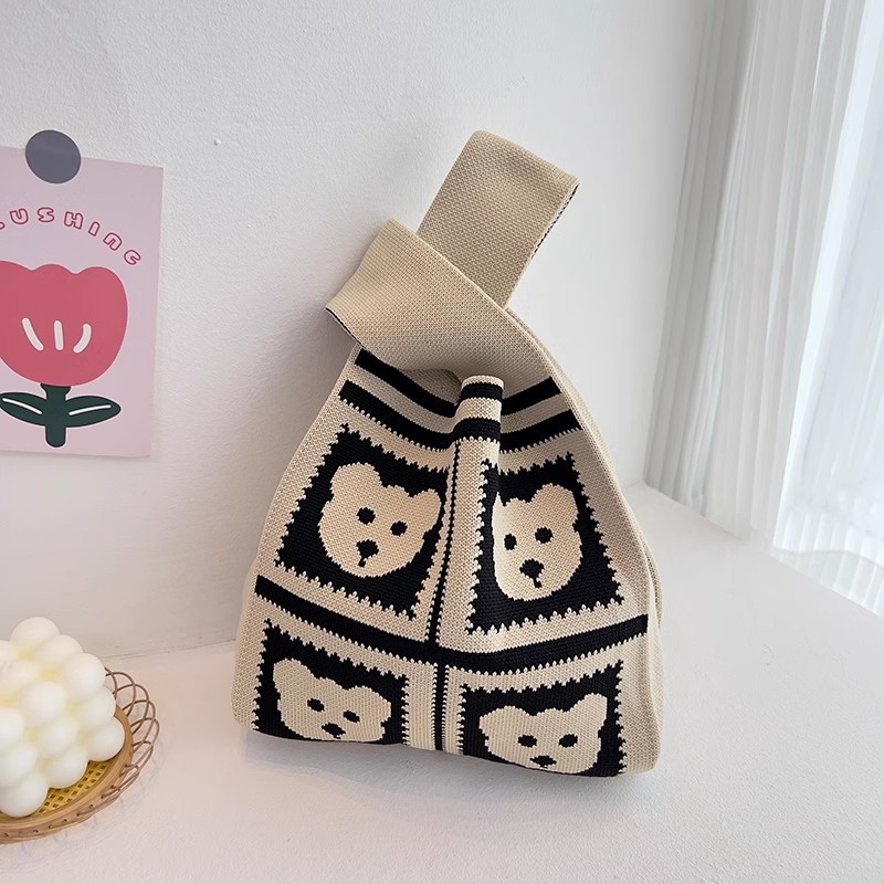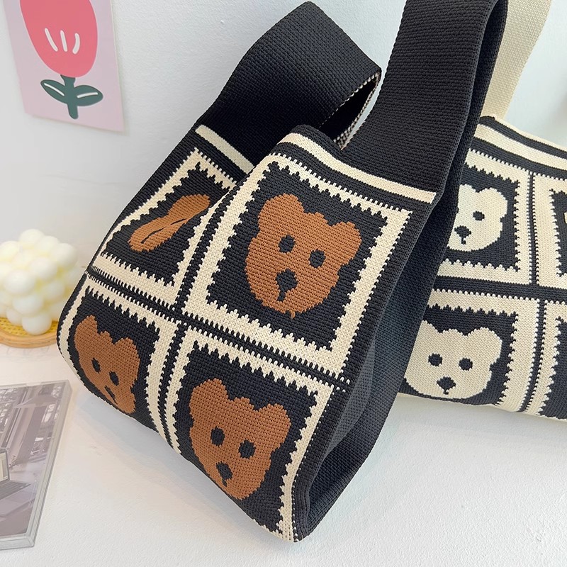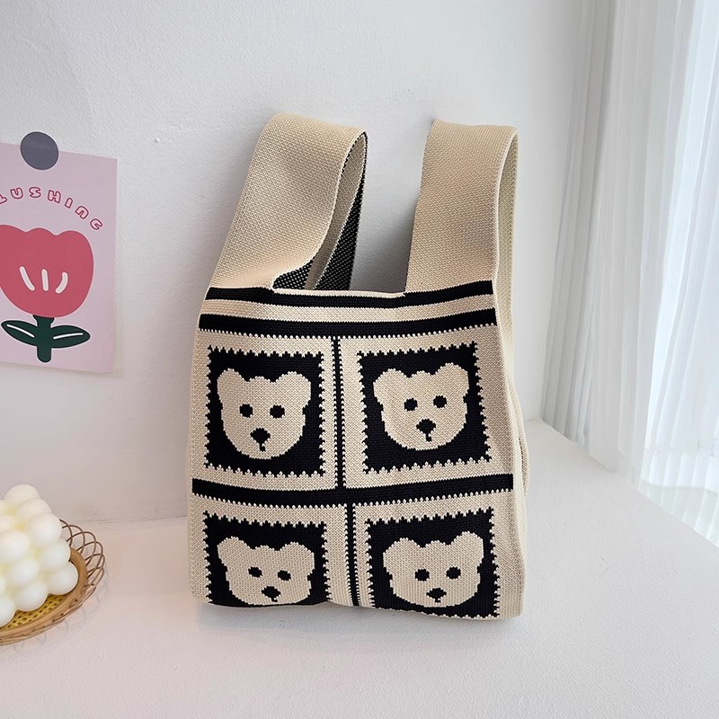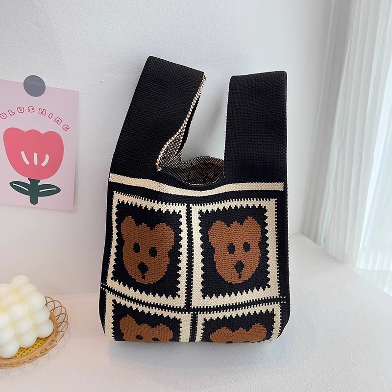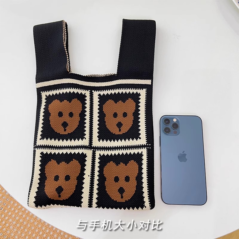 유행 모든 일치 곰 니트 핸드백 핸드백 편리한 접이식 토트 조끼 가방 대용량 버킷 백스토어 가기