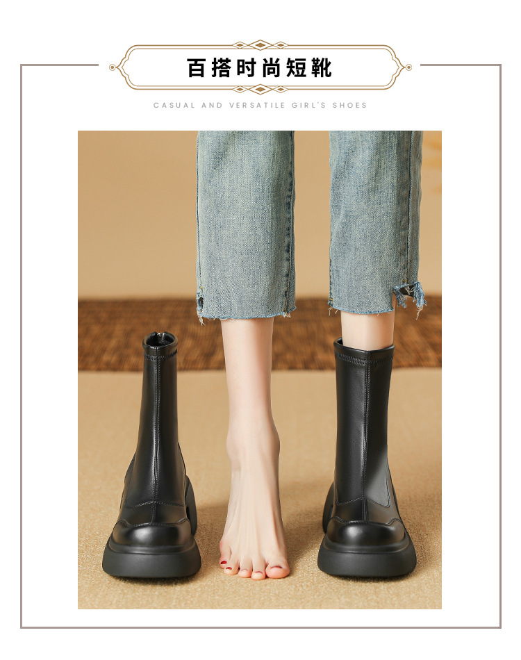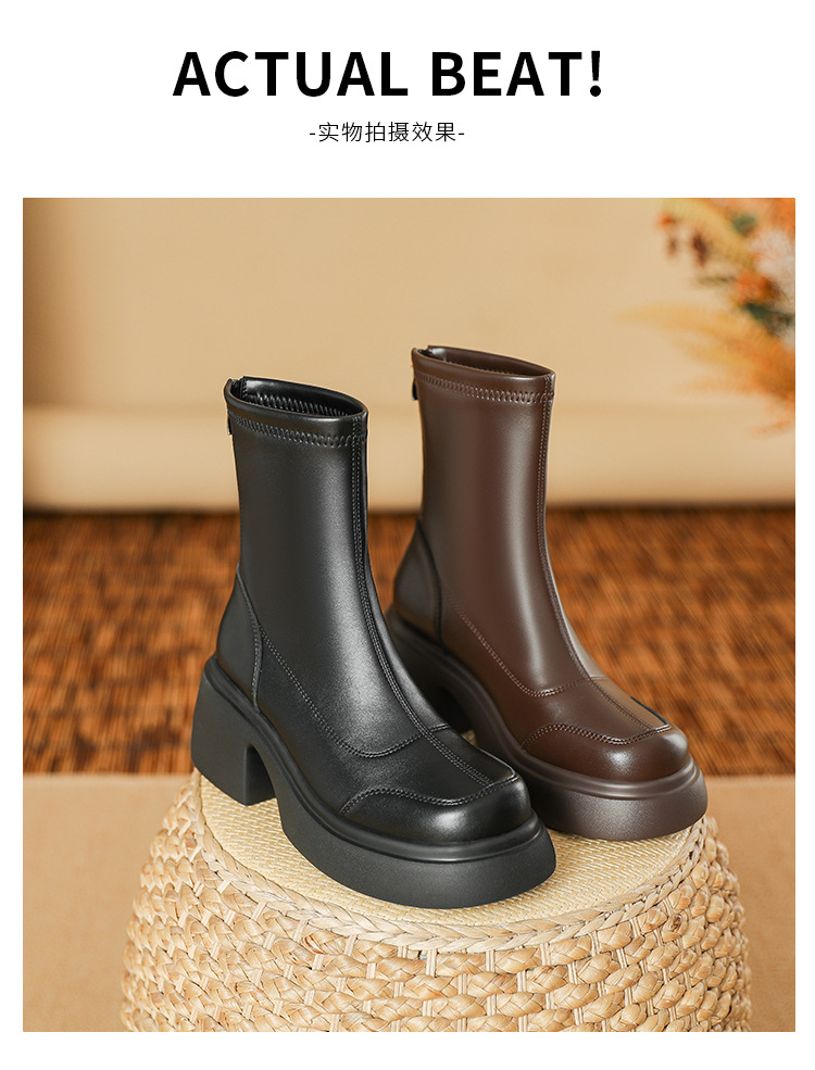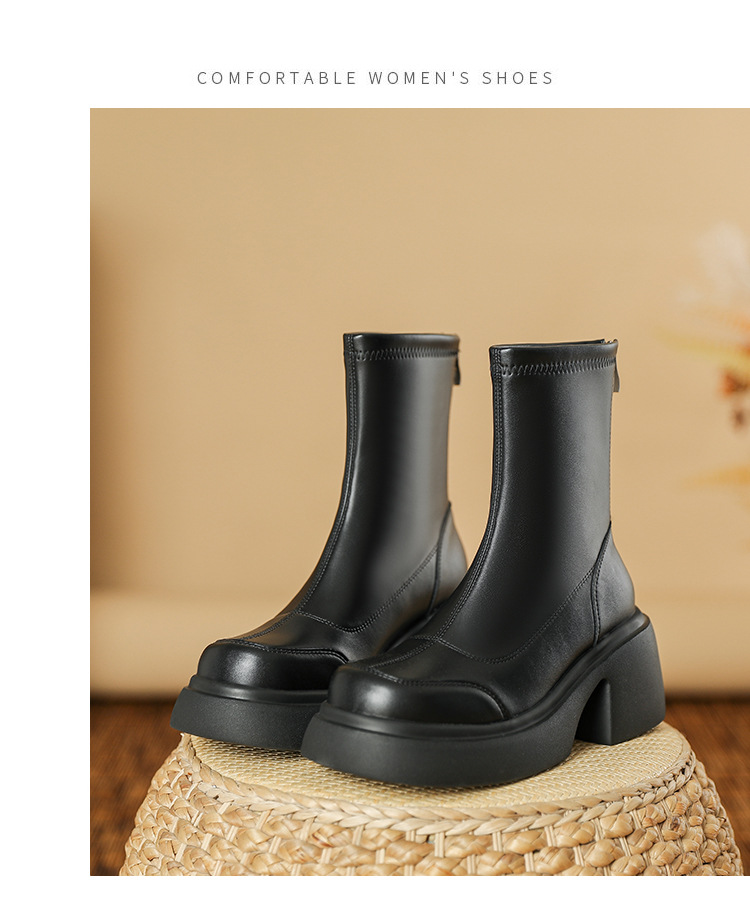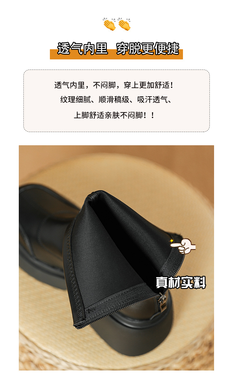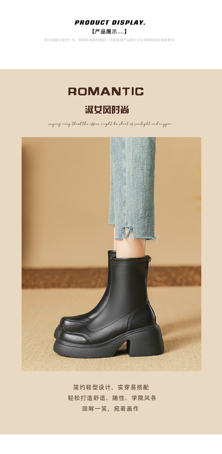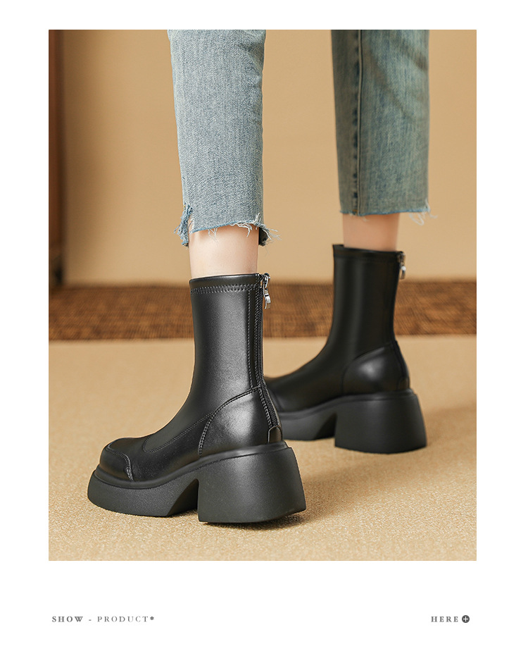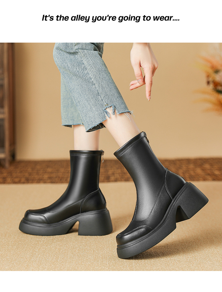 블랙 두꺼운 바닥 짧은 부츠 여성용 2023 가을 겨울 신상품 후면 지퍼 패션 부츠 슬리밍 높이 증가 스키니 부츠 마틴 부츠 여성스토어 가기