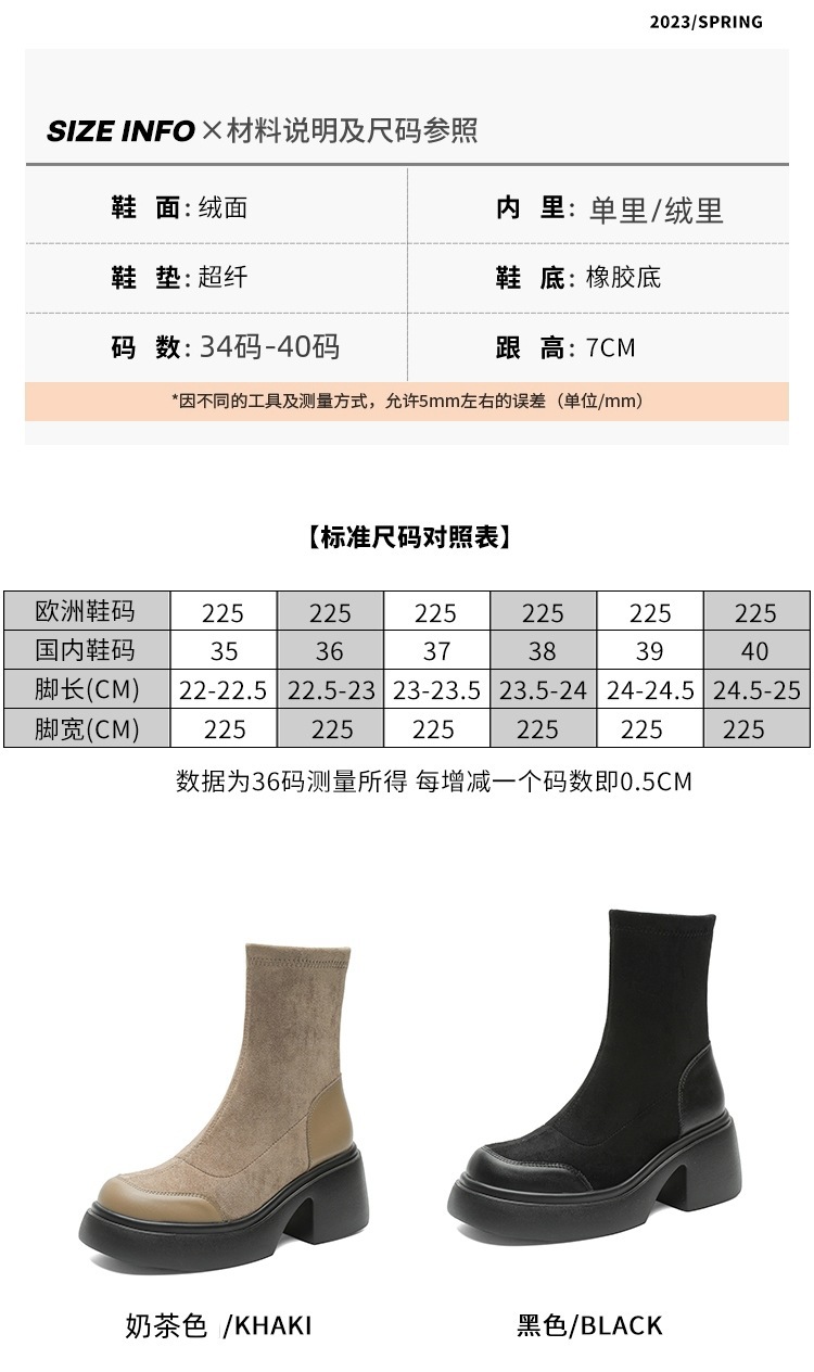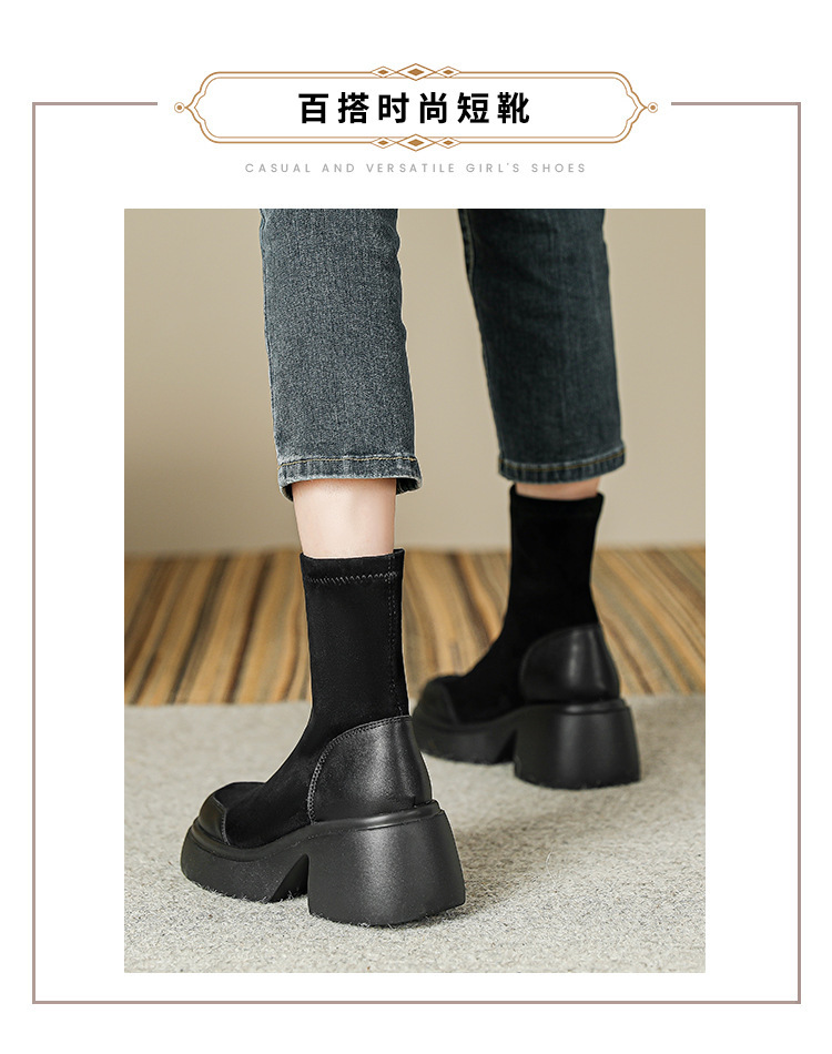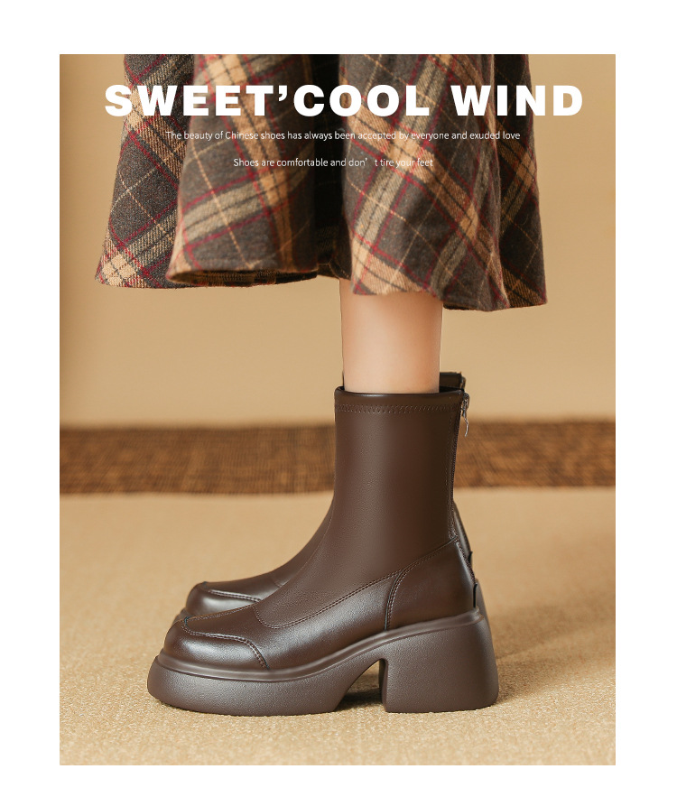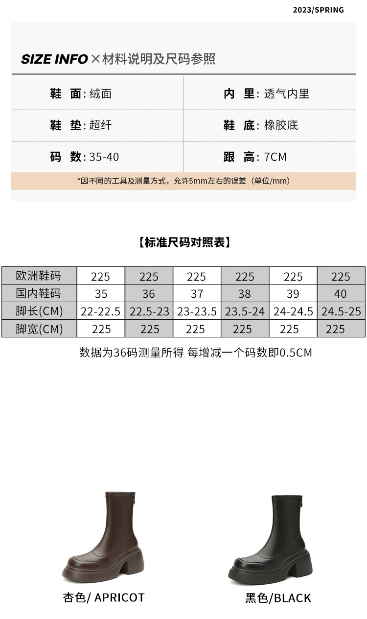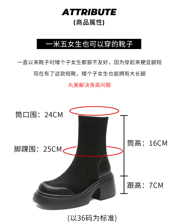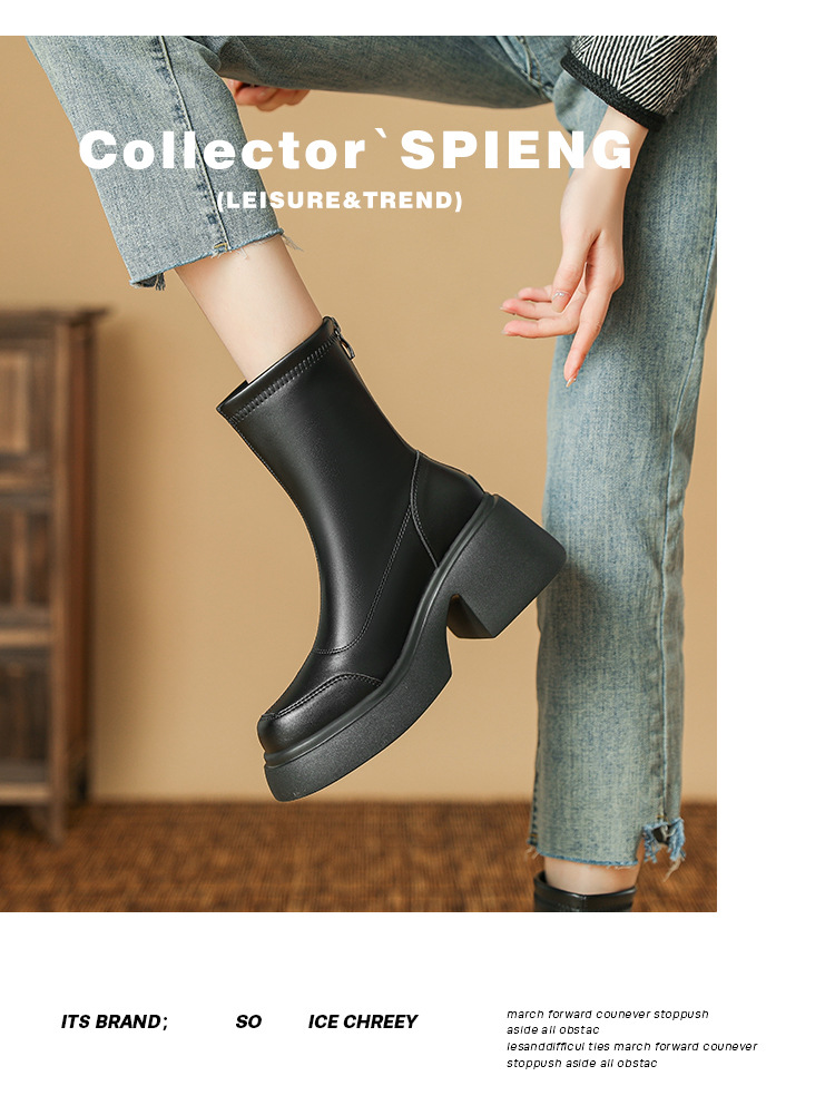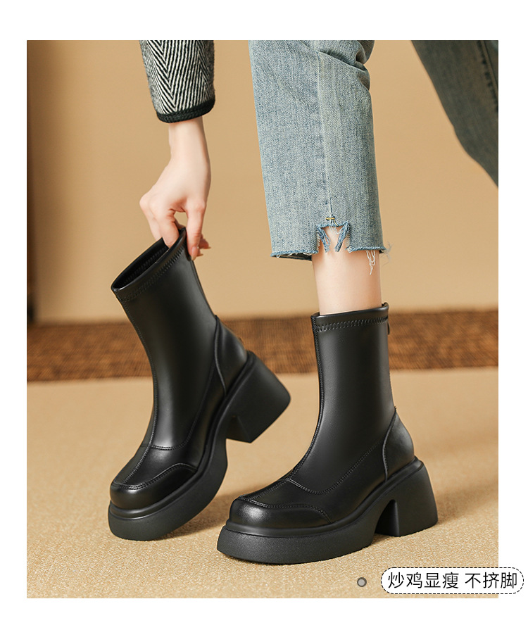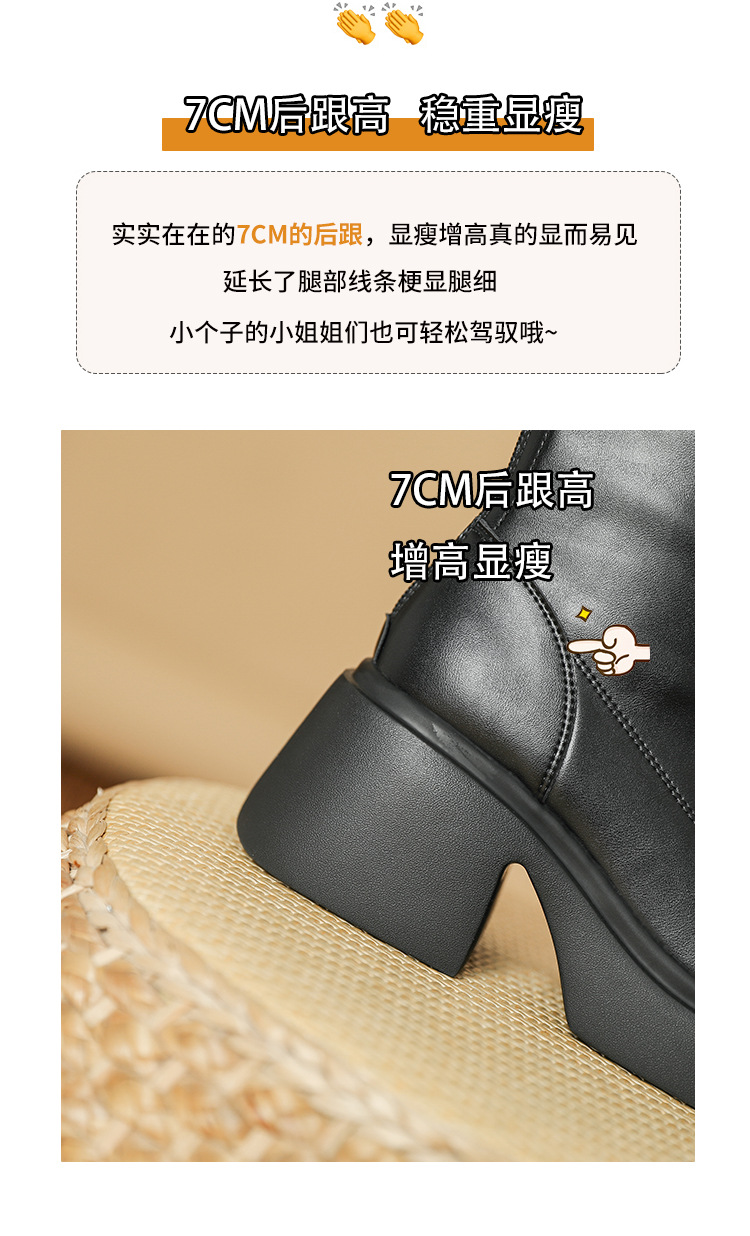 블랙 두꺼운 바닥 짧은 부츠 여성용 2023 가을 겨울 신상품 후면 지퍼 패션 부츠 슬리밍 높이 증가 스키니 부츠 마틴 부츠 여성스토어 가기