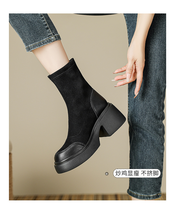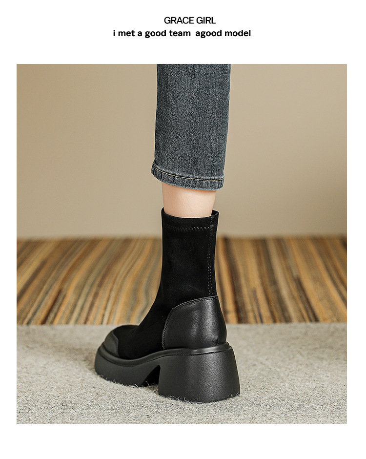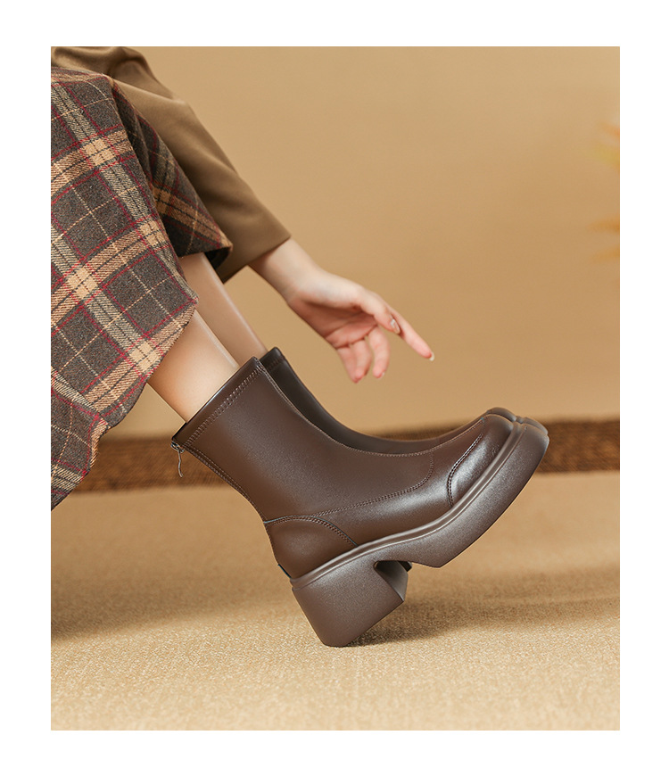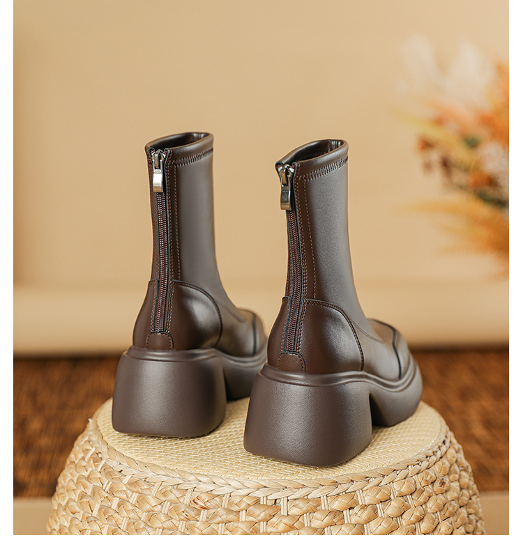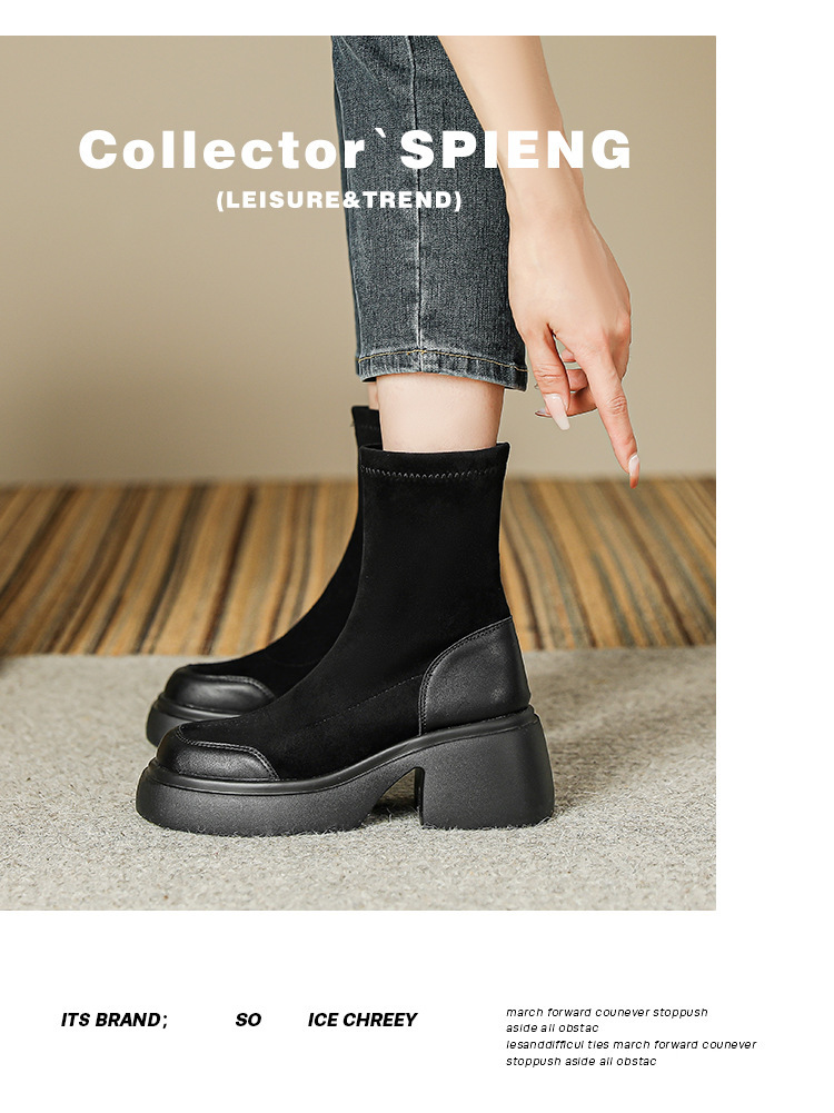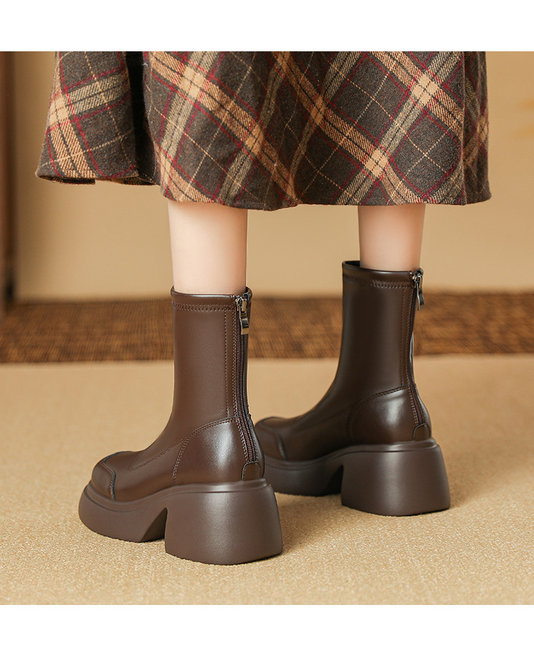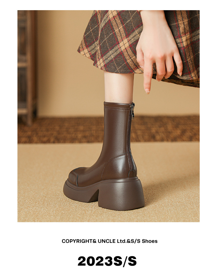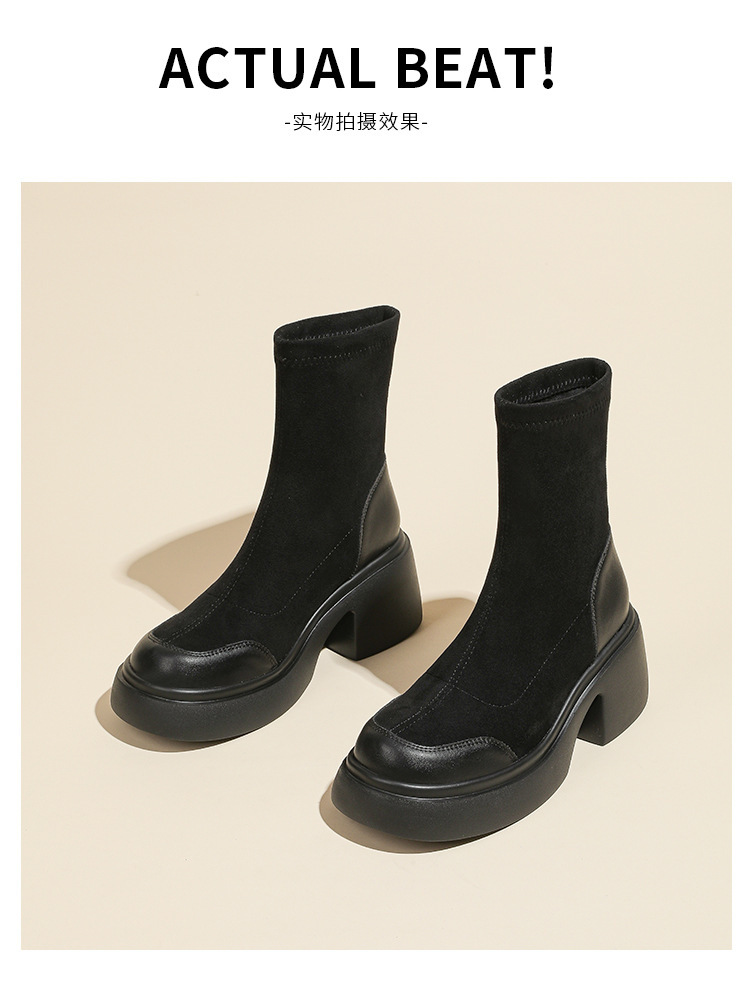 블랙 두꺼운 바닥 짧은 부츠 여성용 2023 가을 겨울 신상품 후면 지퍼 패션 부츠 슬리밍 높이 증가 스키니 부츠 마틴 부츠 여성스토어 가기