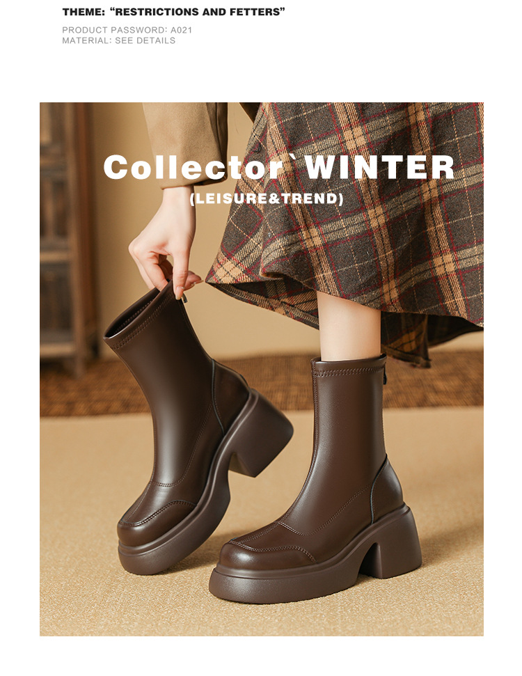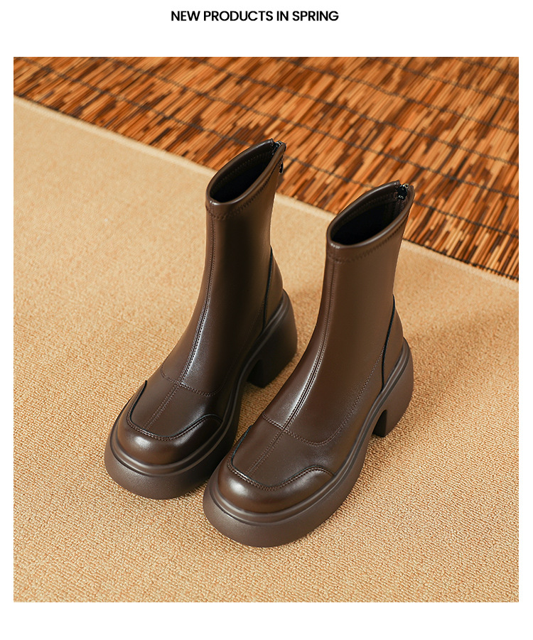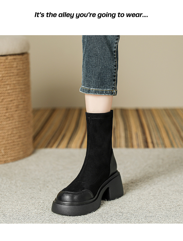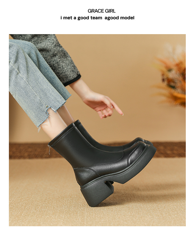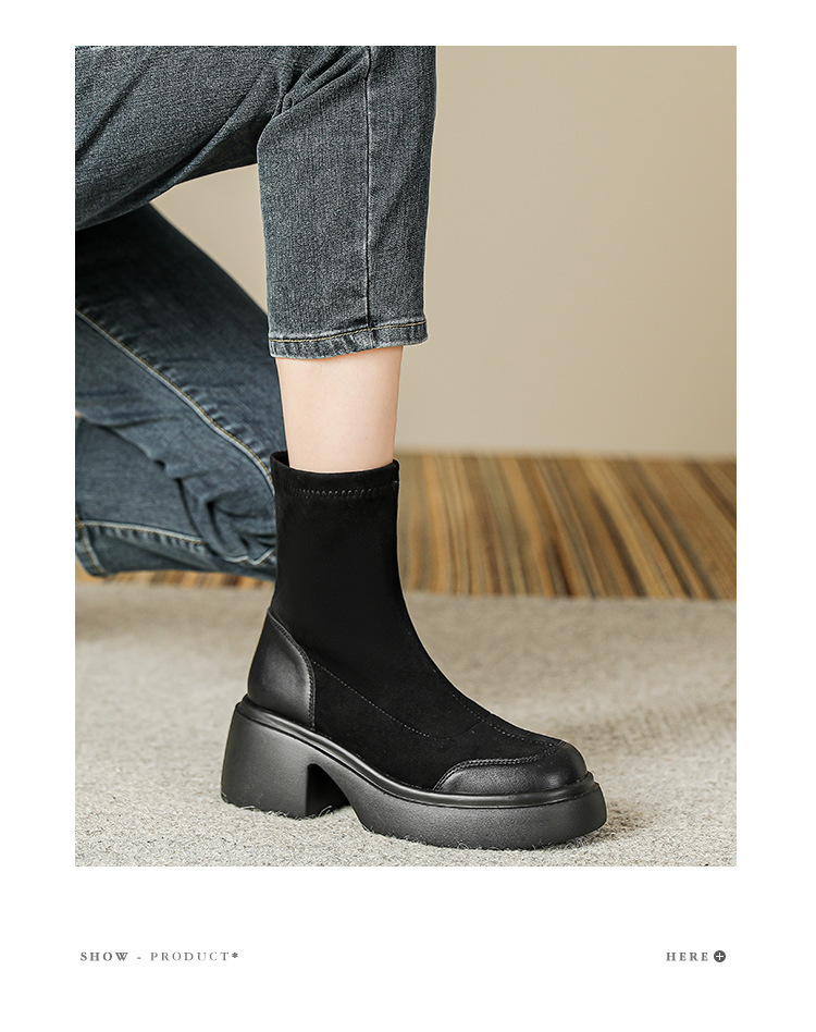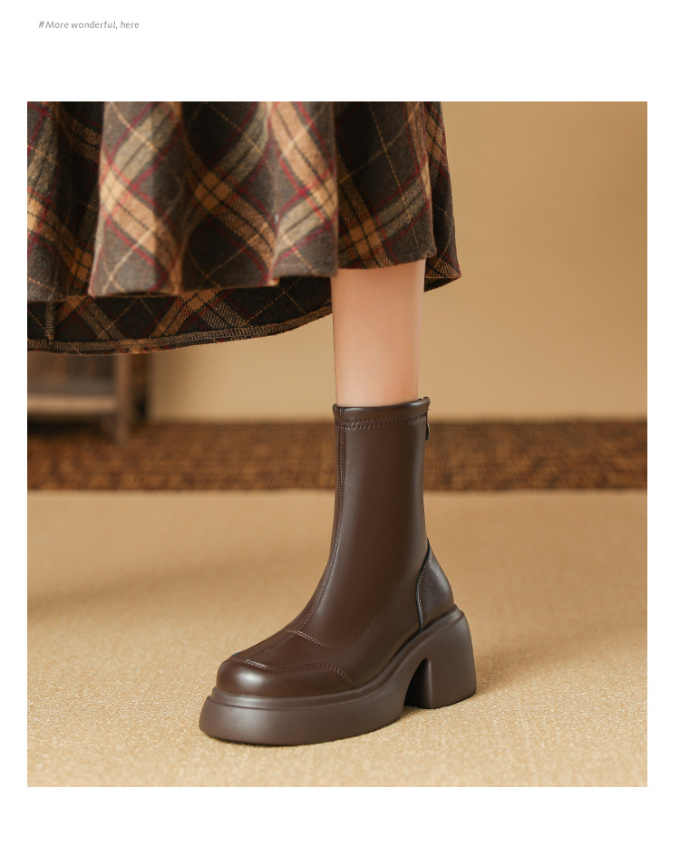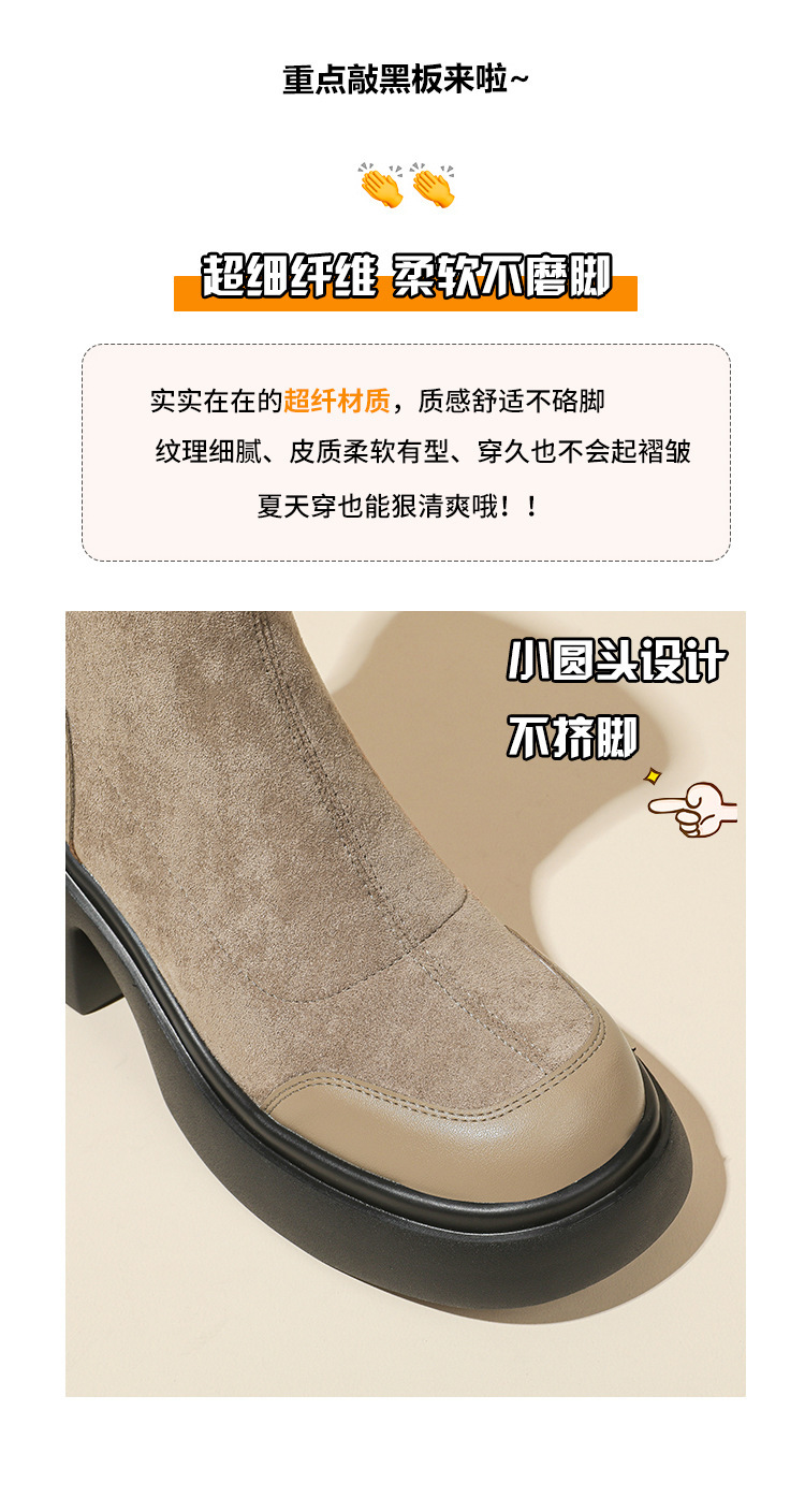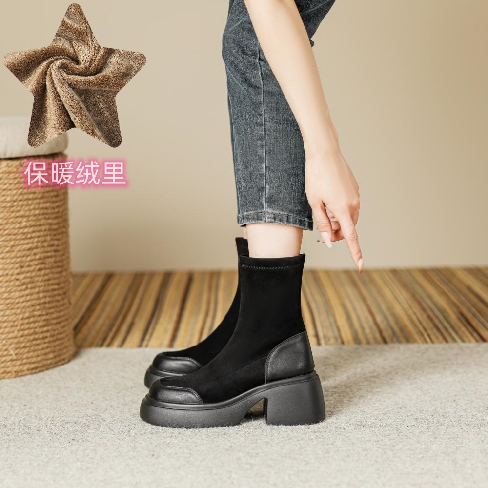 블랙 두꺼운 바닥 짧은 부츠 여성용 2023 가을 겨울 신상품 후면 지퍼 패션 부츠 슬리밍 높이 증가 스키니 부츠 마틴 부츠 여성스토어 가기