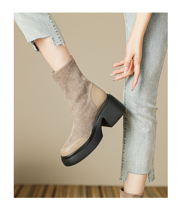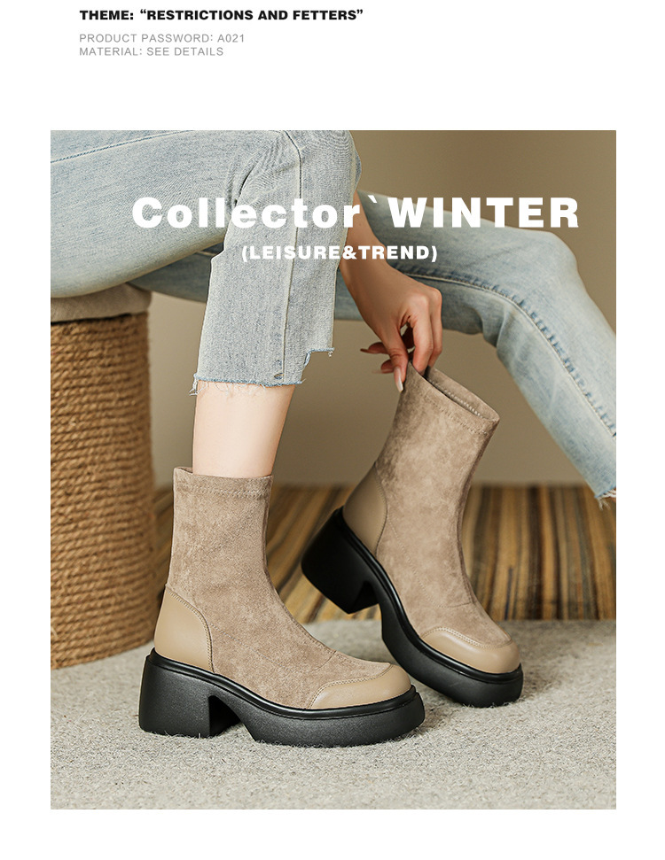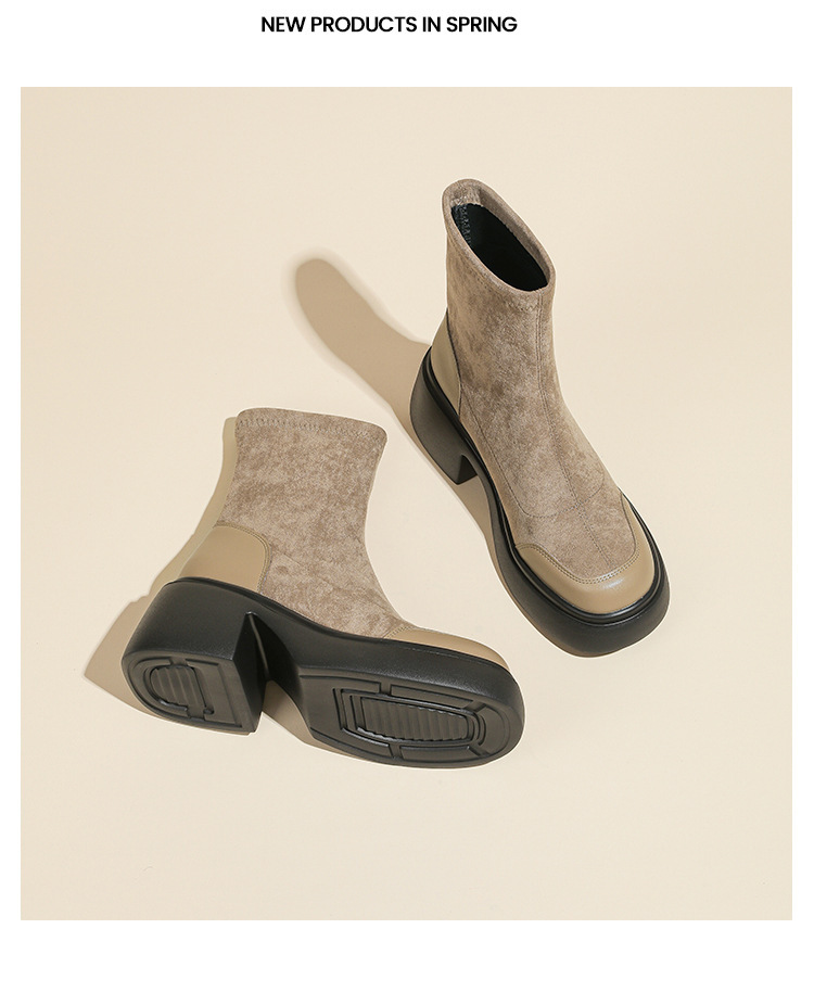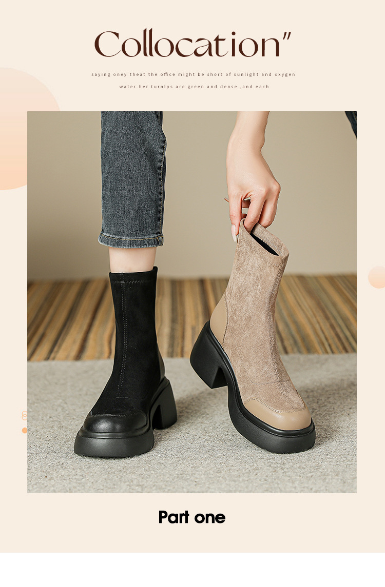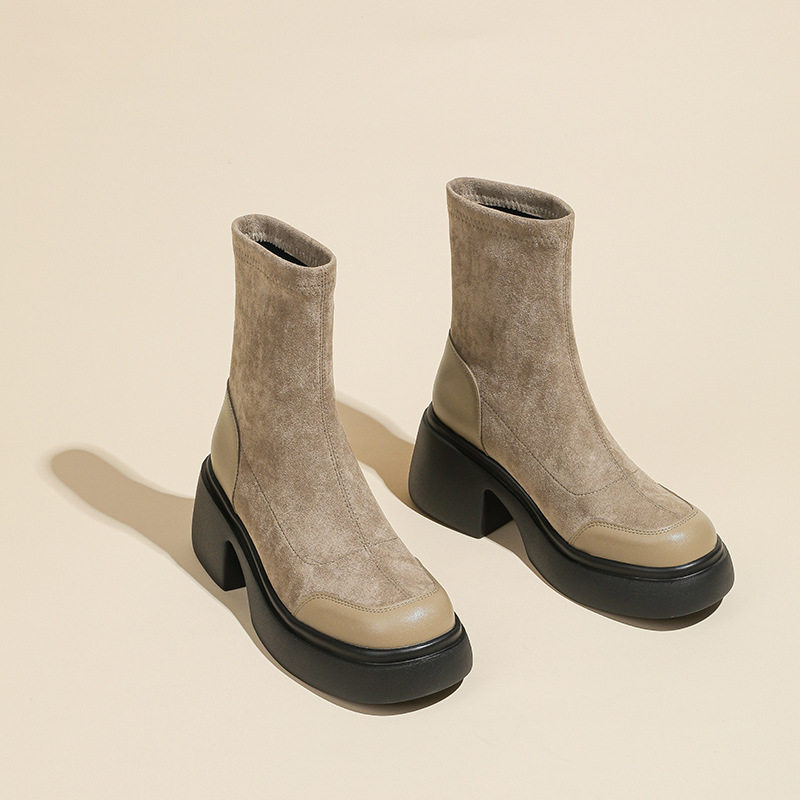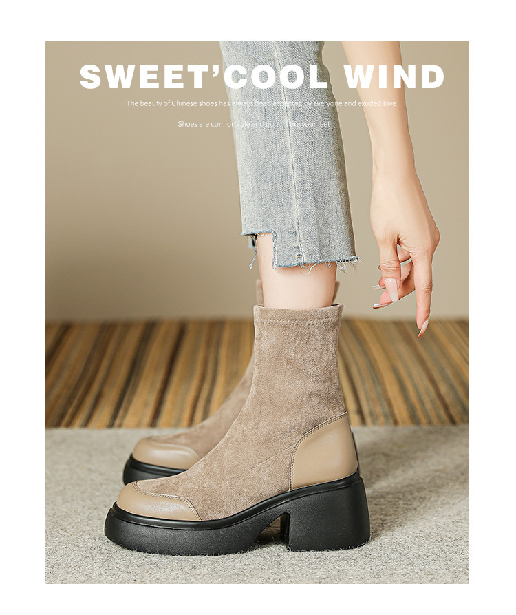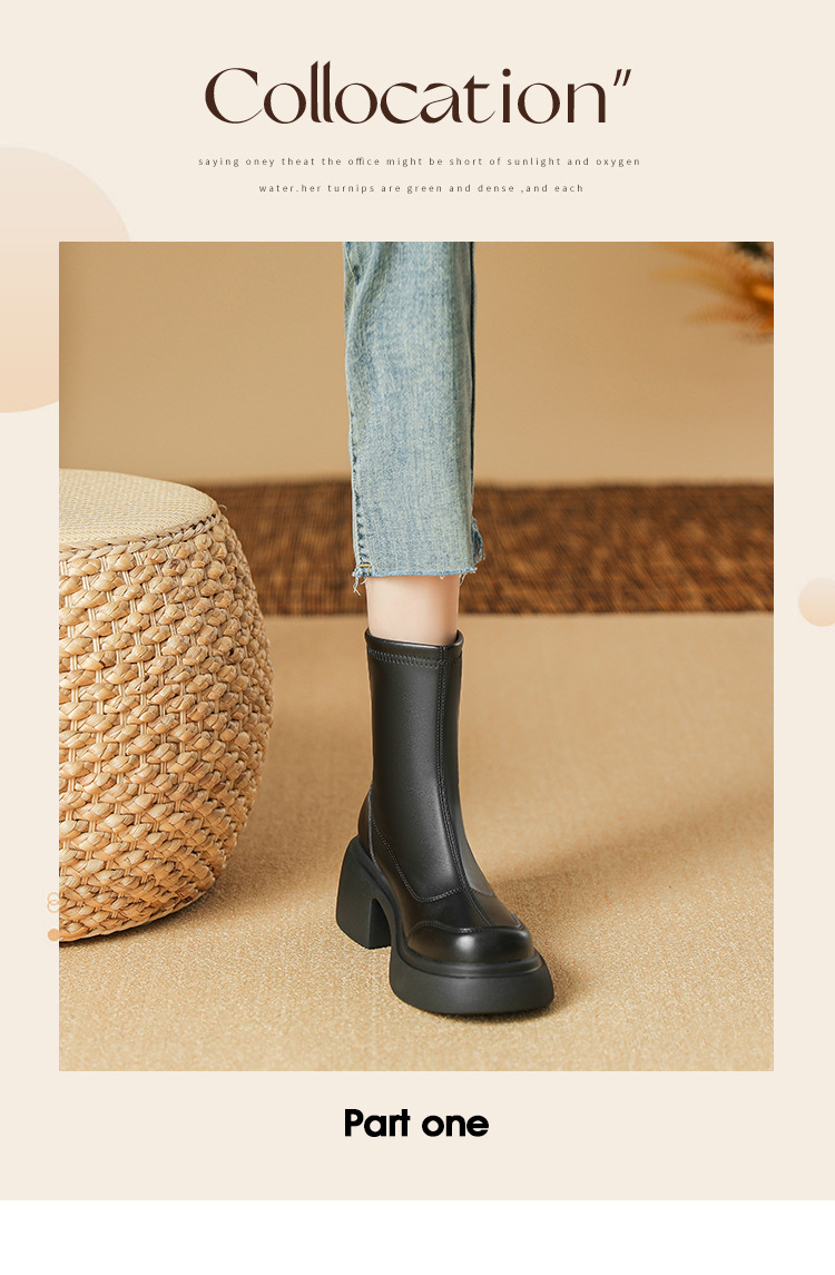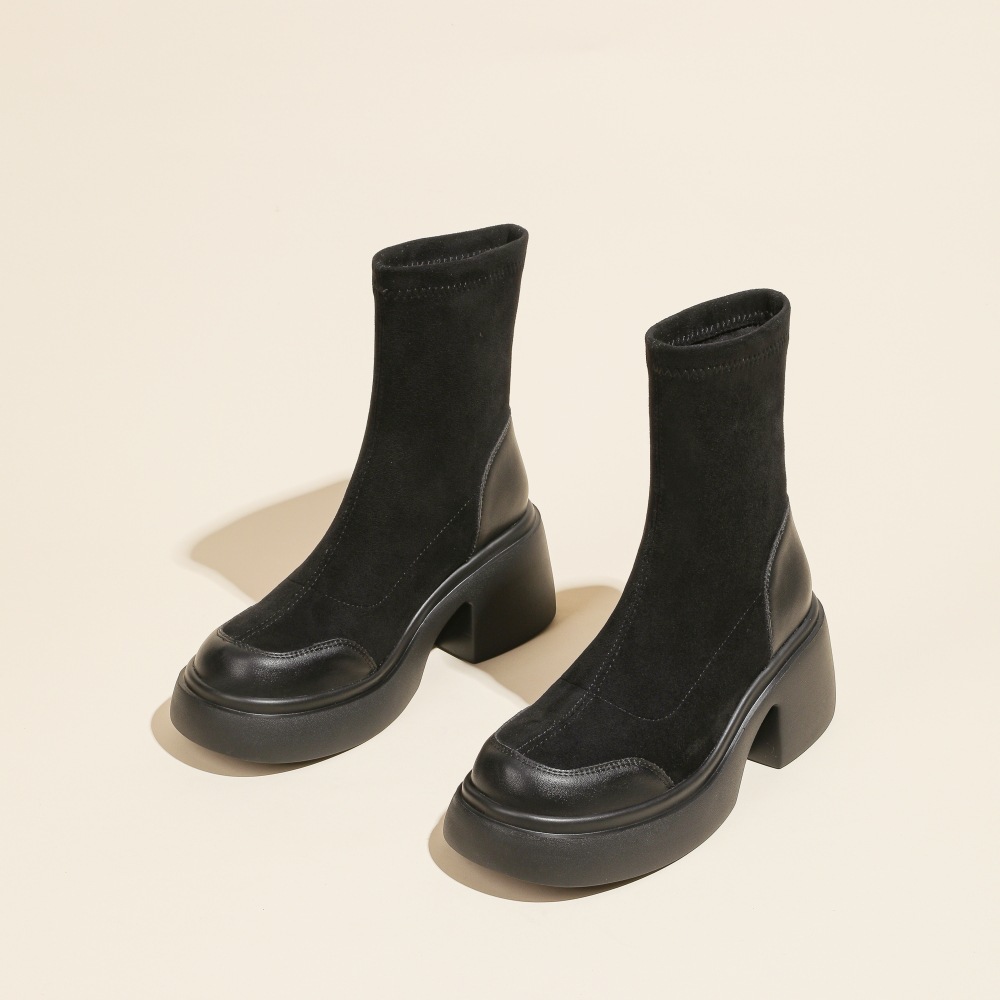 블랙 두꺼운 바닥 짧은 부츠 여성용 2023 가을 겨울 신상품 후면 지퍼 패션 부츠 슬리밍 높이 증가 스키니 부츠 마틴 부츠 여성스토어 가기