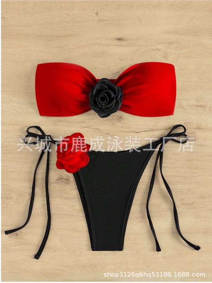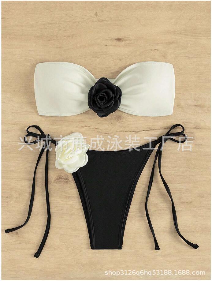 2024 년 대외 무역 새 수영복 여성 3 점 비키니 섹시 가슴 스플릿 스파 홀리데이 비키니 수영복