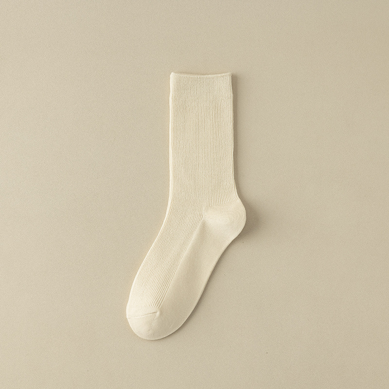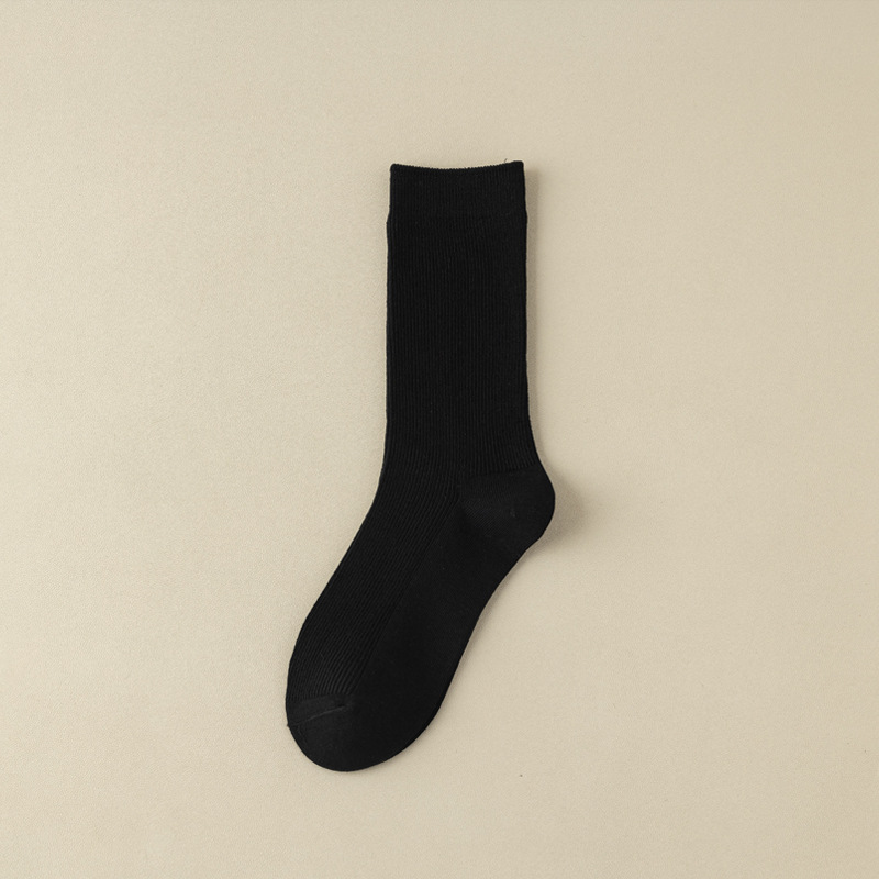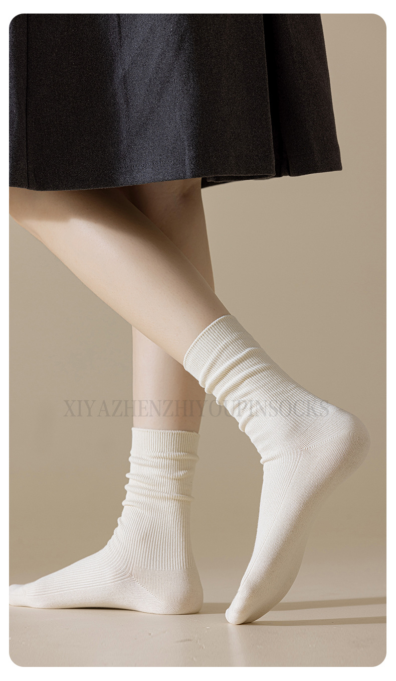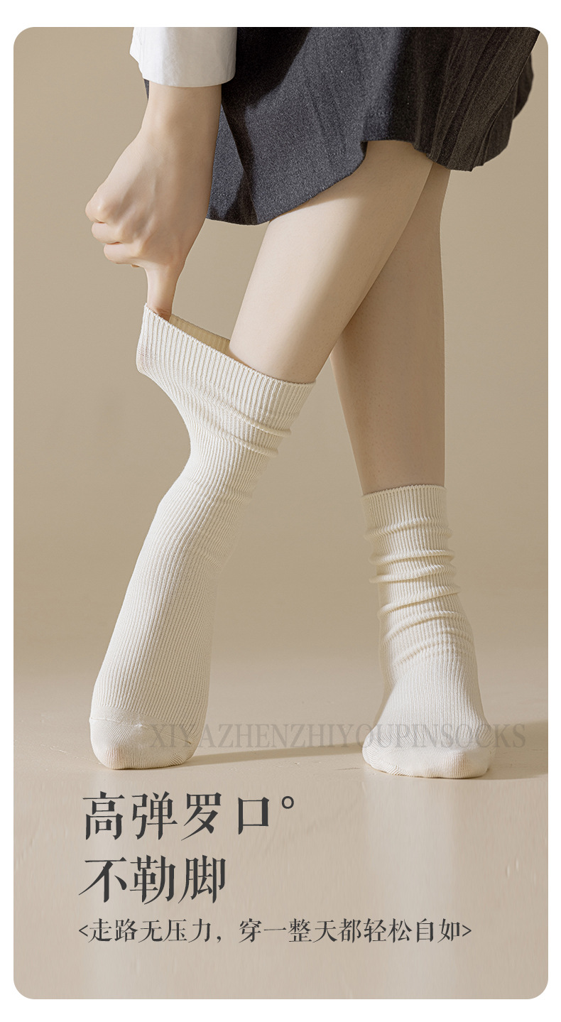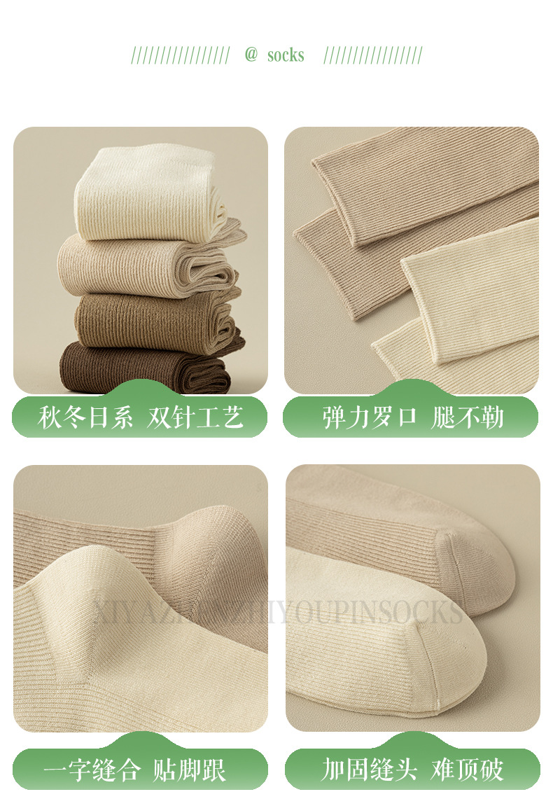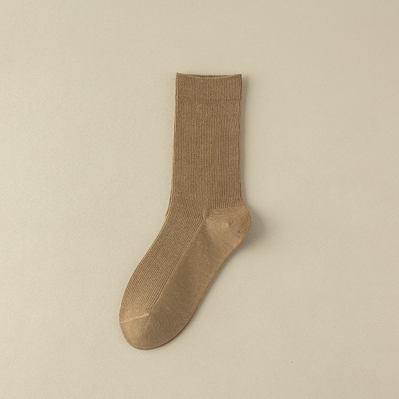 가을과 겨울 쌓인 양말 여성용 빈티지 더블 바늘 면 양말 일본식 다크 브라운 탈취제 면 중간 길이 양말 봄과 가을 영국 스타일스토어 가기