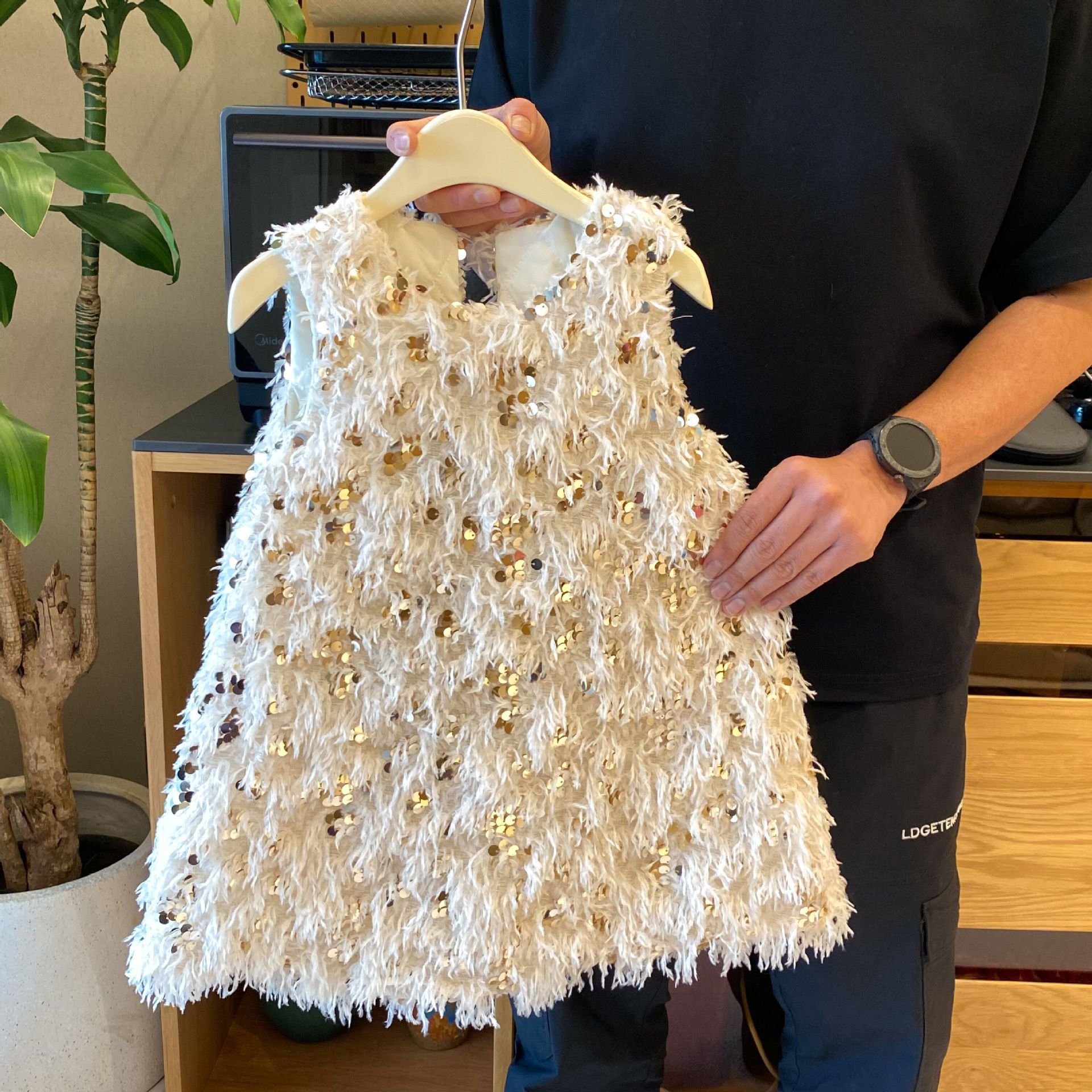 2025년 신상 여아용 반짝이 프린지 조끼 드레스 여아용 플러스 사이즈 공주 드레스 생일 및 새해용스토어 가기