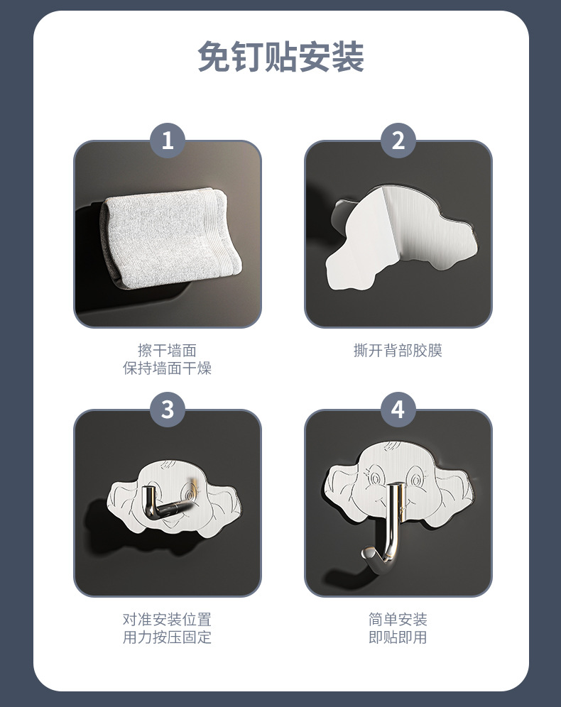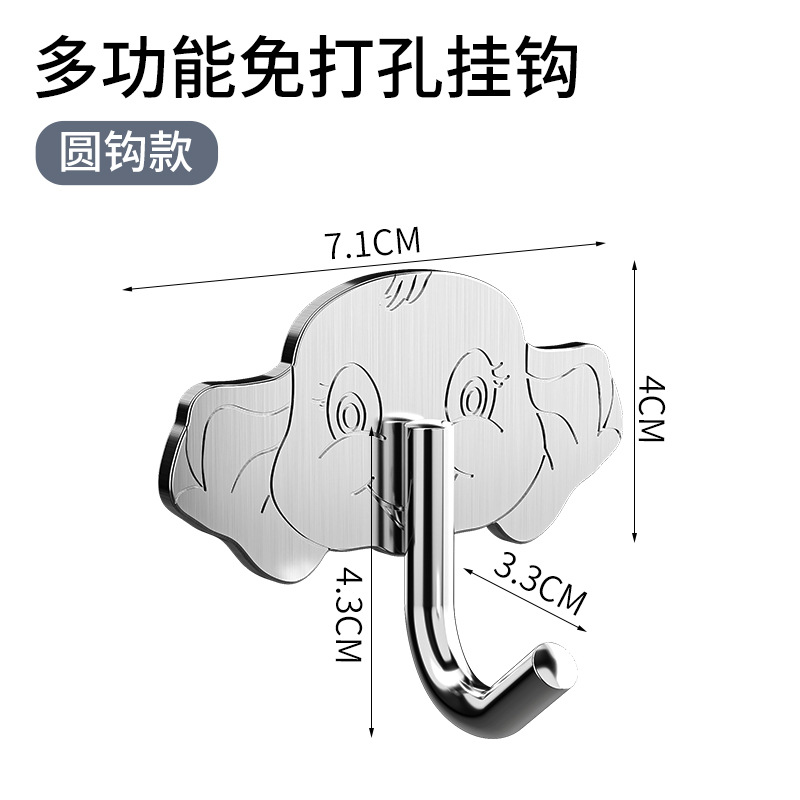 스테인레스 스틸 후크 비 천공 비 마킹 라운드 후크 주방 벽 접착 도어 후면 접착 후크 옷 키 코끼리 트렁크 후크