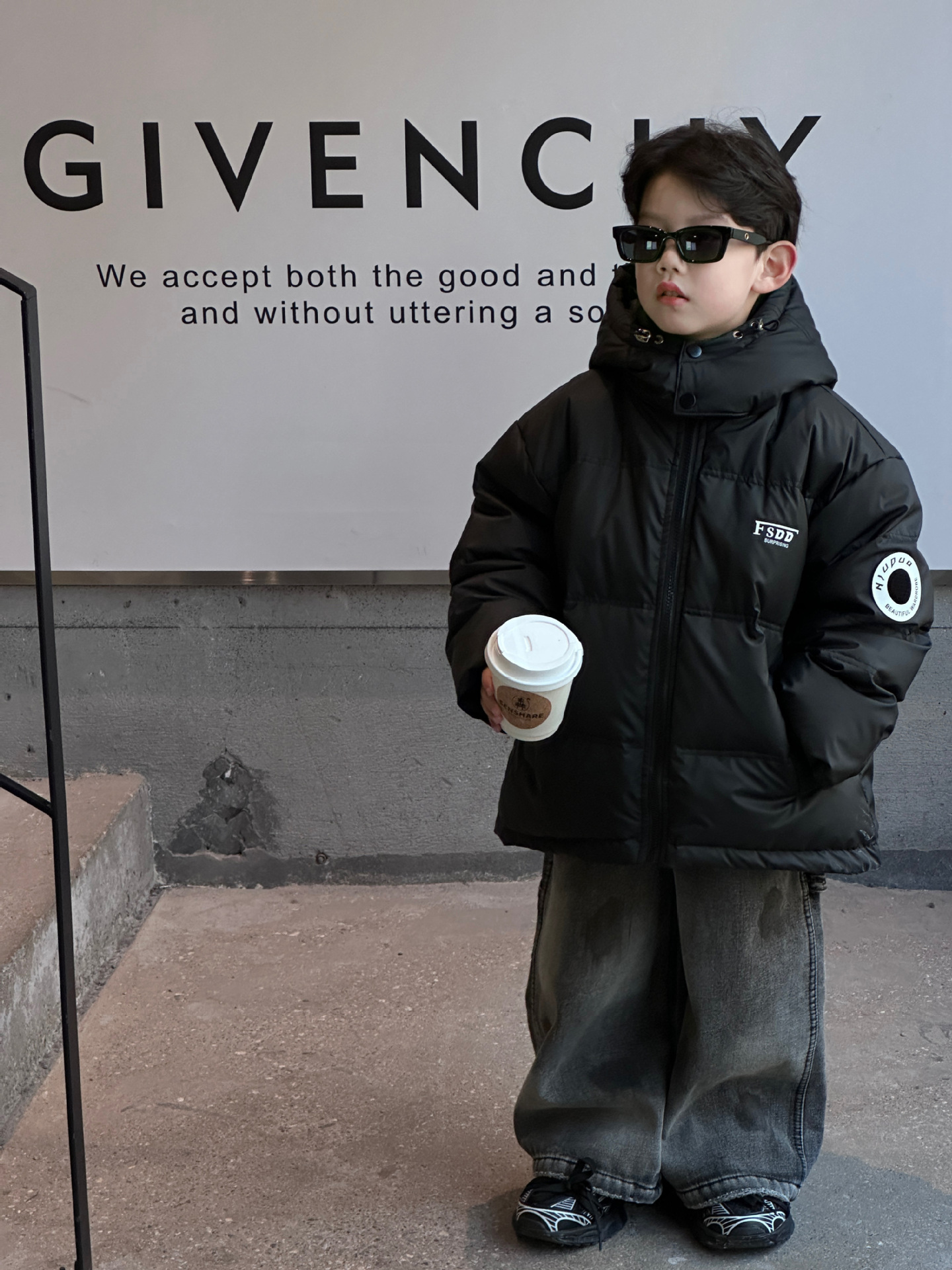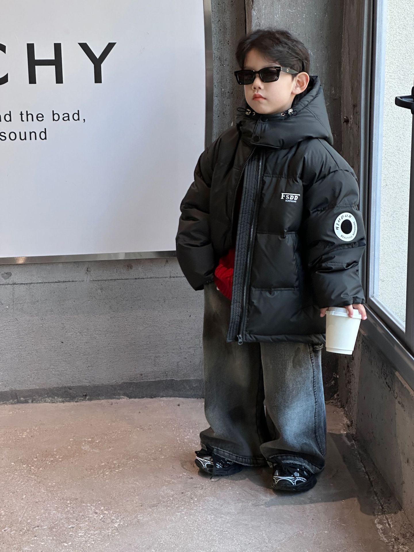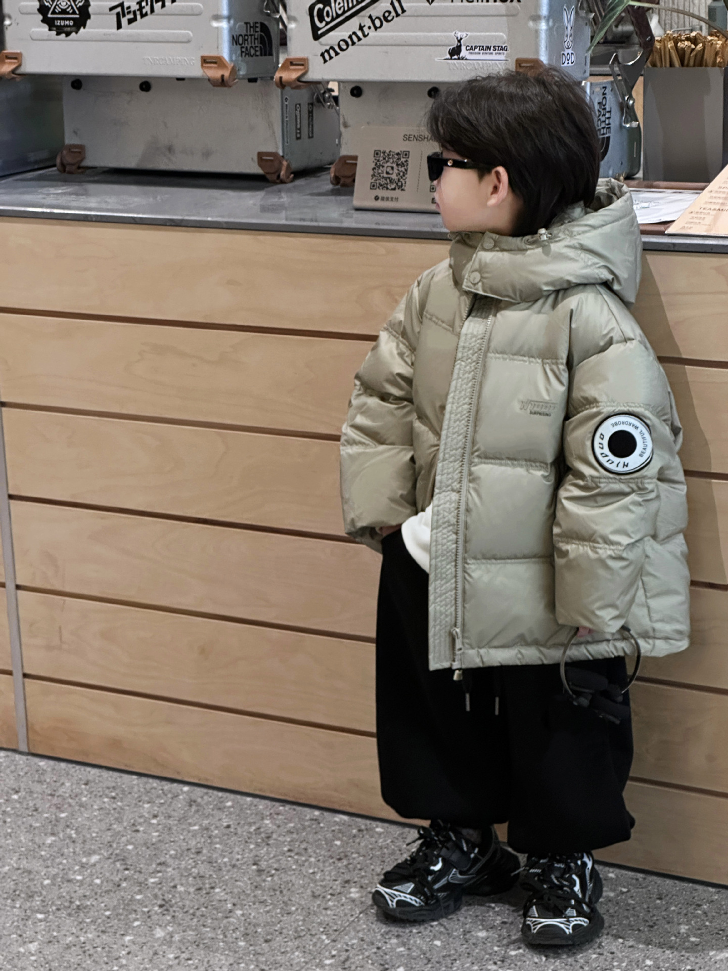 Tairu 2023 겨울 새로운 한국 스타일 어린이 단색 따뜻한 모든 매치 후드 다운 재킷 남아 탑 트렌디스토어 가기