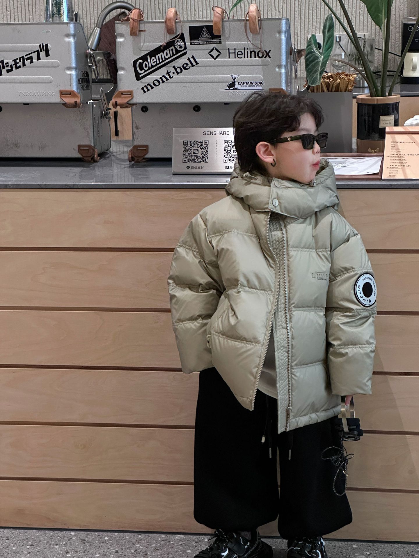 Tairu 2023 겨울 새로운 한국 스타일 어린이 단색 따뜻한 모든 매치 후드 다운 재킷 남아 탑 트렌디