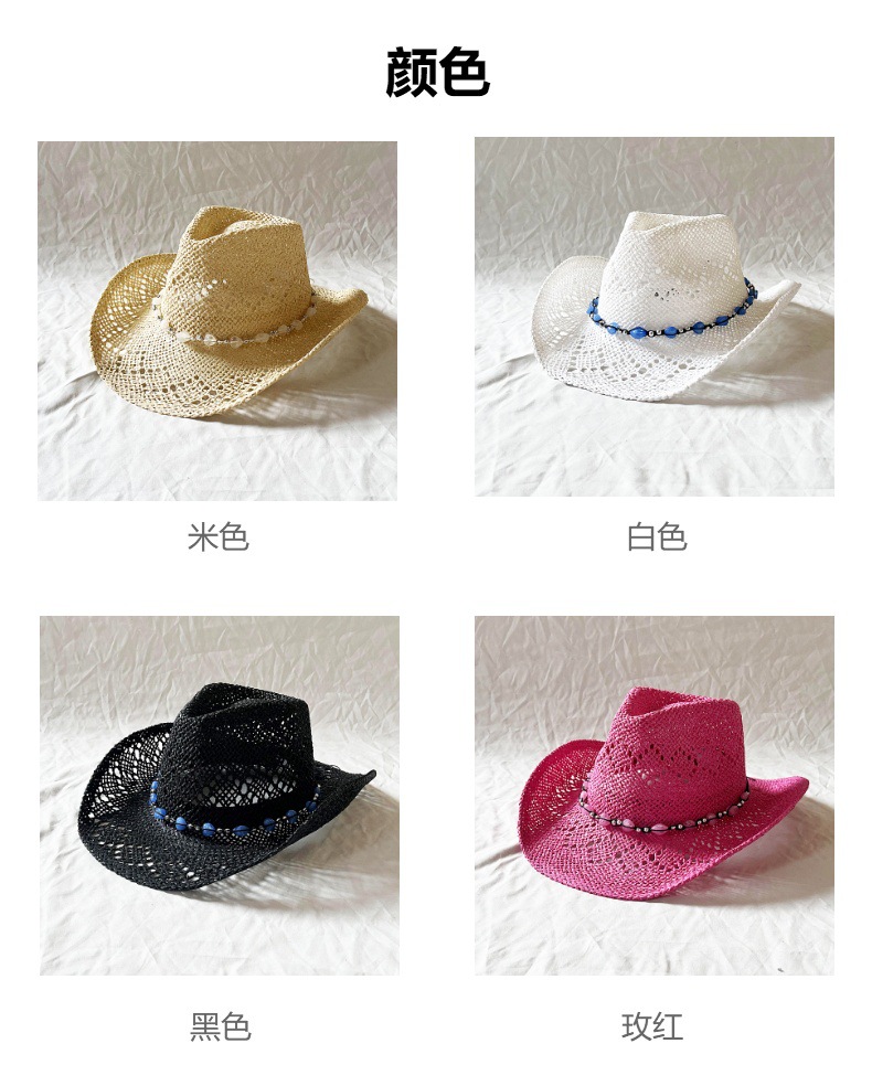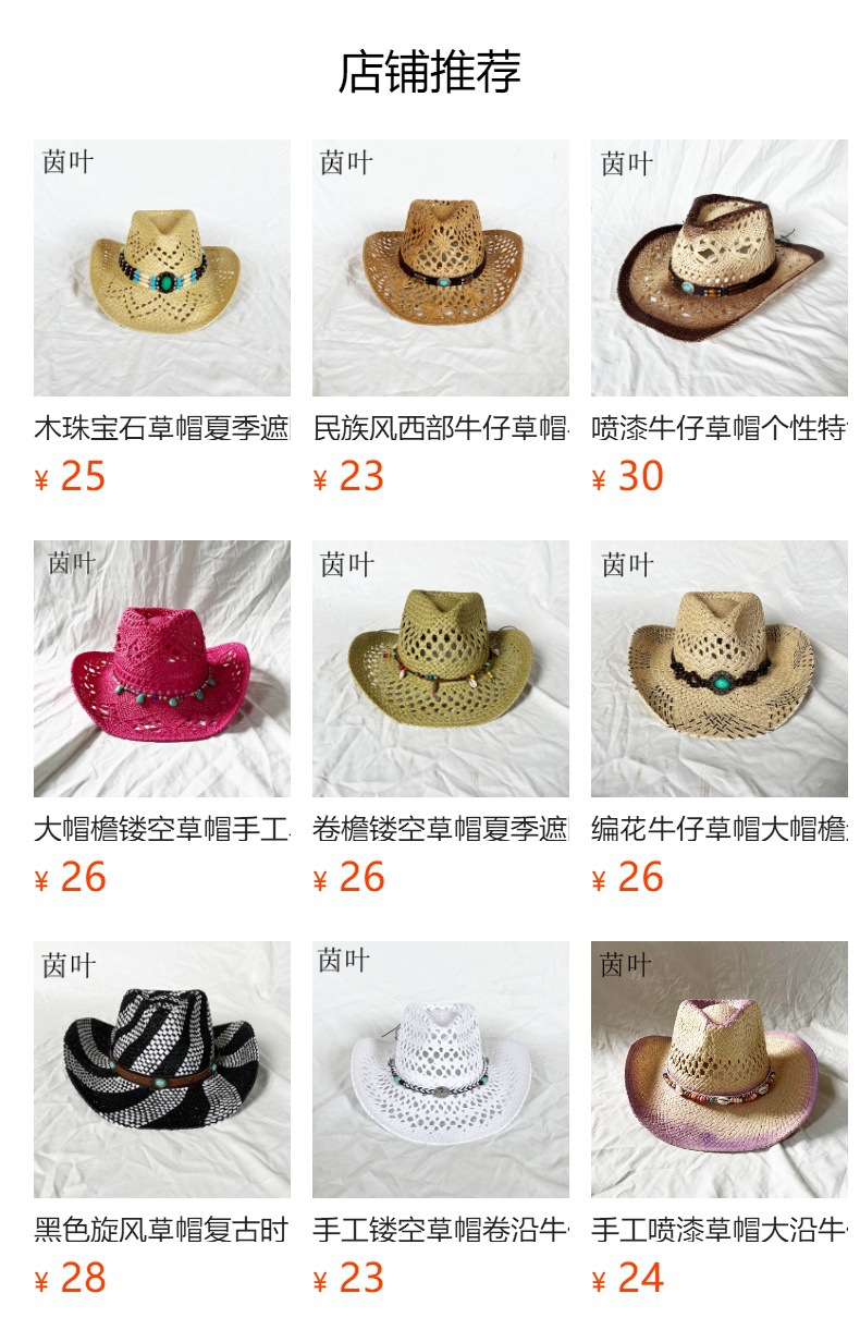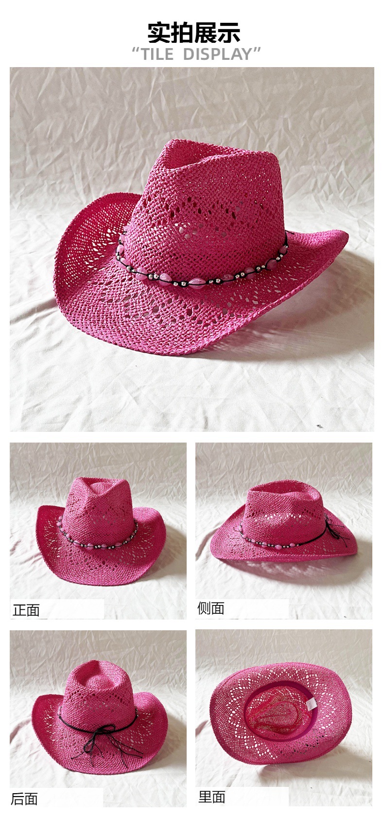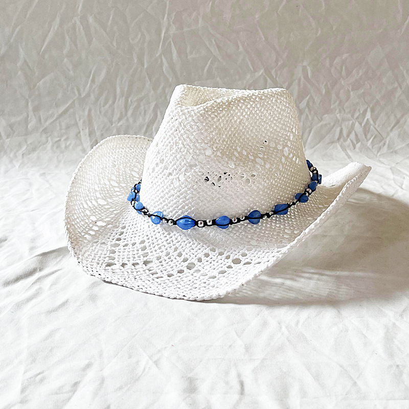 하트 모양 구슬 장식 밀짚모자 수제 빈티지 데님 모자 넓은 챙 말아 올린 챙 서부 스타일스토어 가기