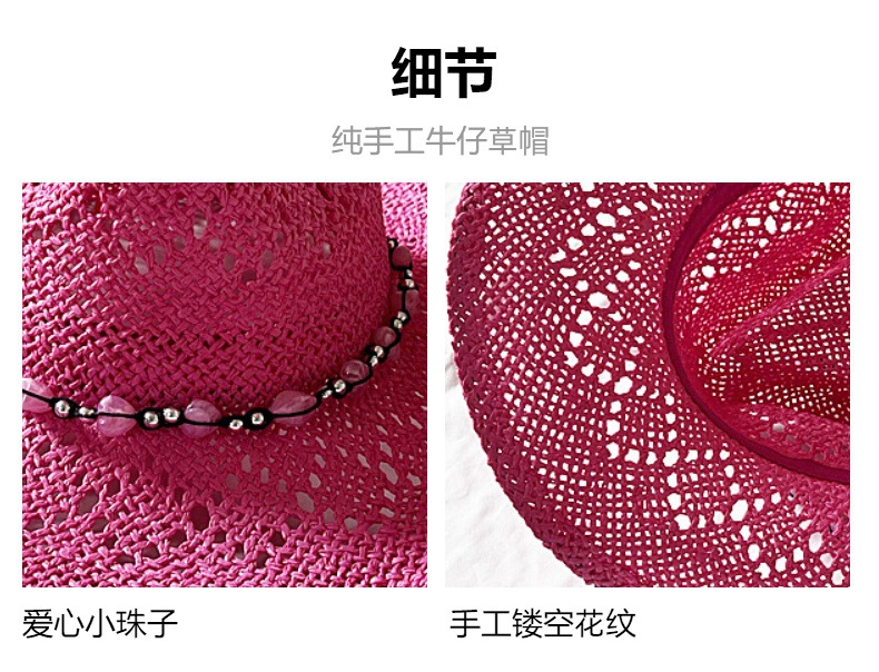 手工镂空牛仔草帽,配爱心小石头装饰,现货4个颜色,其他颜色可定制