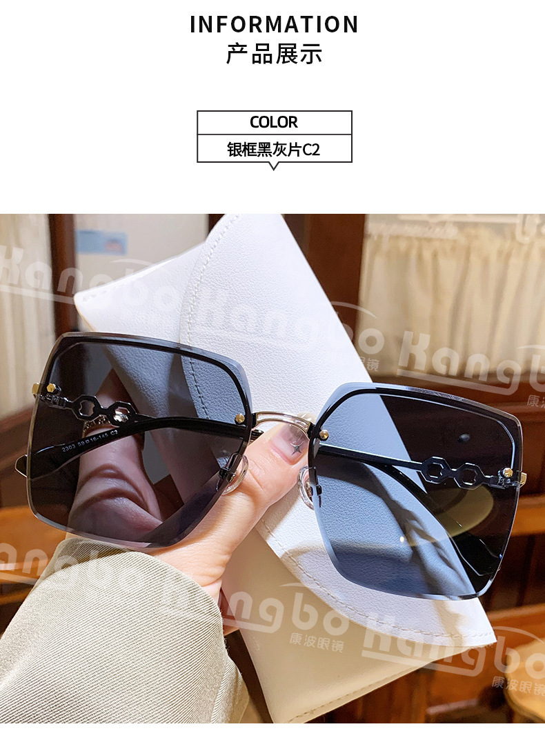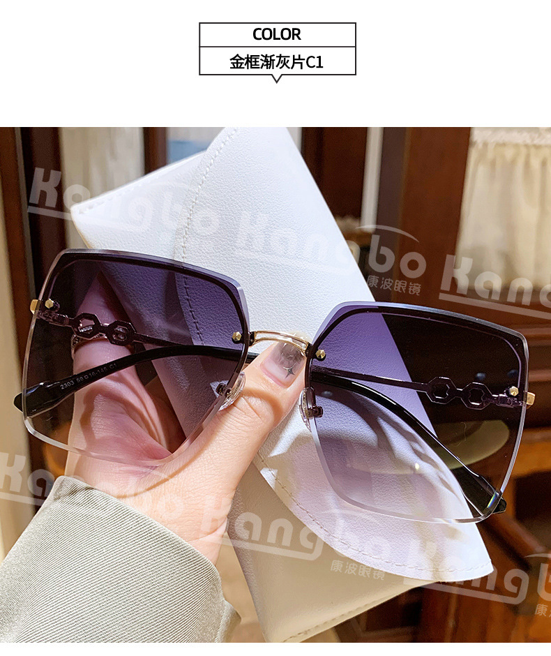 새로운 스타일 스퀘어 선글라스 인터넷 인기 슬림해 보이는 대형 프레임 여성용 선글라스 자외선 차단 슬림해 보이는 선글라스 트렌디 2303