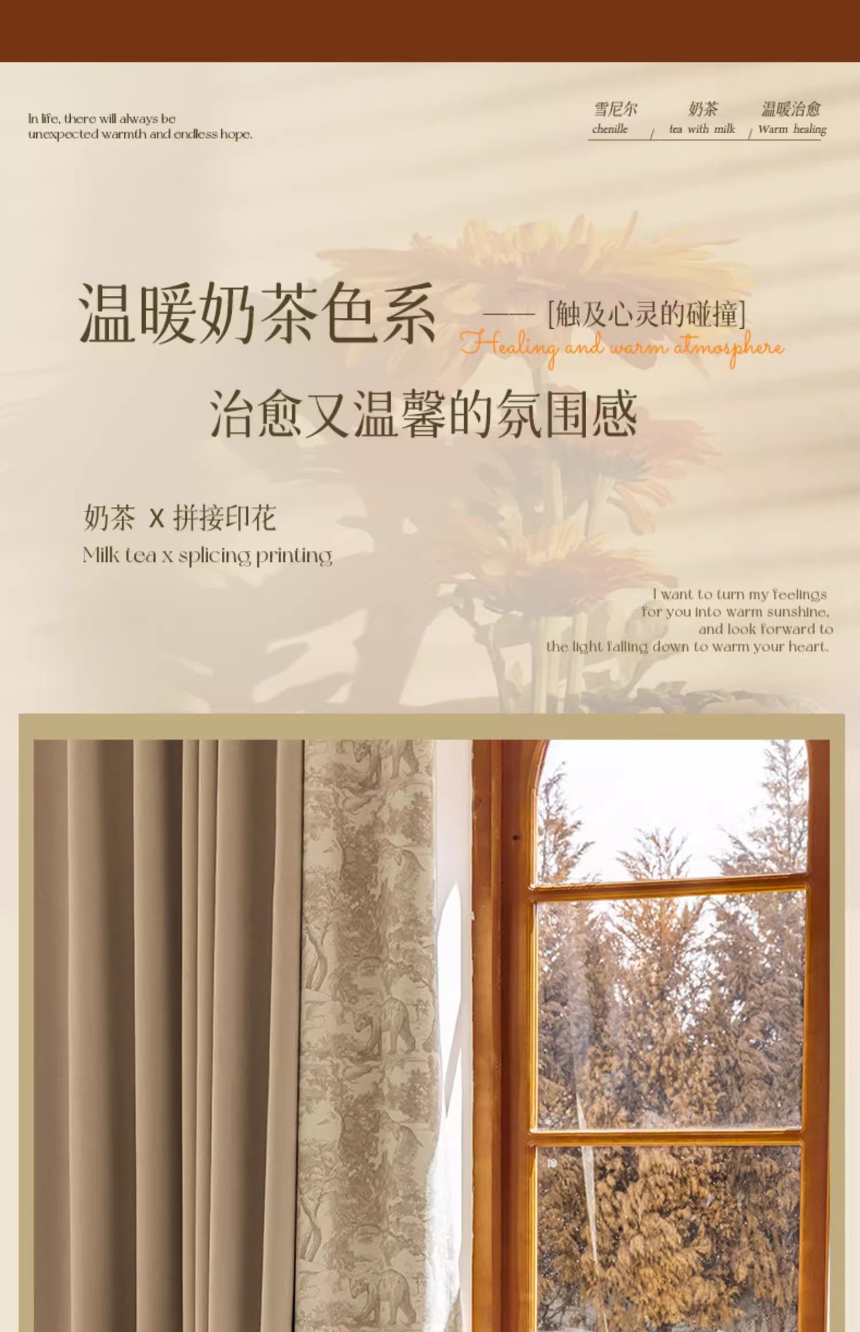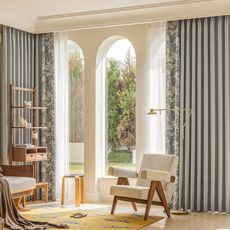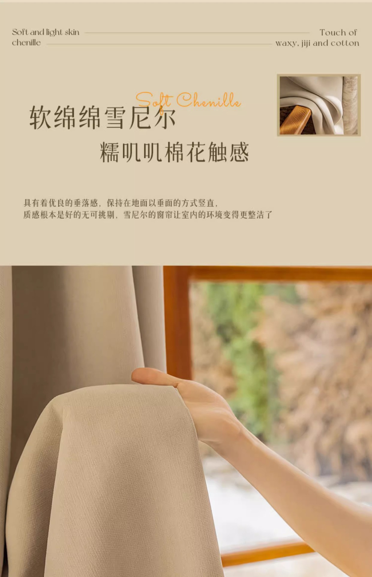 커튼 미국 복고풍 빛 프랑스 두꺼운 셔닐 실 거실 침실 높은 음영 바닥에서 천장까지 창 2023 New스토어 가기