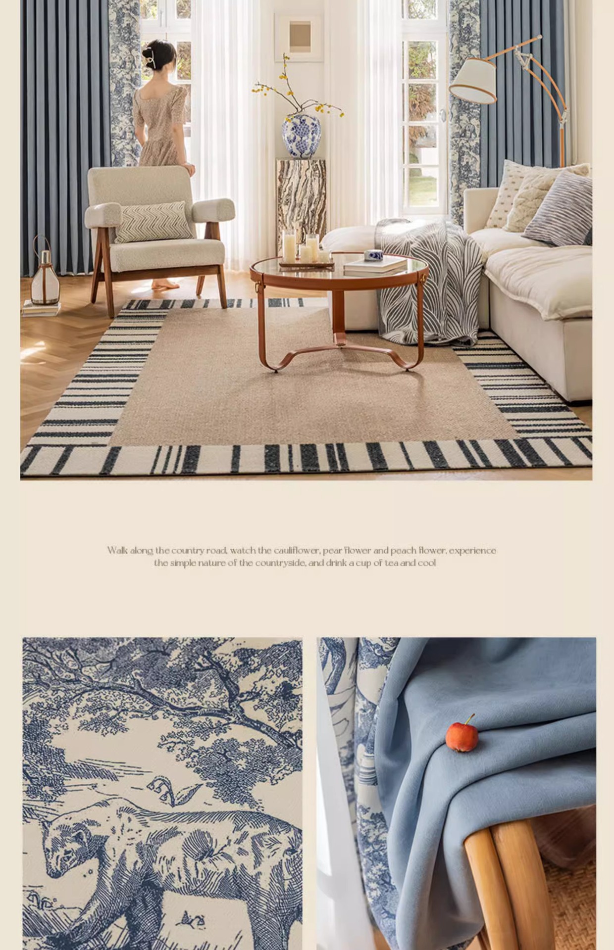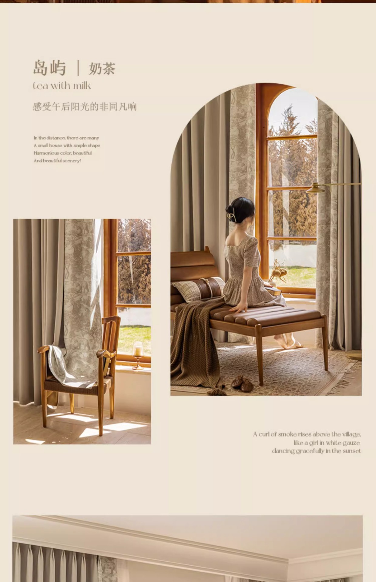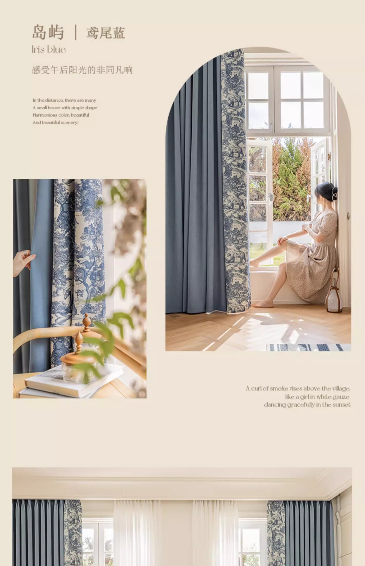 커튼 미국 복고풍 빛 프랑스 두꺼운 셔닐 실 거실 침실 높은 음영 바닥에서 천장까지 창 2023 New스토어 가기