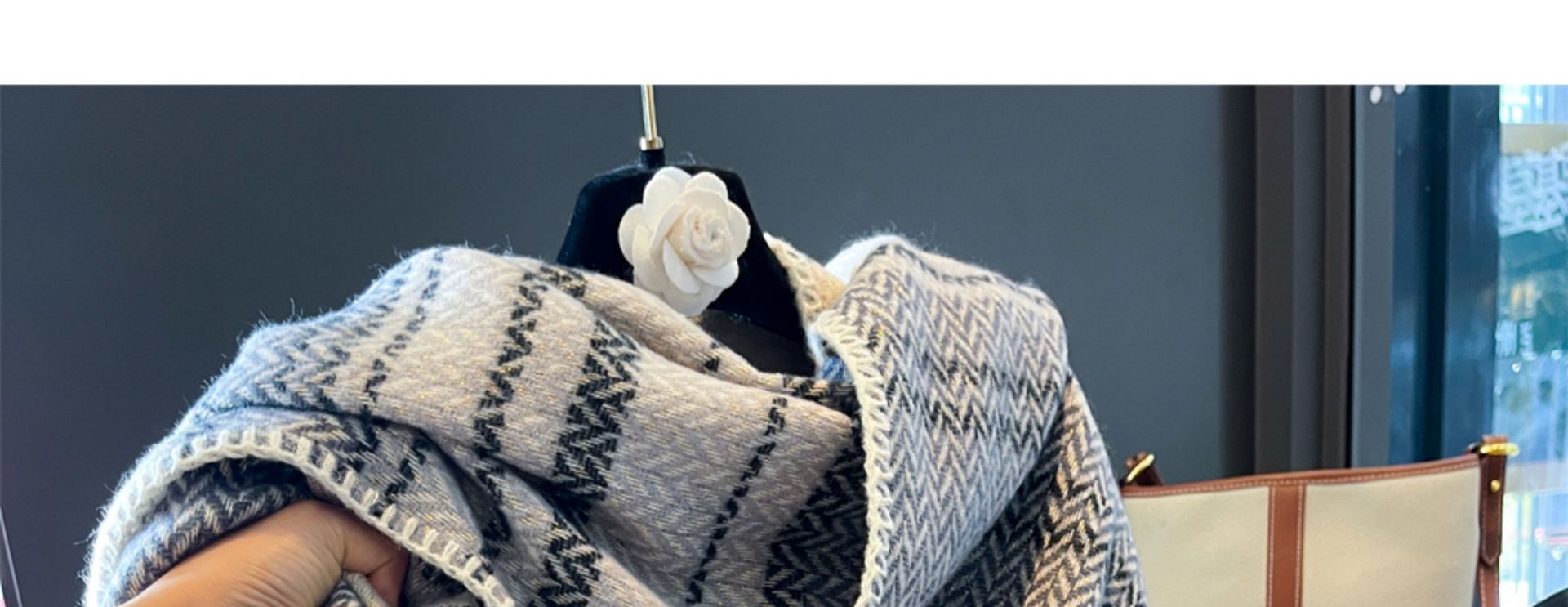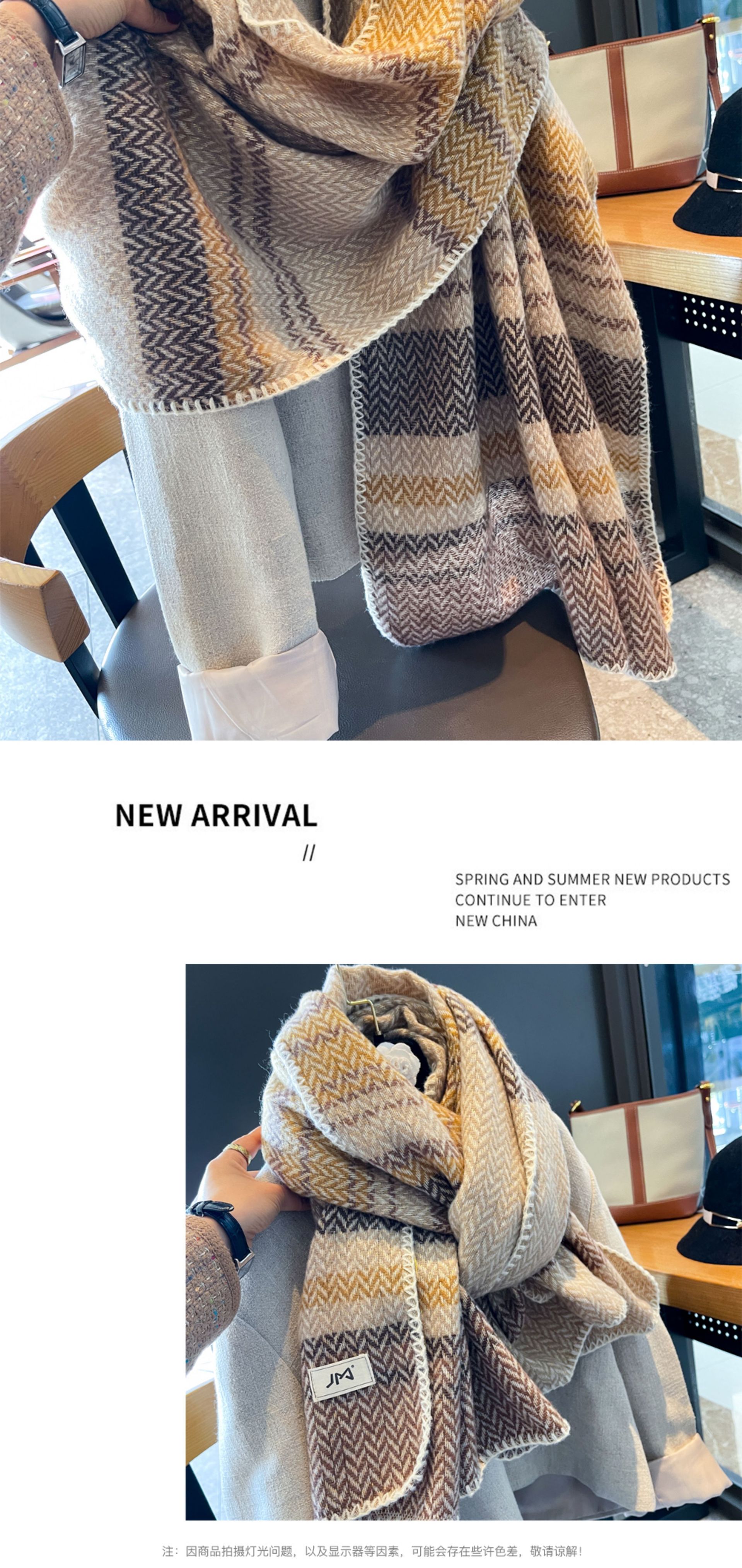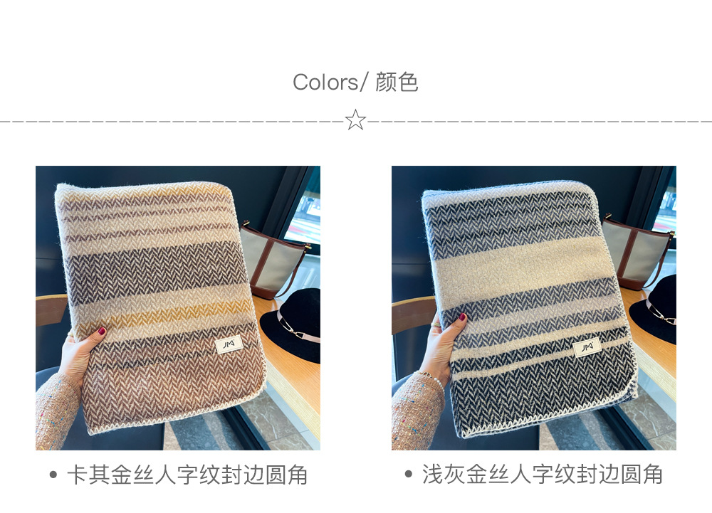 韩版百搭轻奢亮丝人字条纹含羊毛围巾围脖女秋冬季厚实保暖大披肩