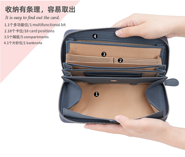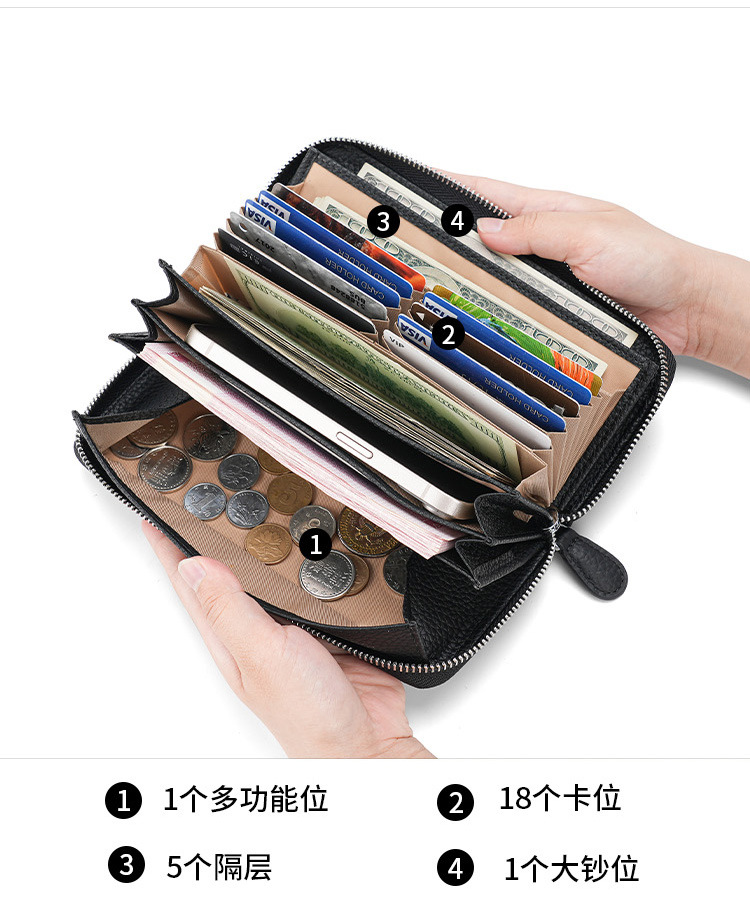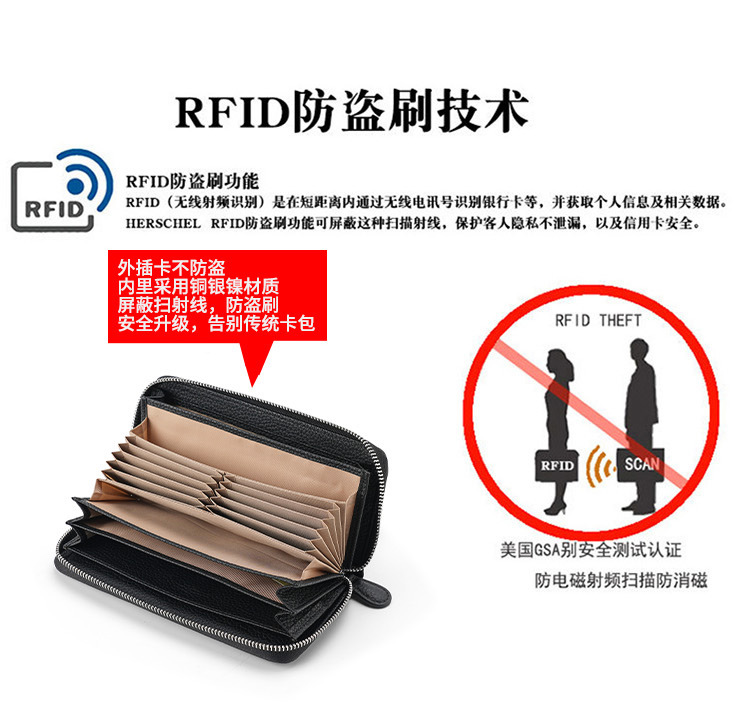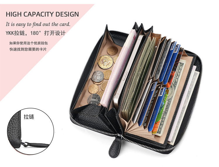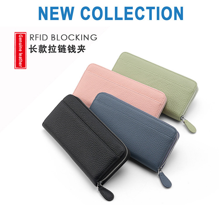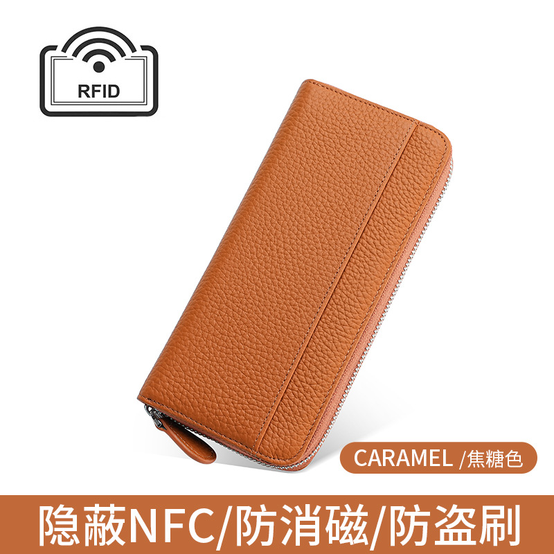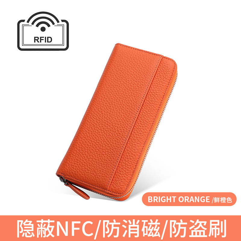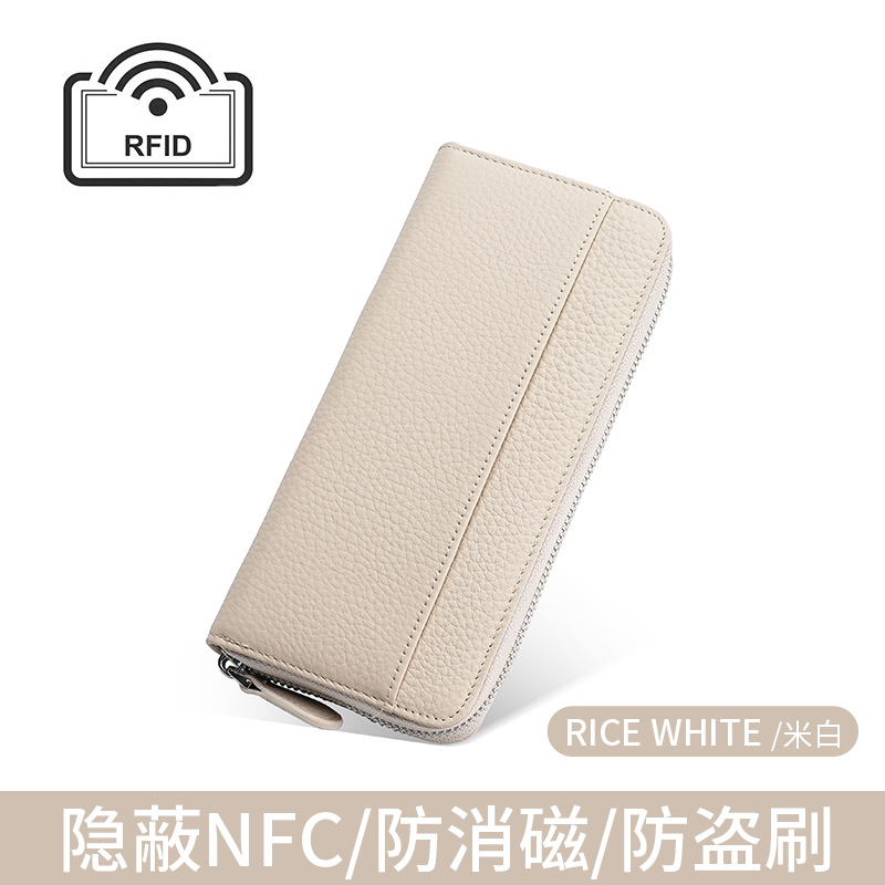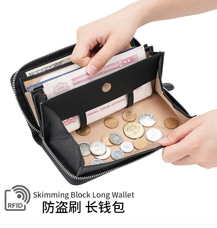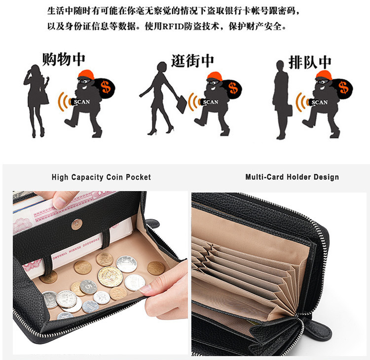 도난 방지 브러시 정품 가죽 여성 지갑 긴 일본 장기 카드 가방 일본 RFID 클러치 백 지퍼 동전 지갑
