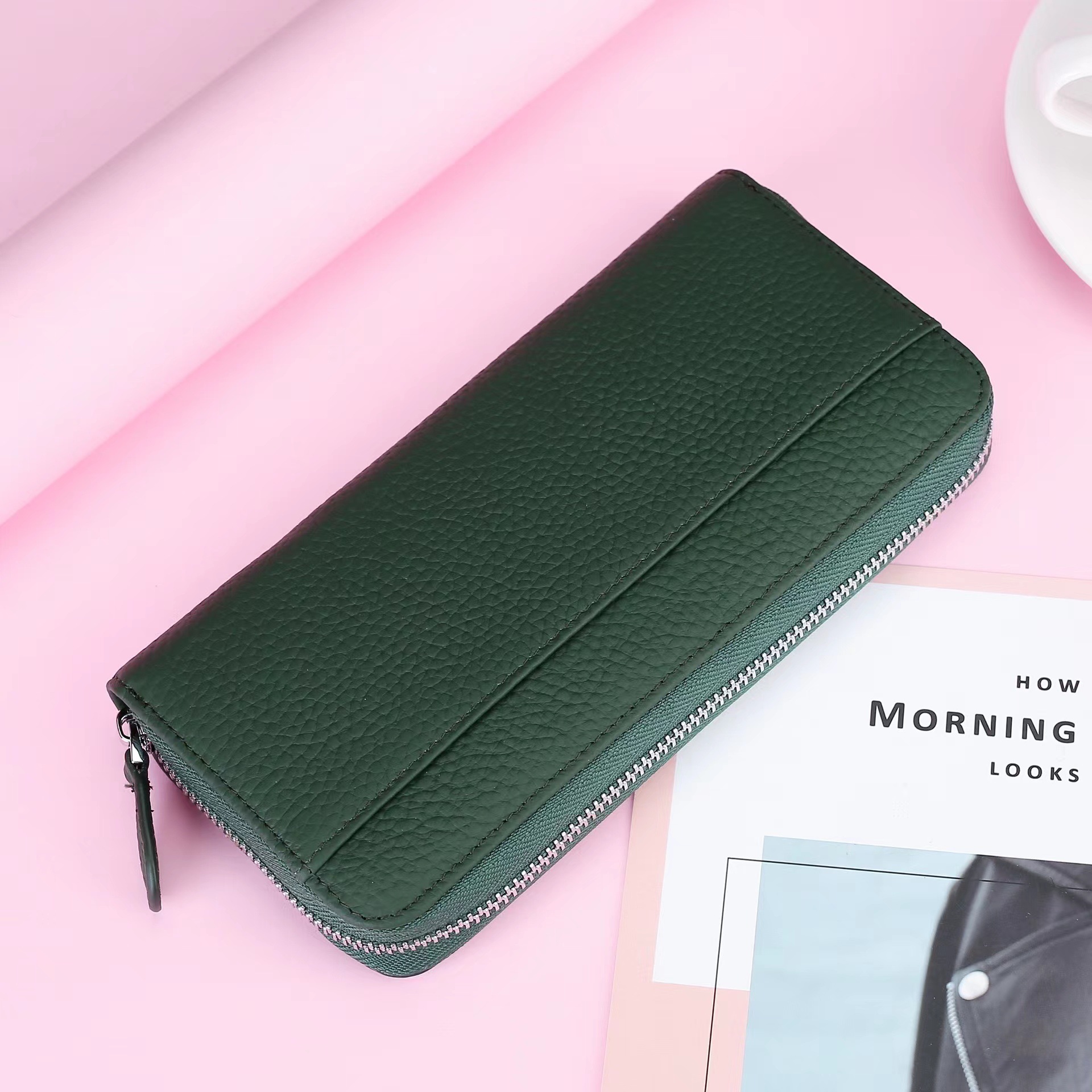 도난 방지 브러시 정품 가죽 여성 지갑 긴 일본 장기 카드 가방 일본 RFID 클러치 백 지퍼 동전 지갑스토어 가기