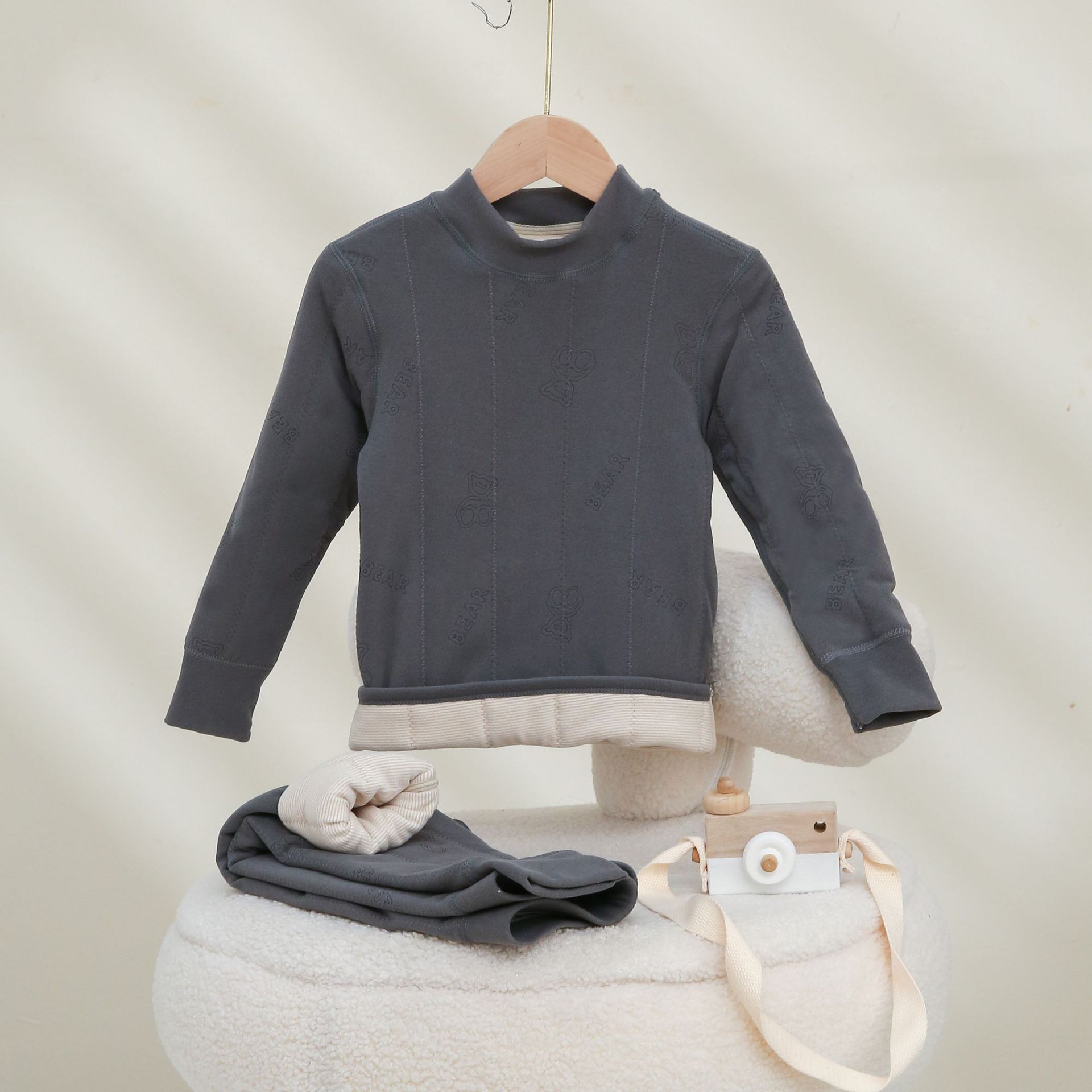어린이 착용 가정복 세트 교복 유물 방한 울 실크 열 속옷 아기 기모 두꺼운 중대형 어린이스토어 가기