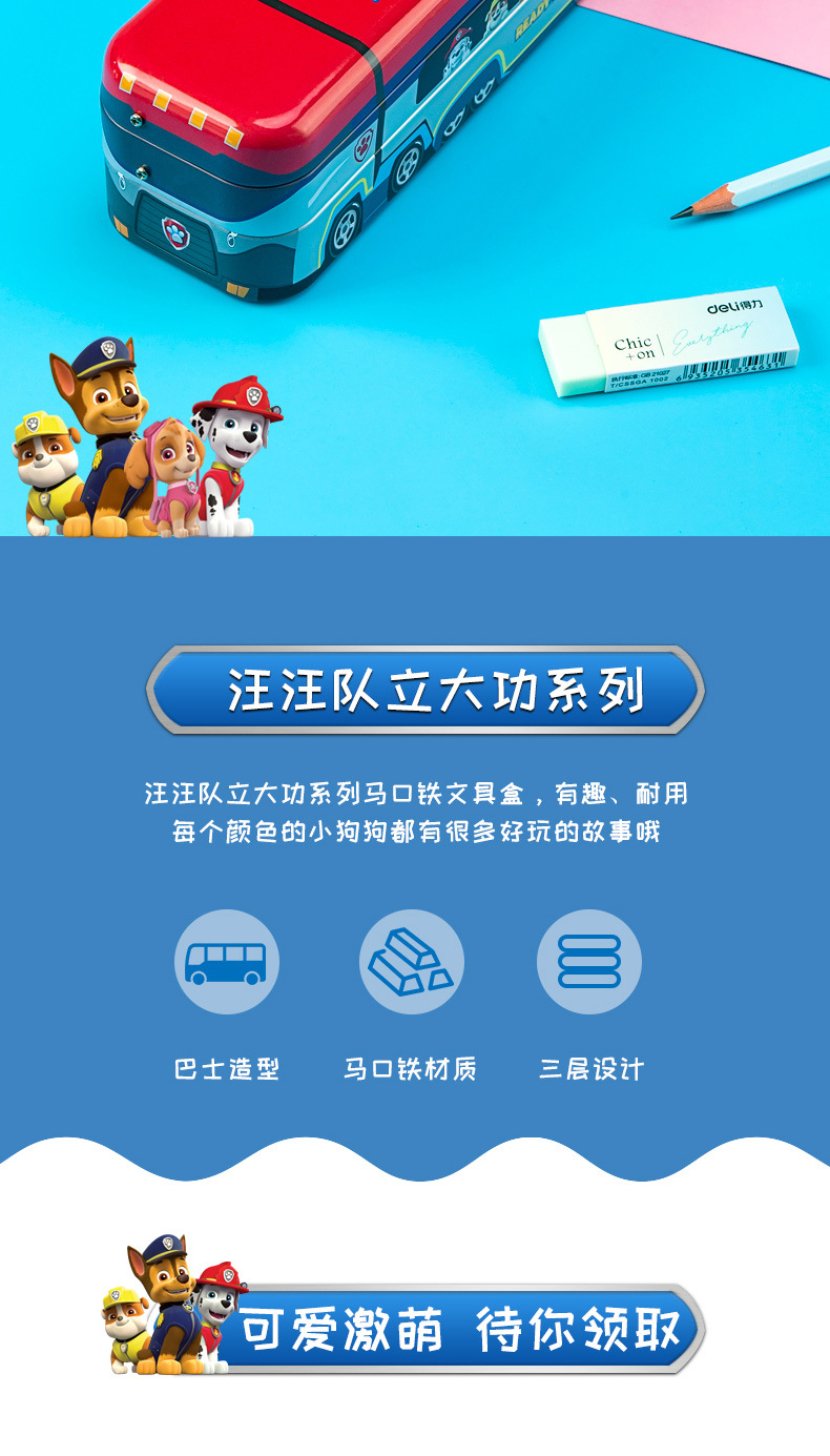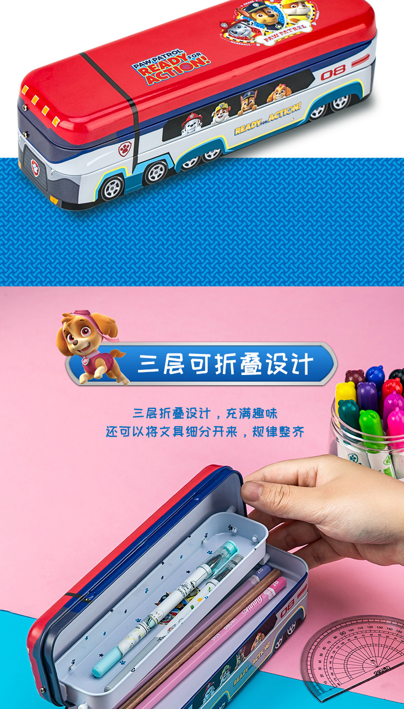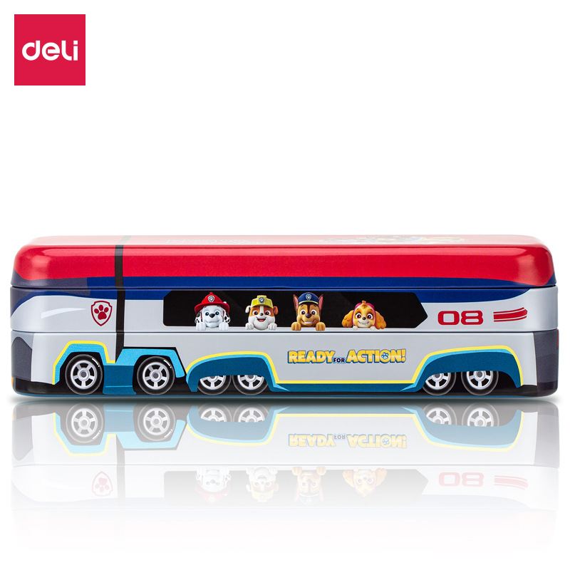 델리 70854A 왕 팀 구조 버스 문구 상자 틴플레이트 3 층 접이식 연필 상자 다기능스토어 가기