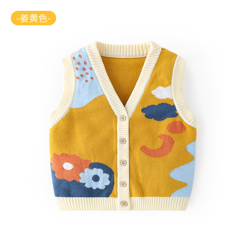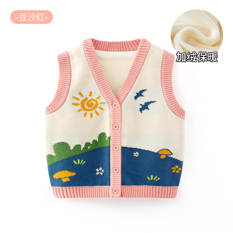 한국 스타일 귀여운 순면 부드러운 아동 조끼 니트 조끼 유아용 A급 가을 외출용 아동 가디건 조끼