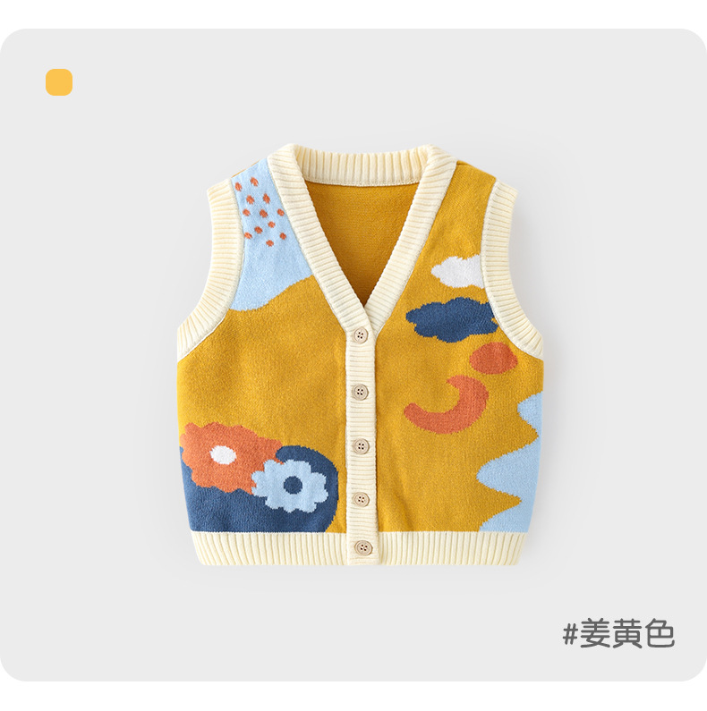 한국 스타일 귀여운 순면 부드러운 아동 조끼 니트 조끼 유아용 A급 가을 외출용 아동 가디건 조끼스토어 가기