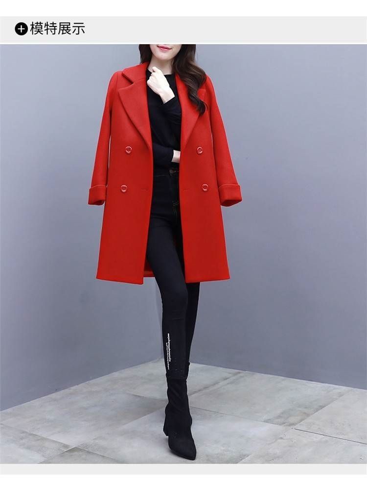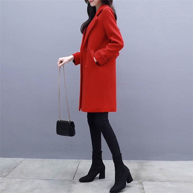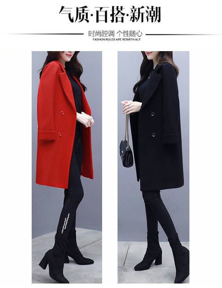 모직 코트 여자의 중간 길이 2021 가을과 겨울 새로운 느슨한 슬리밍 고치 햅번 스타일 세트 칼라 모직 코트스토어 가기