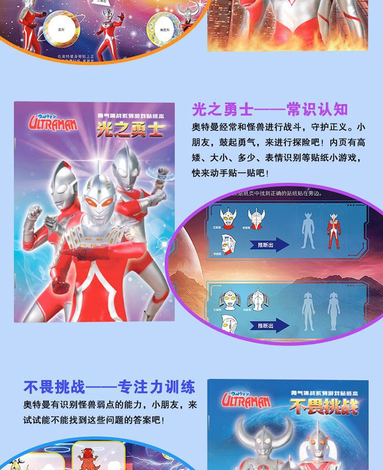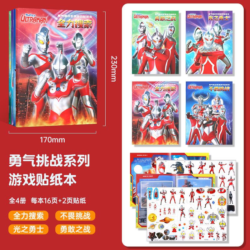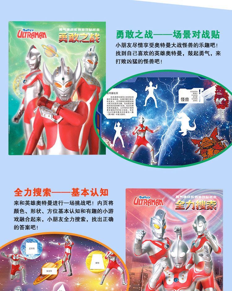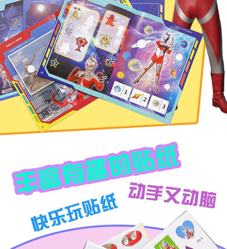 울트라 맨 스티커 책 3 ~ 6 세 어린이 소년 교육 만화 스티커 스티커 책 아기 붙여 넣기 그림책 장난감스토어 가기
