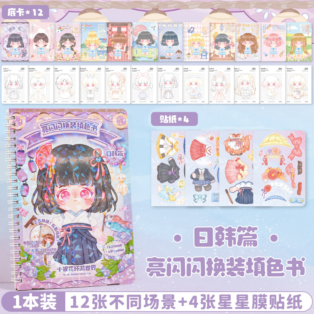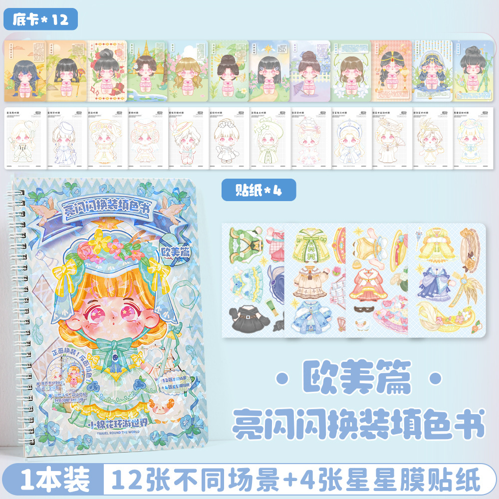 얀 그녀 작은면 변경 컬러 북 어린이 수제 DIY 페인트 만화 공주 코일 북 창조적 인 스티커스토어 가기