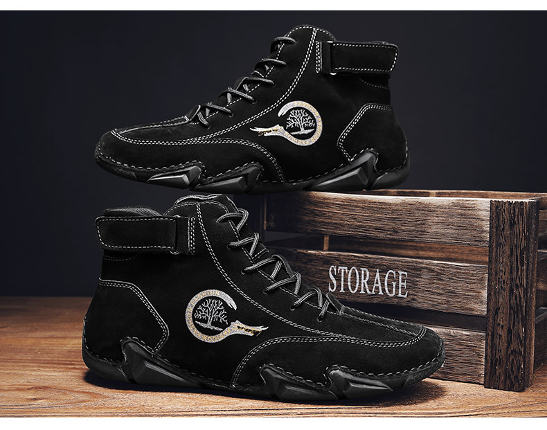 크로스 보더 새로운 하이탑 면 신발 가죽 신발 남성용 기모 부드러운 단독 보드 신발 문어 트렌디 모든 매치 통기성 마틴 부츠