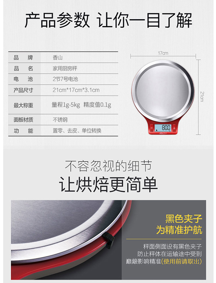 Xiangshan 주방 저울 5kg 정밀 0.1g 전자 저울 주방 전자 저울 주방 저울 가정용 베이킹 케이크