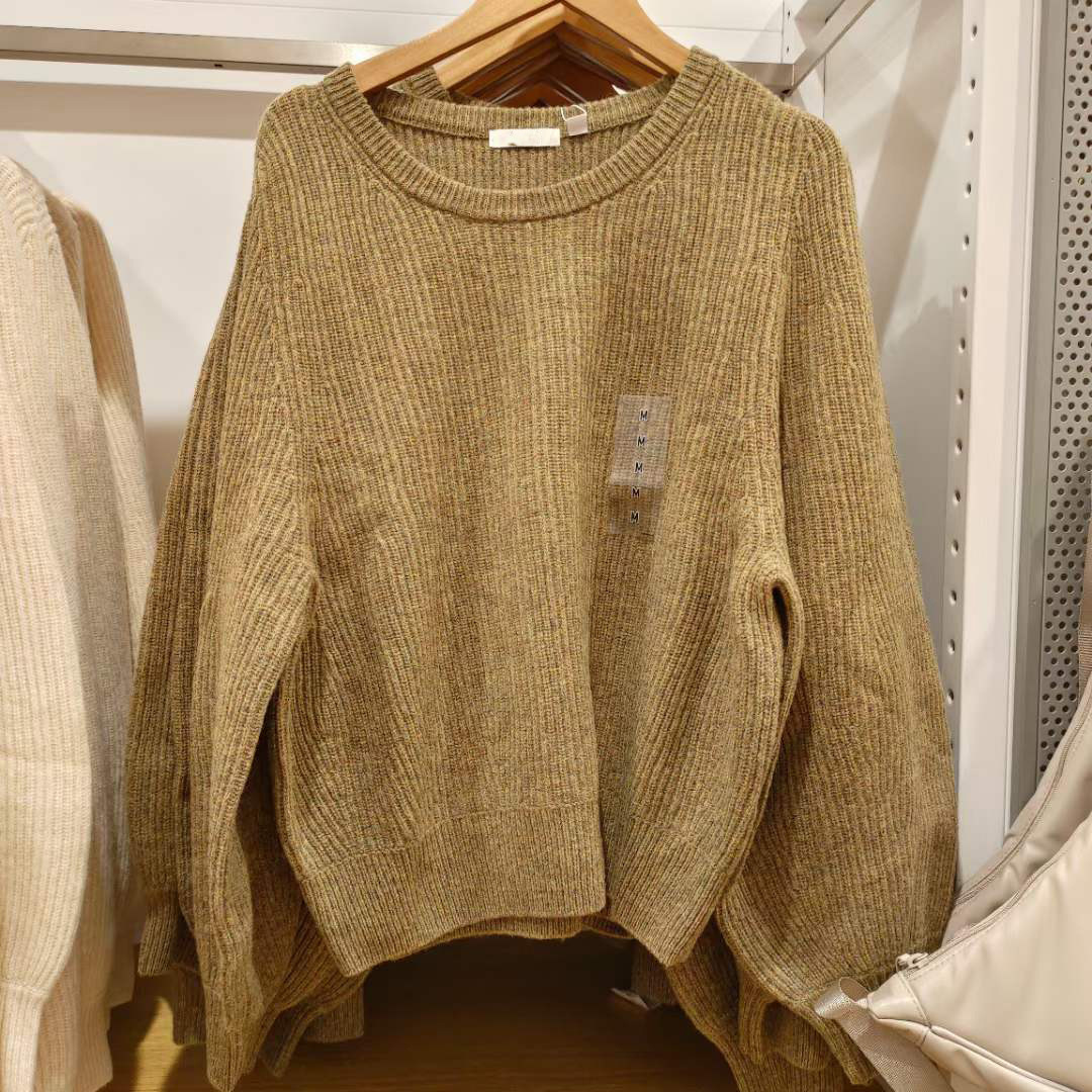 피팅 룸 소프트 니트웨어 가을과 겨울 새로운 느슨한 라운드 넥 랜턴 슬리브 스웨터 캐주얼 탑 462706스토어 가기