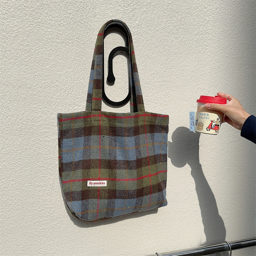 311021 가을과 겨울 대용량 여성 가방 2023 새로운 레트로 모직 격자 무늬 휴대용 토트 백 모직 숄더백스토어 가기