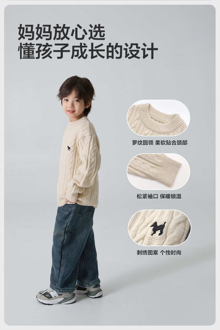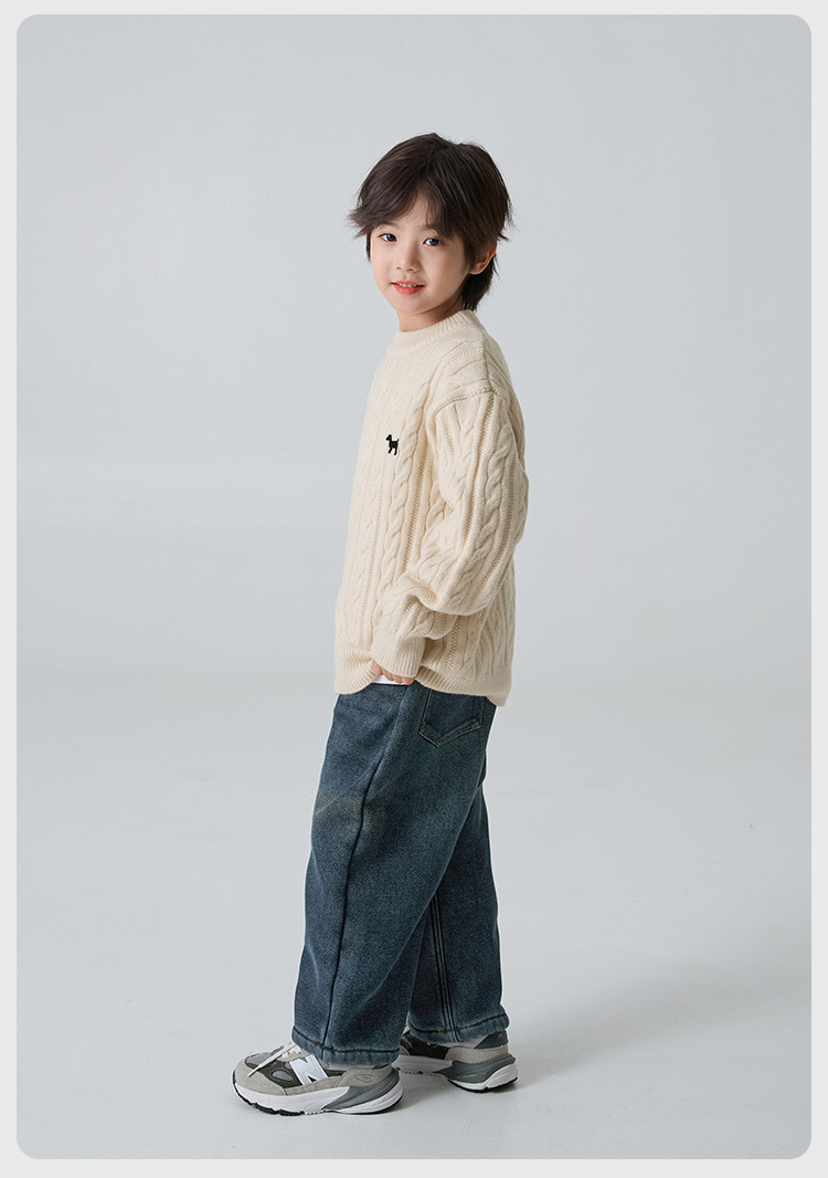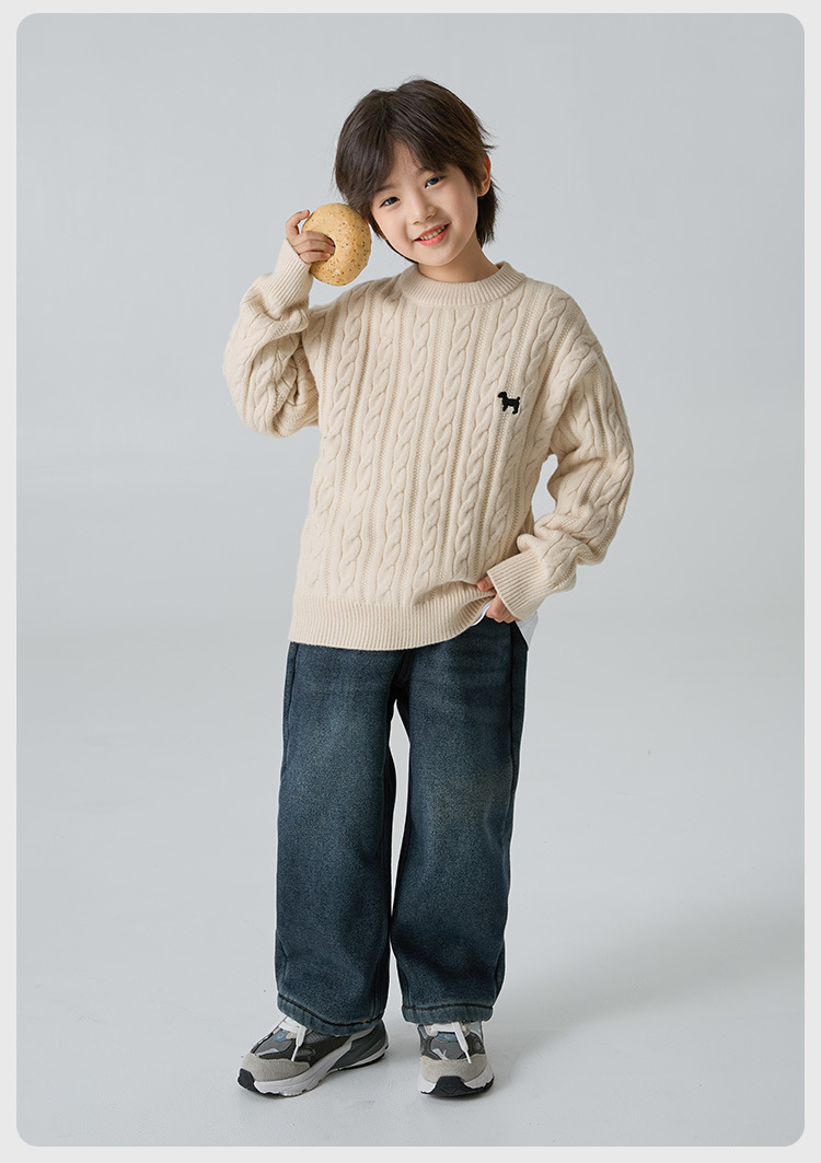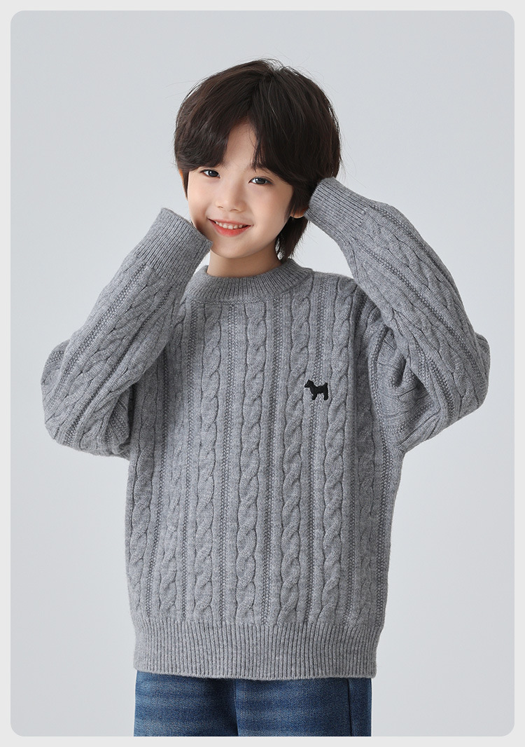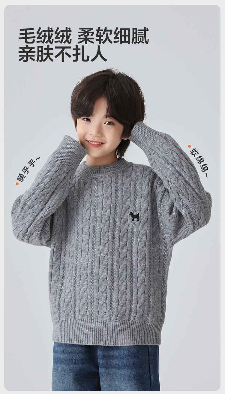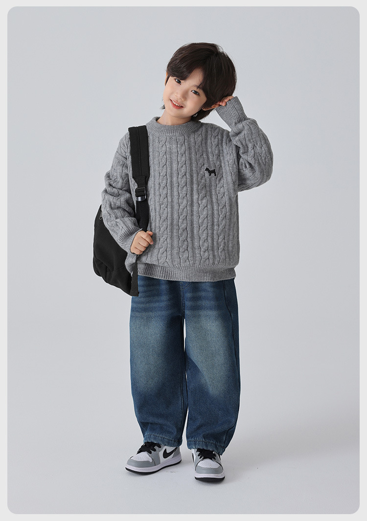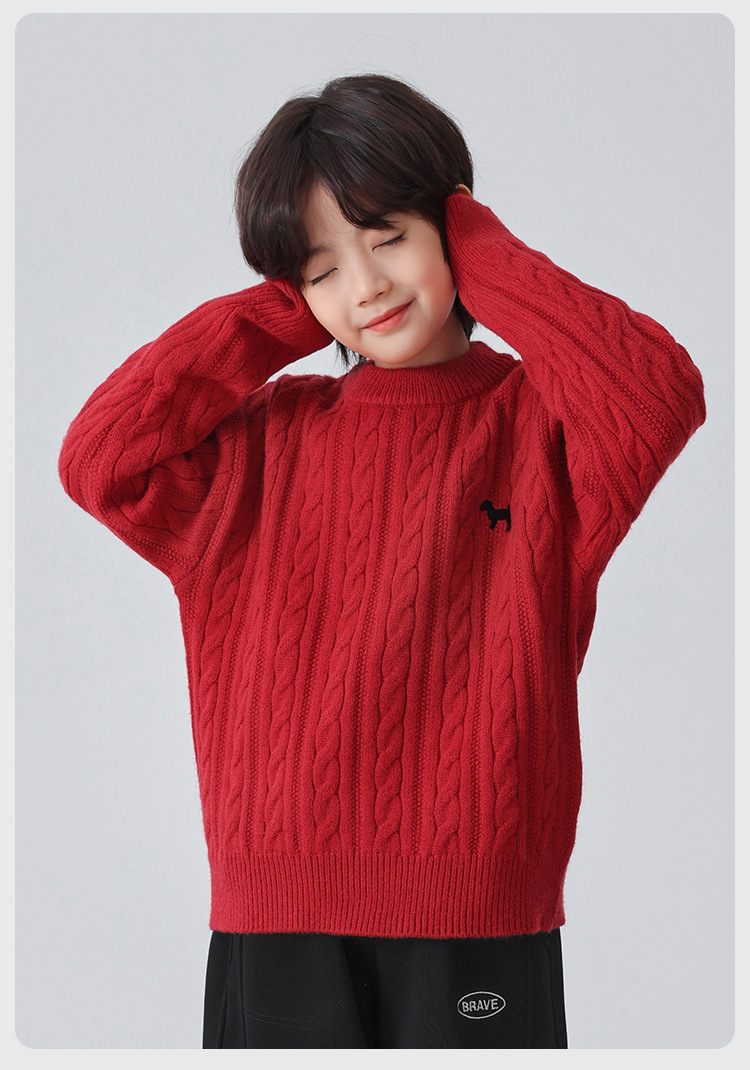 해마가족 남아용 2025 겨울 신상 라운드넥 니트웨어, 한국 스타일 아동복, 꼬임 니트 스웨터, 여아용스토어 가기
