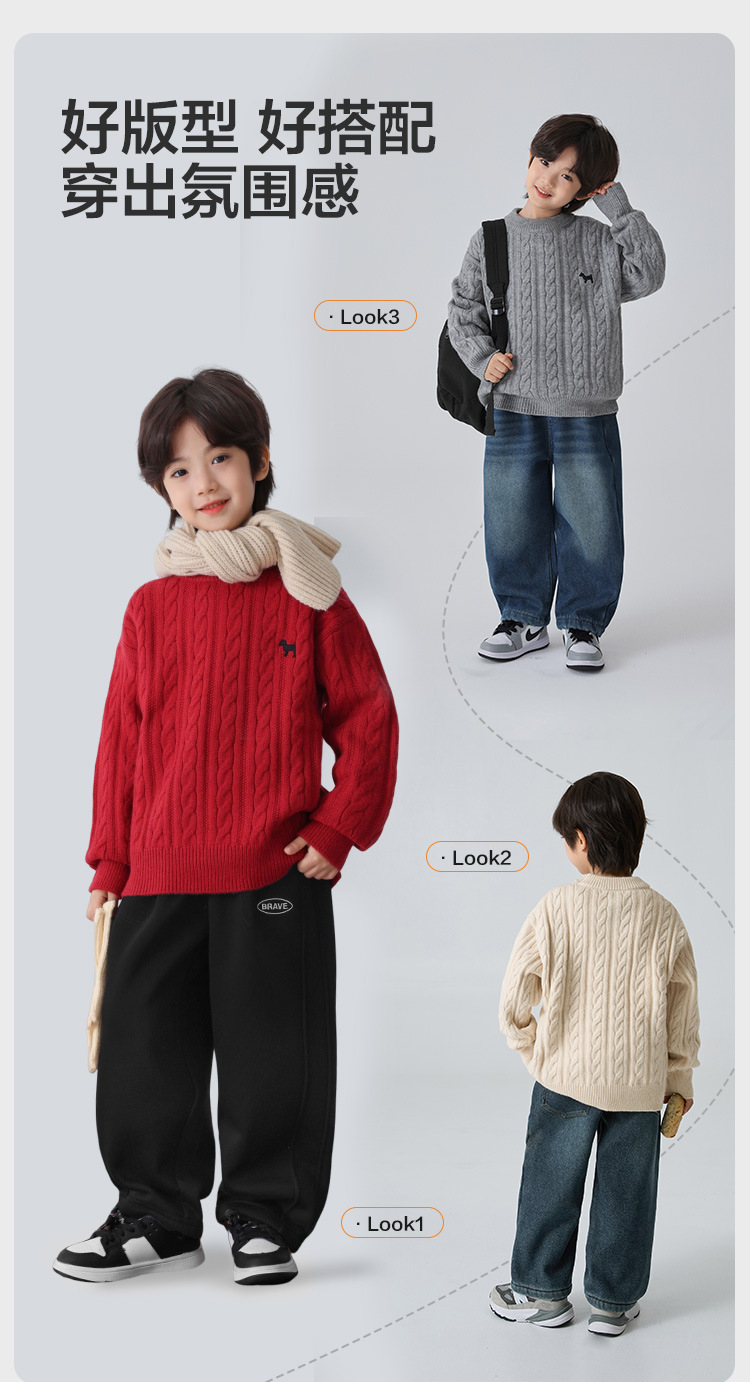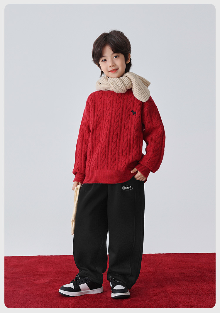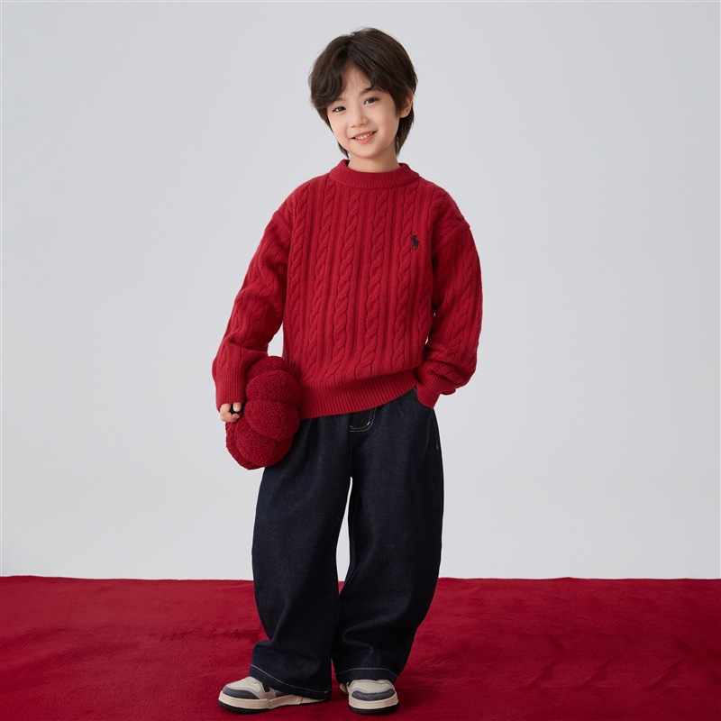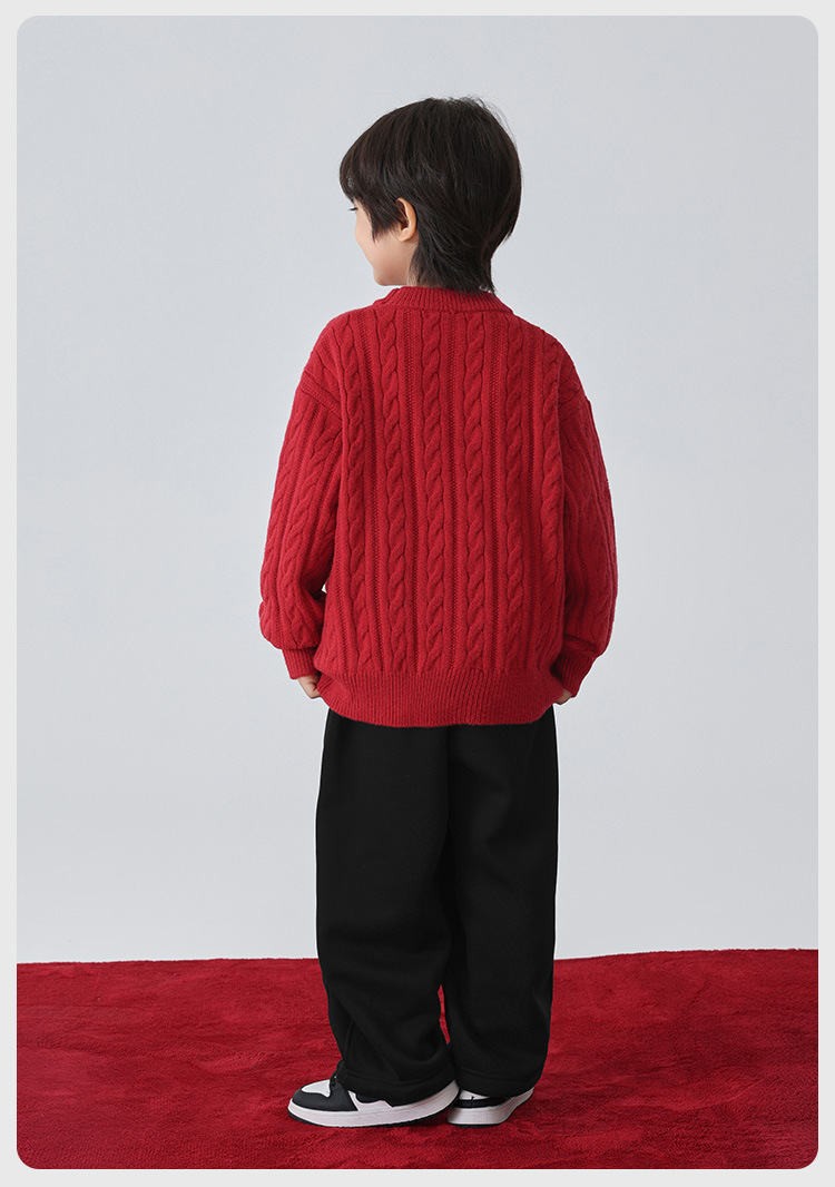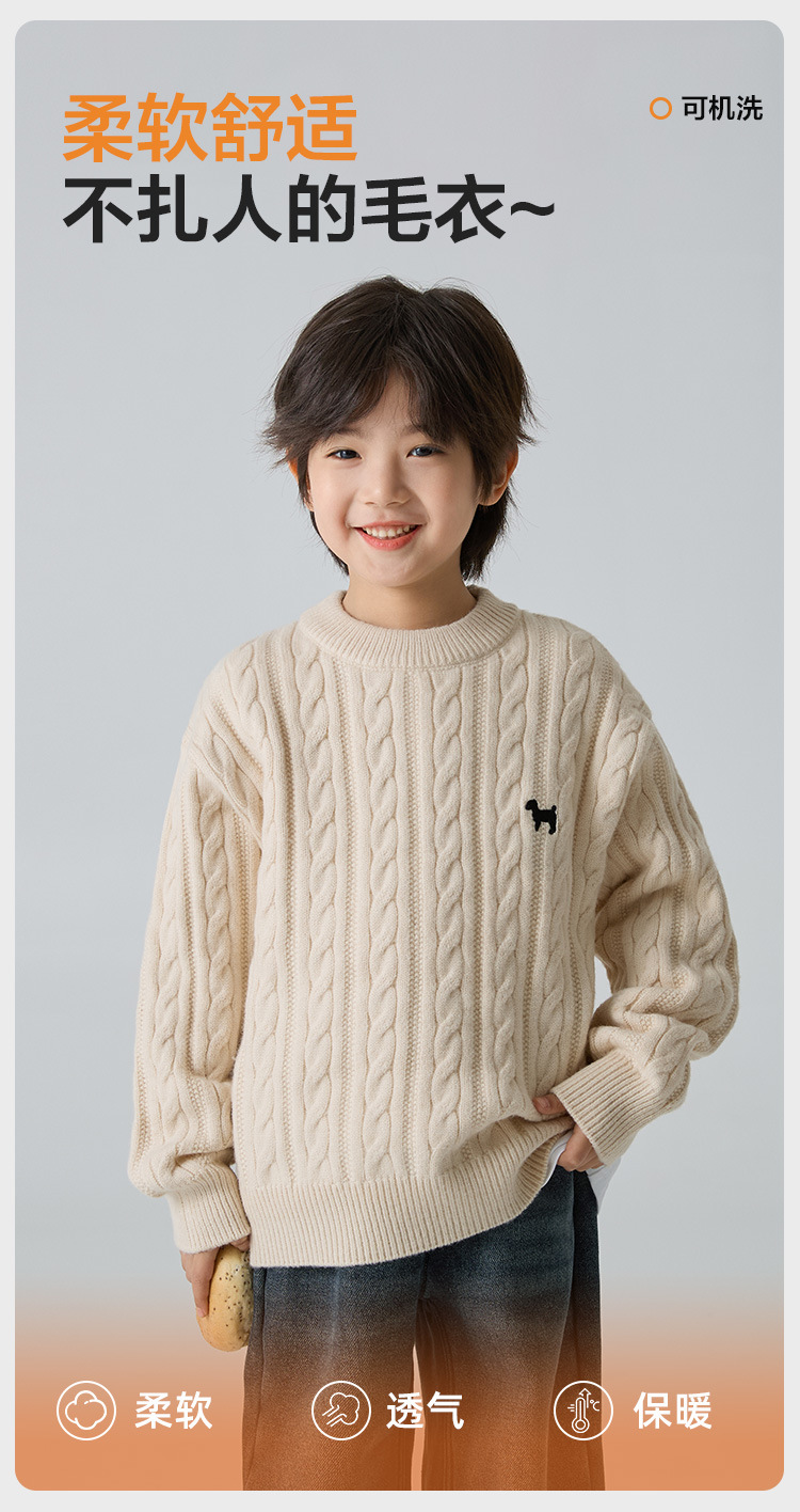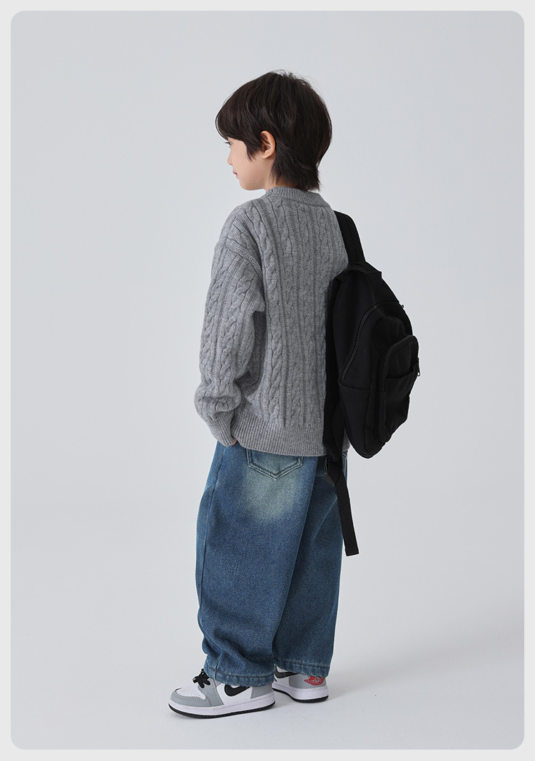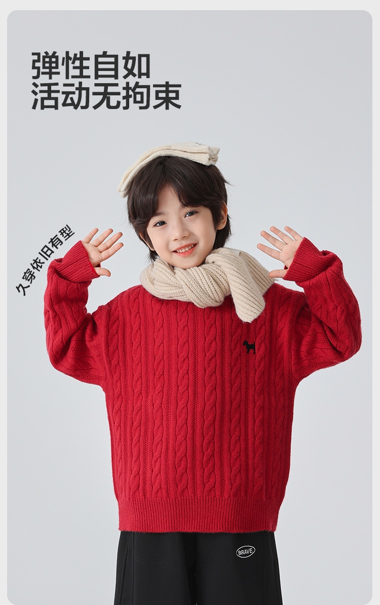 해마가족 남아용 2025 겨울 신상 라운드넥 니트웨어, 한국 스타일 아동복, 꼬임 니트 스웨터, 여아용스토어 가기