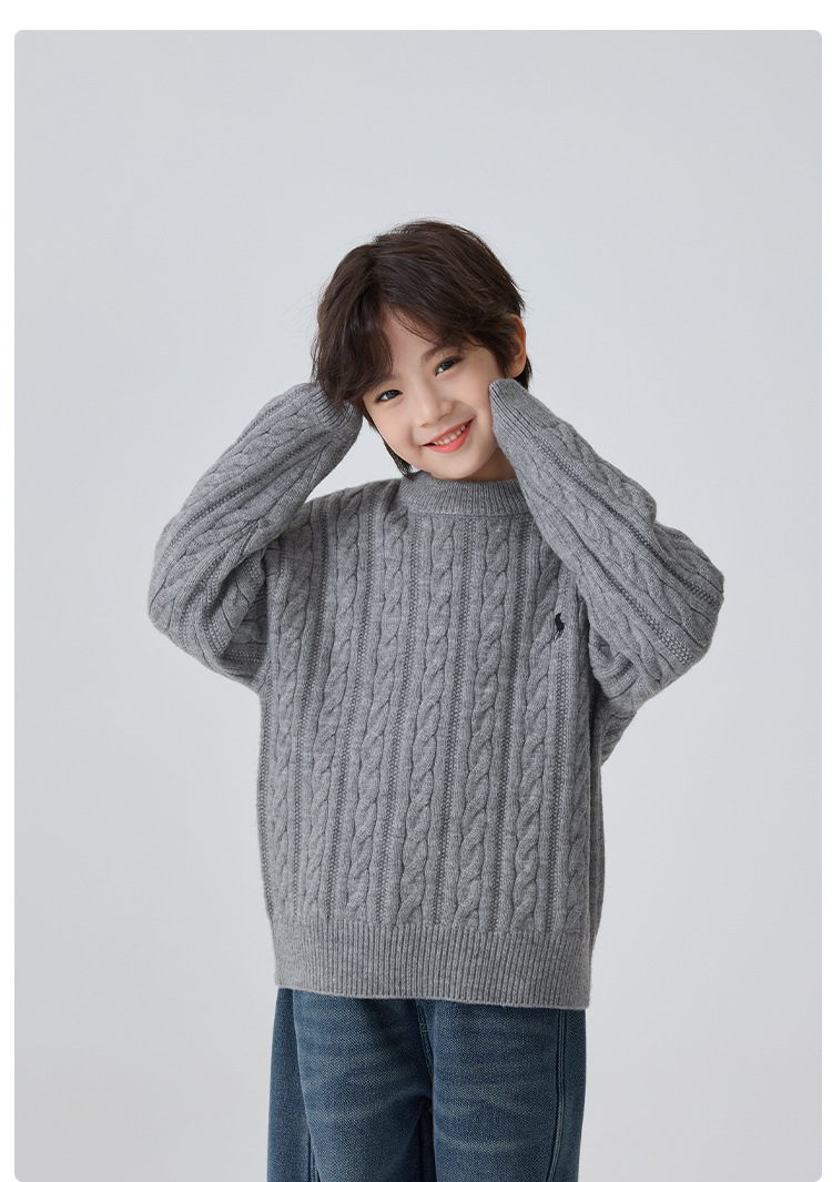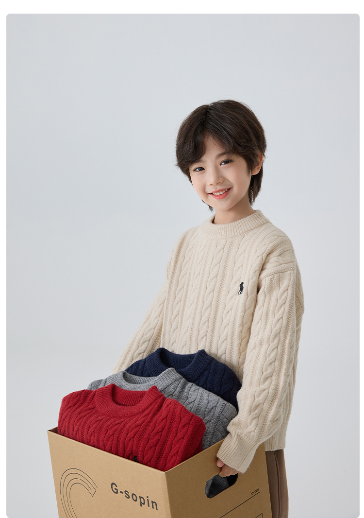 Haima Jia Boys 2024 가을, 겨울 새로운 라운드 넥 스웨터 어린이 한국 스타일 아동 의류 트위스트 스웨터 소녀스토어 가기