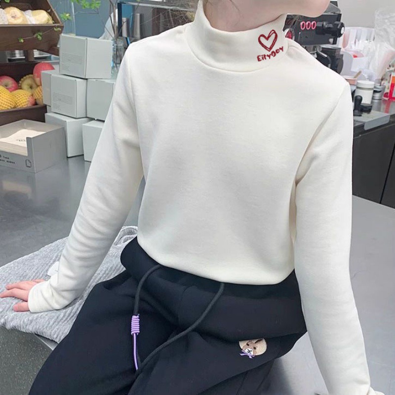 여아 하의 셔츠 가을 겨울 어린이 및 소녀 및 유아용 긴팔 티셔츠 하프 하이 칼라 외국 스타일 벨벳 방한 탑스토어 가기