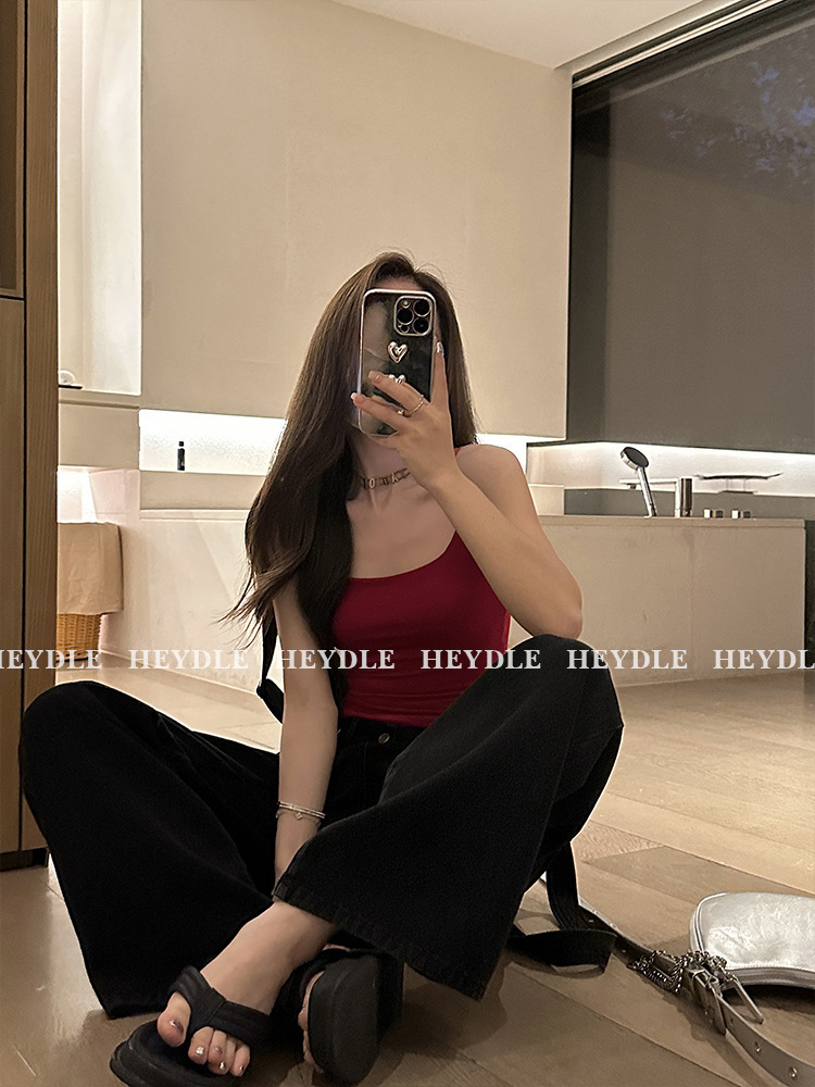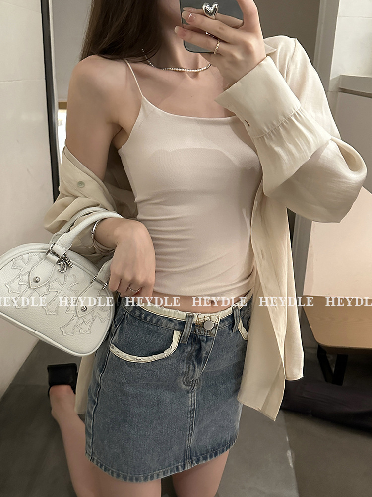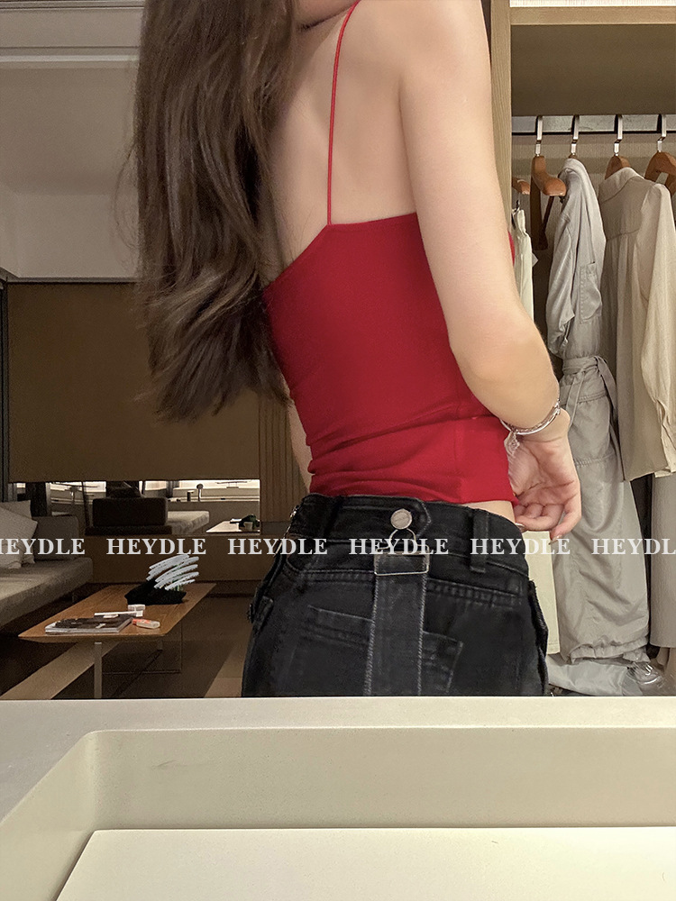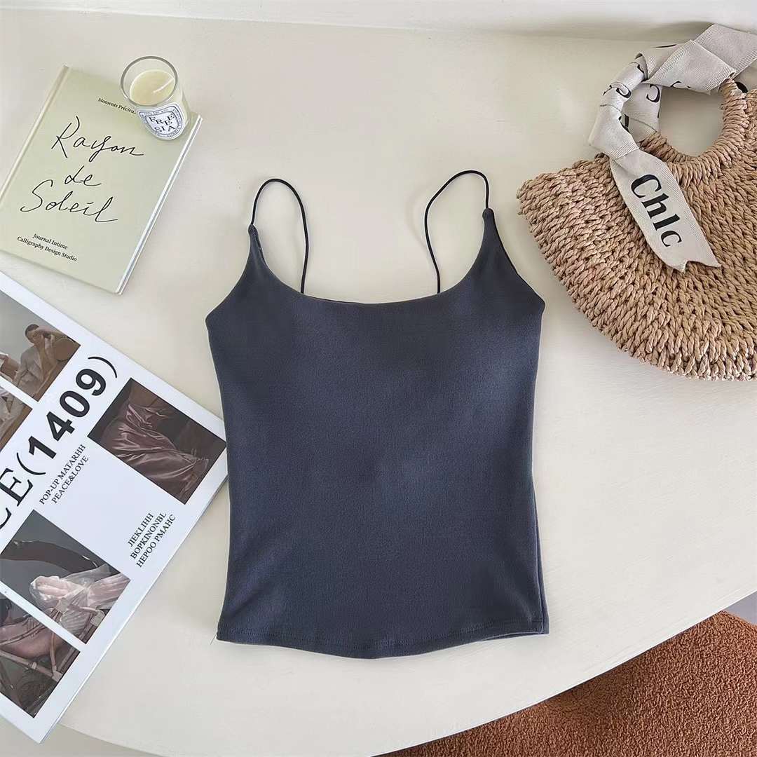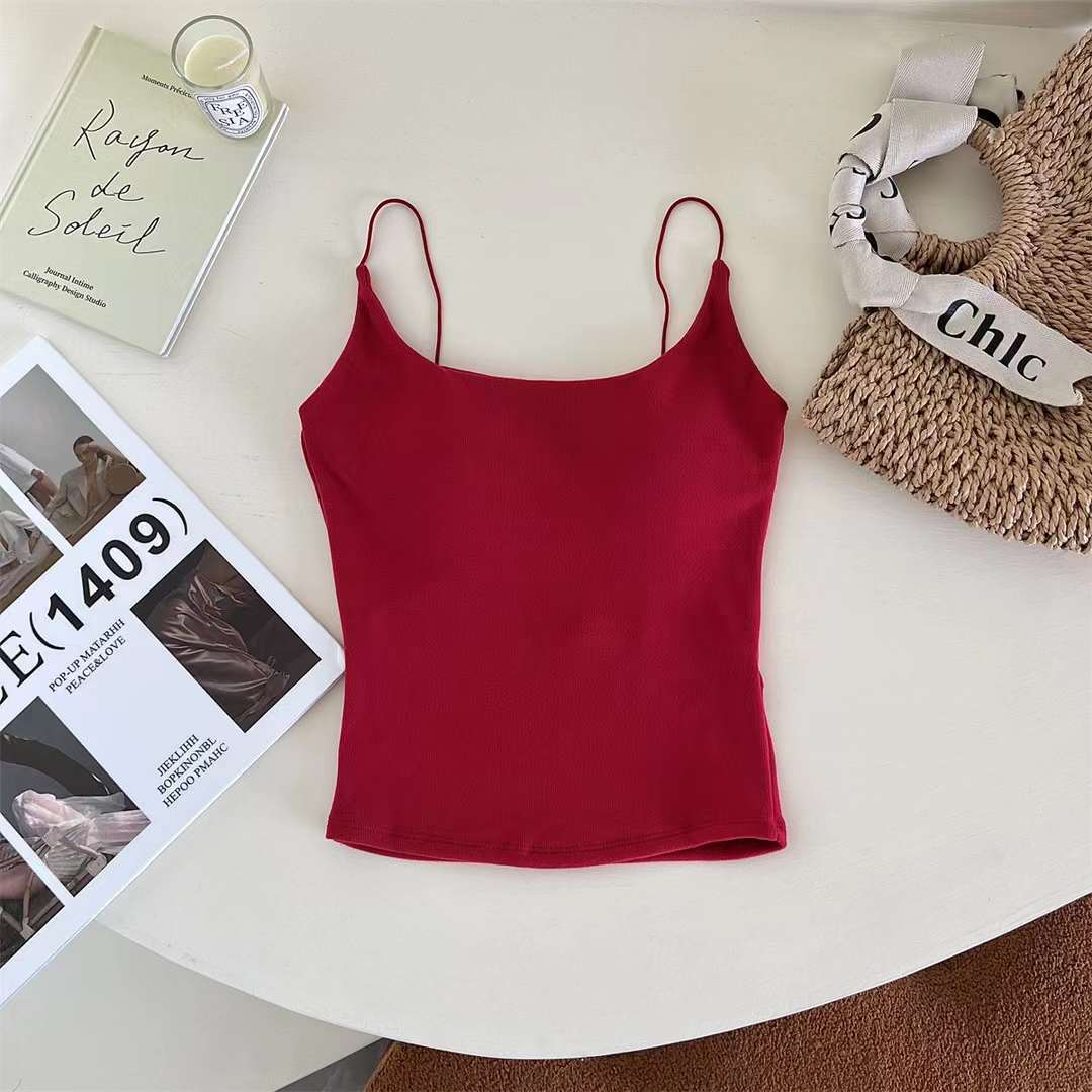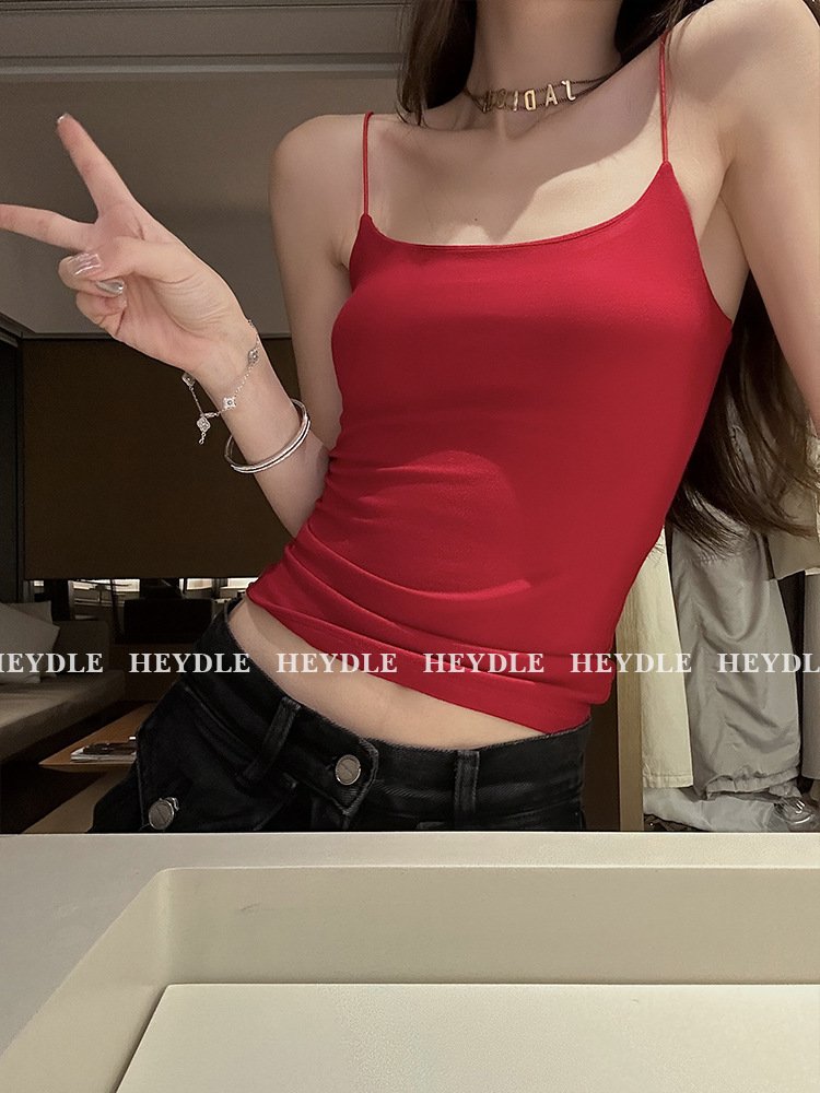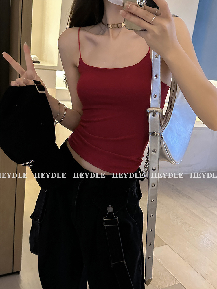 아메리칸 스타일 핫 걸 스타일 섹시 스크럽 캐미솔 여성용 원피스 컵 커버 슬림핏 올매치 이너웨어 겉옷 민소매 탑