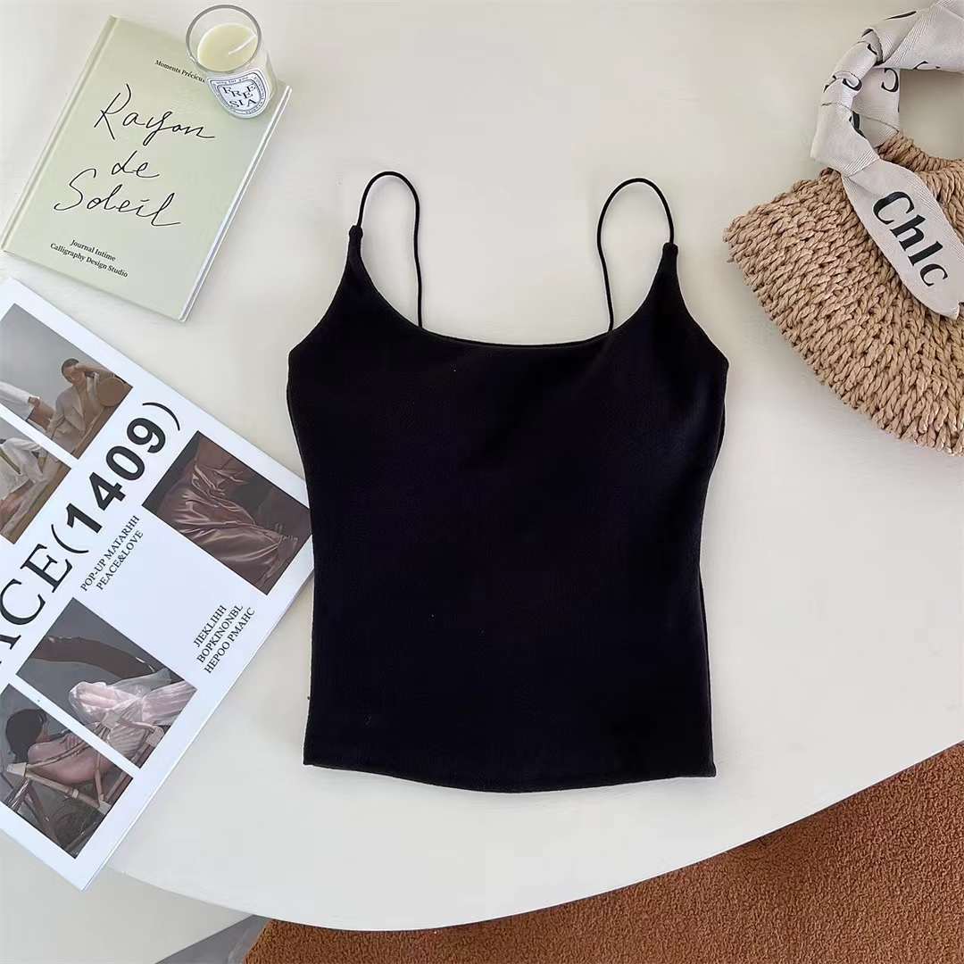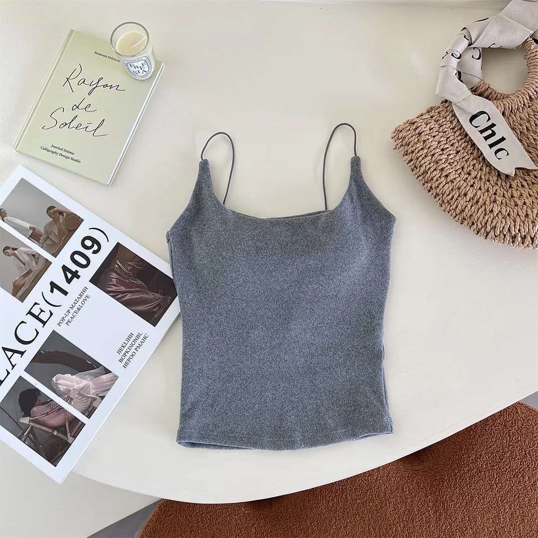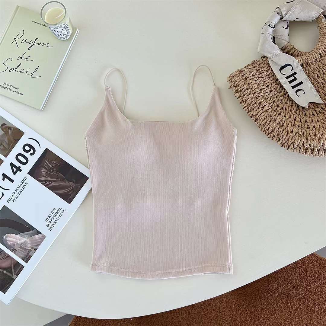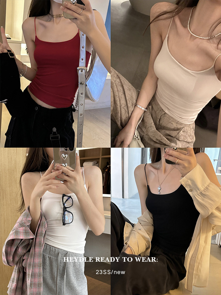 아메리칸 스타일 핫 걸 스타일 섹시 스크럽 캐미솔 여성용 원피스 컵 커버 슬림핏 올매치 이너웨어 겉옷 민소매 탑스토어 가기