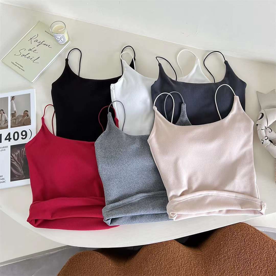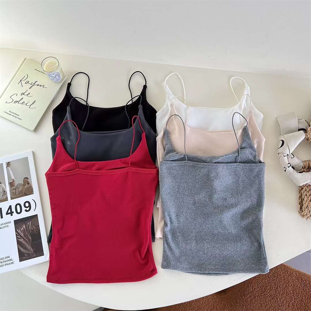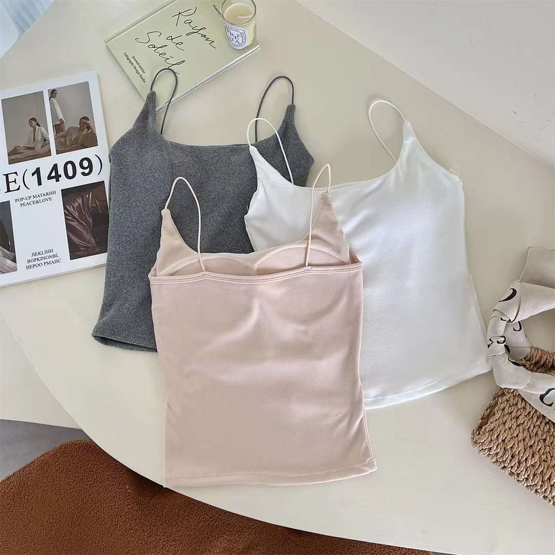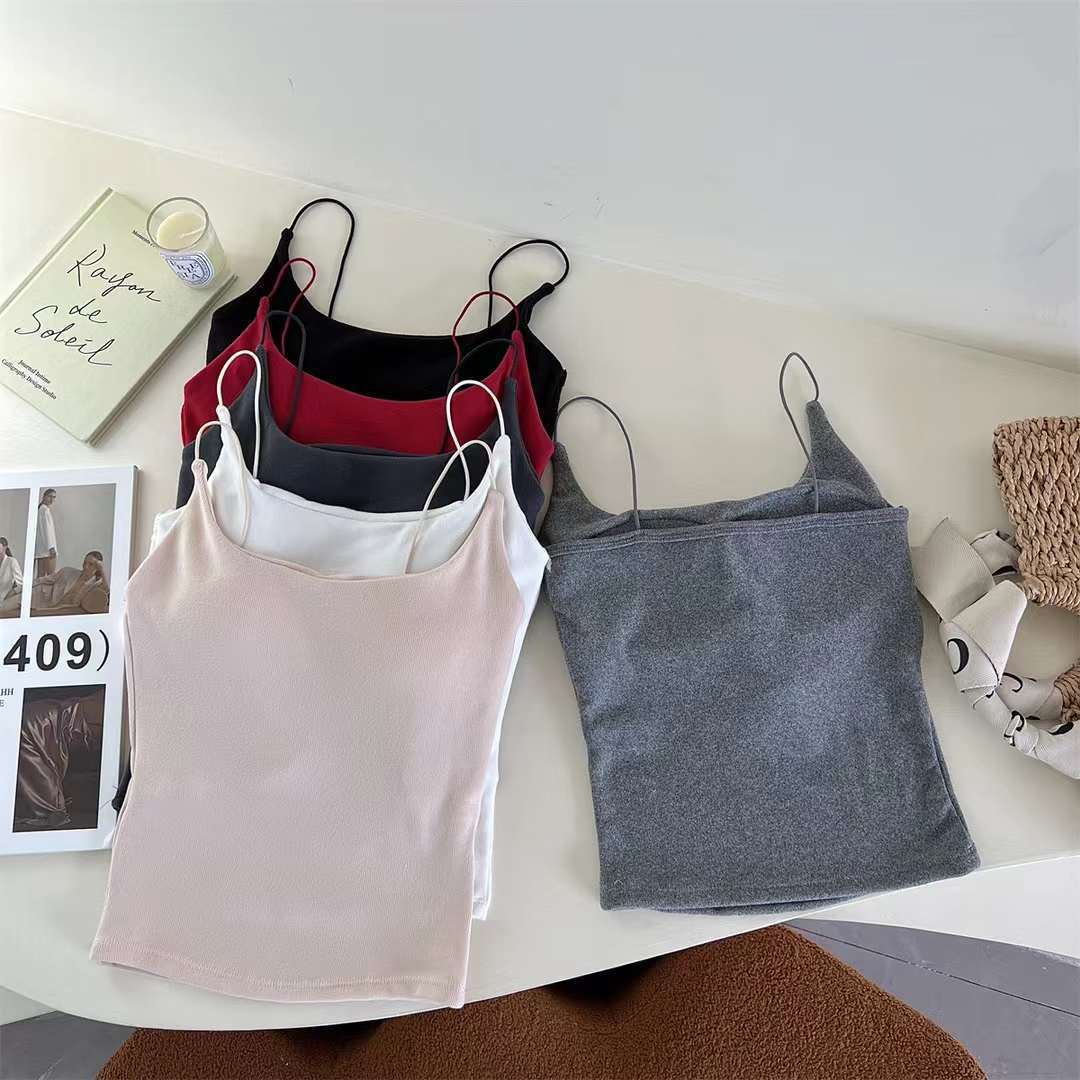 아메리칸 스타일 핫 걸 스타일 섹시 스크럽 캐미솔 여성용 원피스 컵 커버 슬림핏 올매치 이너웨어 겉옷 민소매 탑스토어 가기