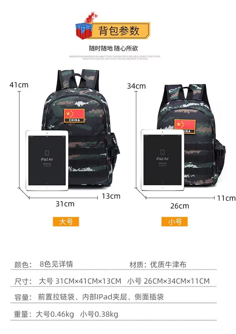 어린이 여름 캠프 배낭 유치원 초등학생 배낭 군사 훈련 야외 전투 준비 비상 위장 배낭