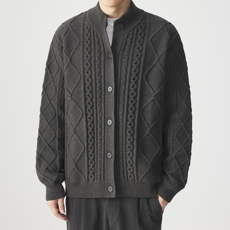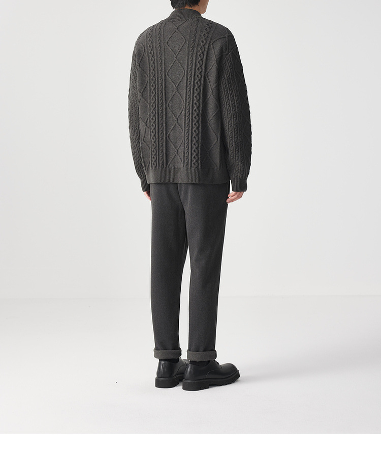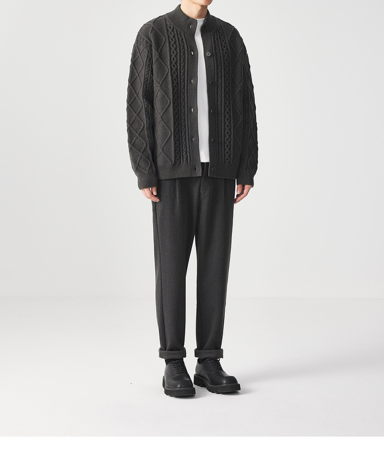 【129위안】모마이커 심플 루즈 스타일 스탠드 칼라 니트 재킷 남성용 헤비 웨이브 패턴 남성 스웨터 20681
