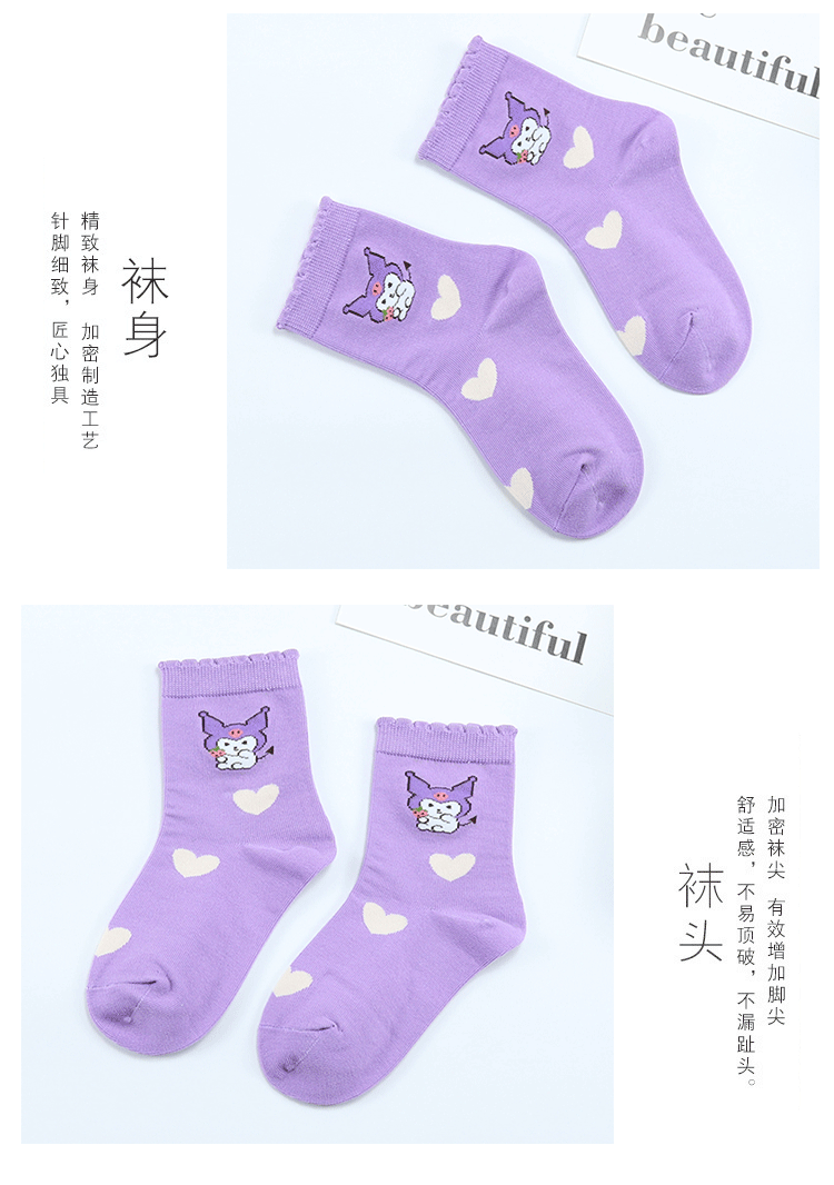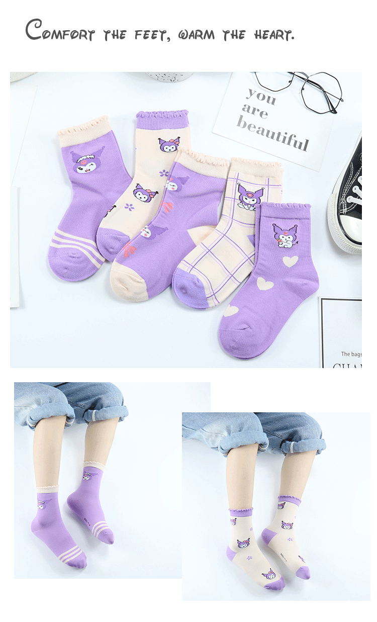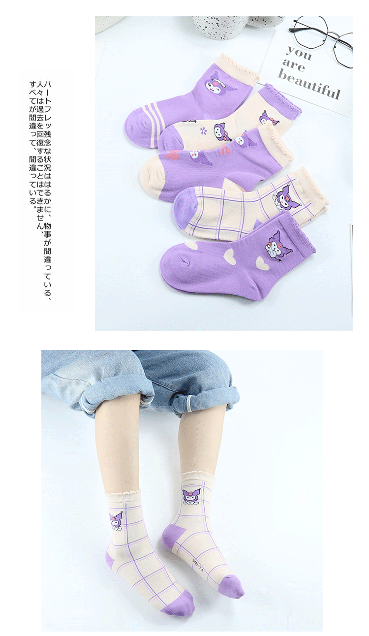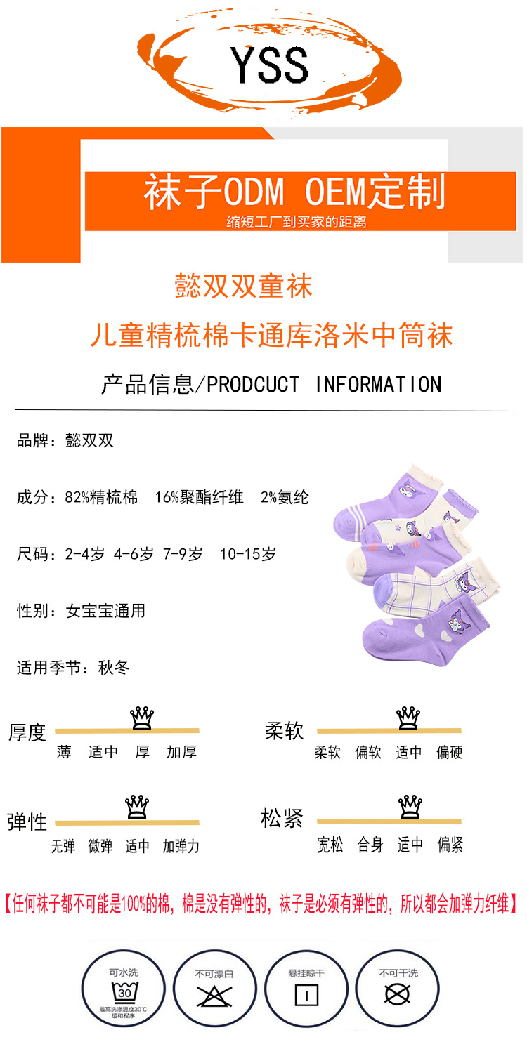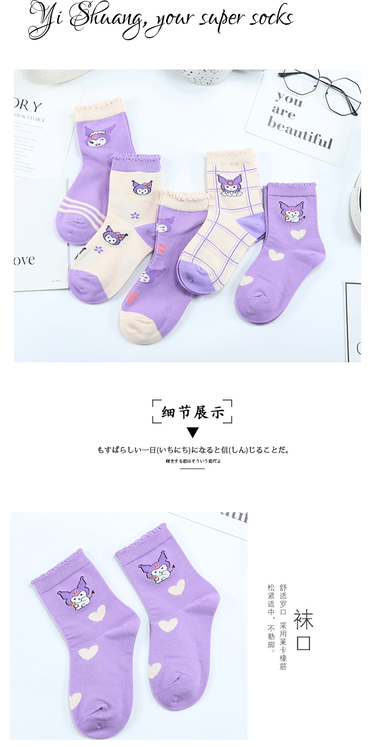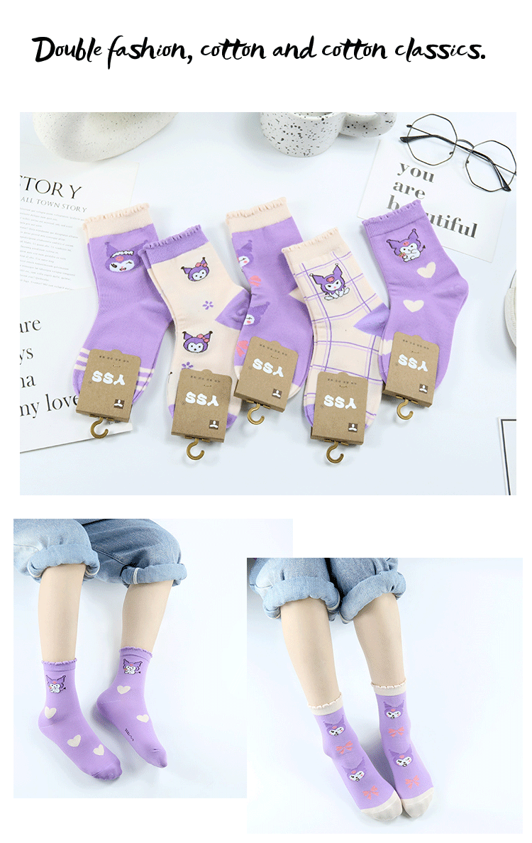 Yi 쌍 어린이 양말 가을과 겨울 새로운 두꺼운 만화 Kulomi 중간 양말 빗질 코튼 퍼플 뼈없는 어린이 양말스토어 가기