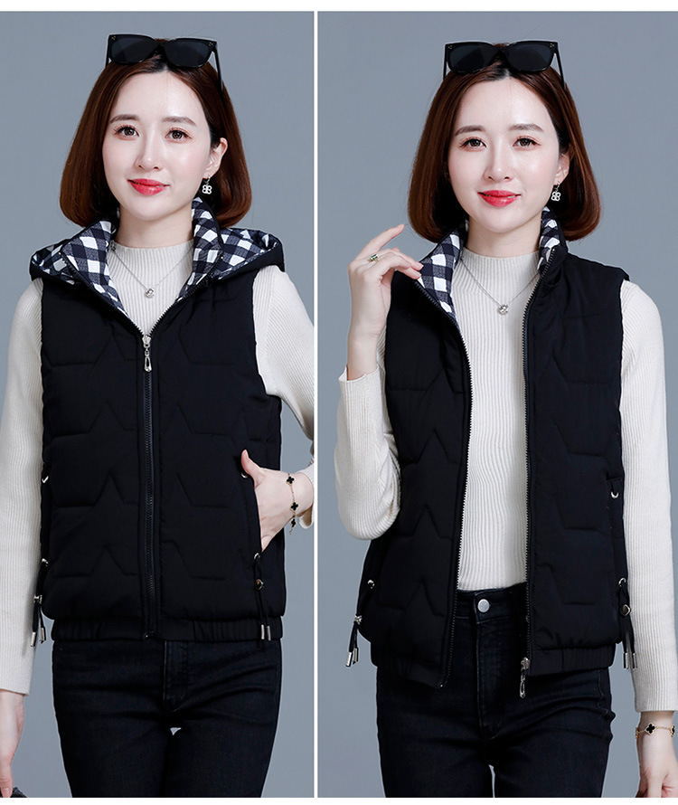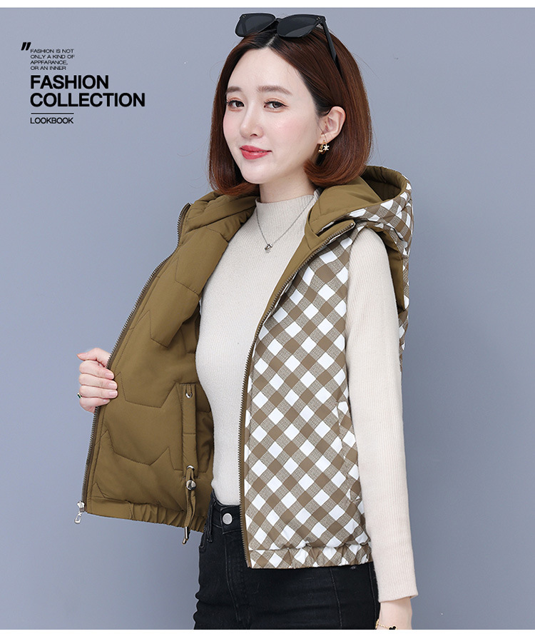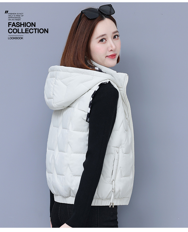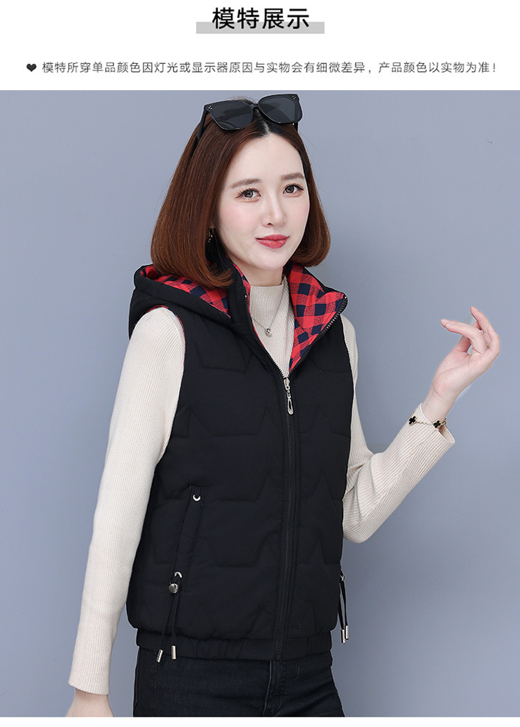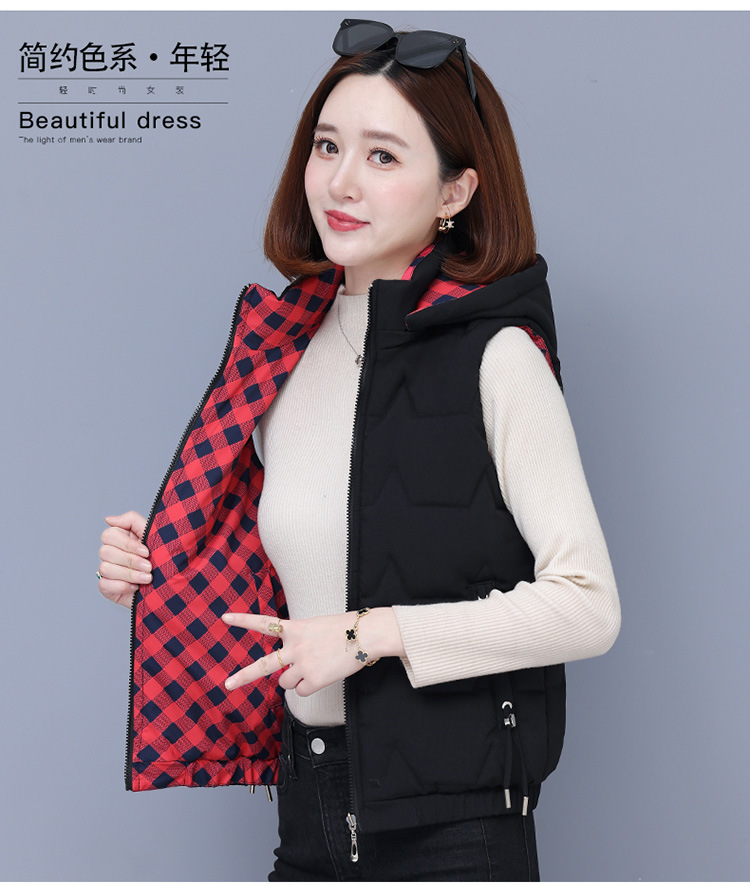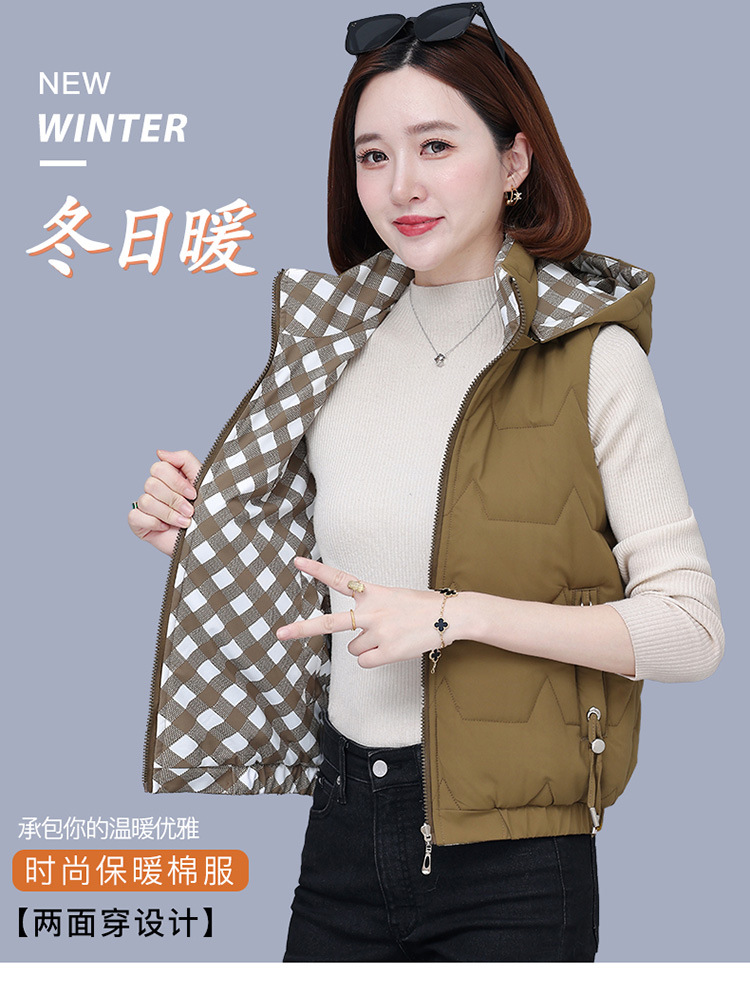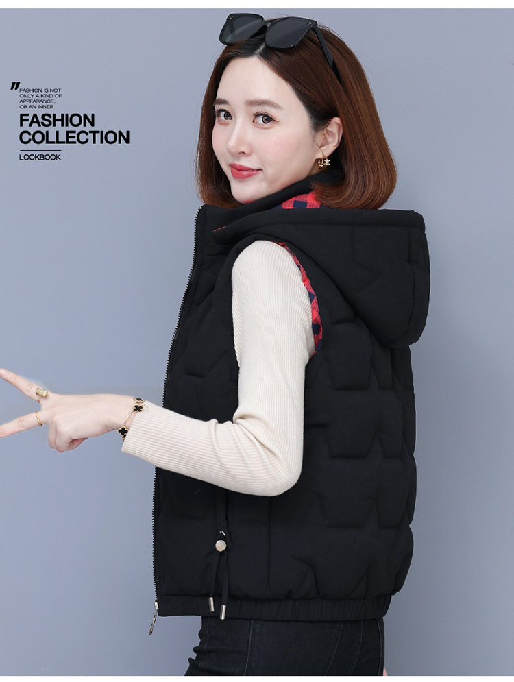 겨울 양면 면 조끼 여성의 한국식 유행 두꺼운 따뜻한 조끼 후드 조끼 재킷 여성 의류스토어 가기