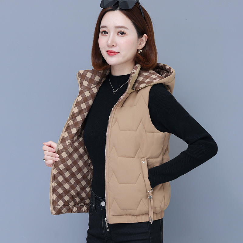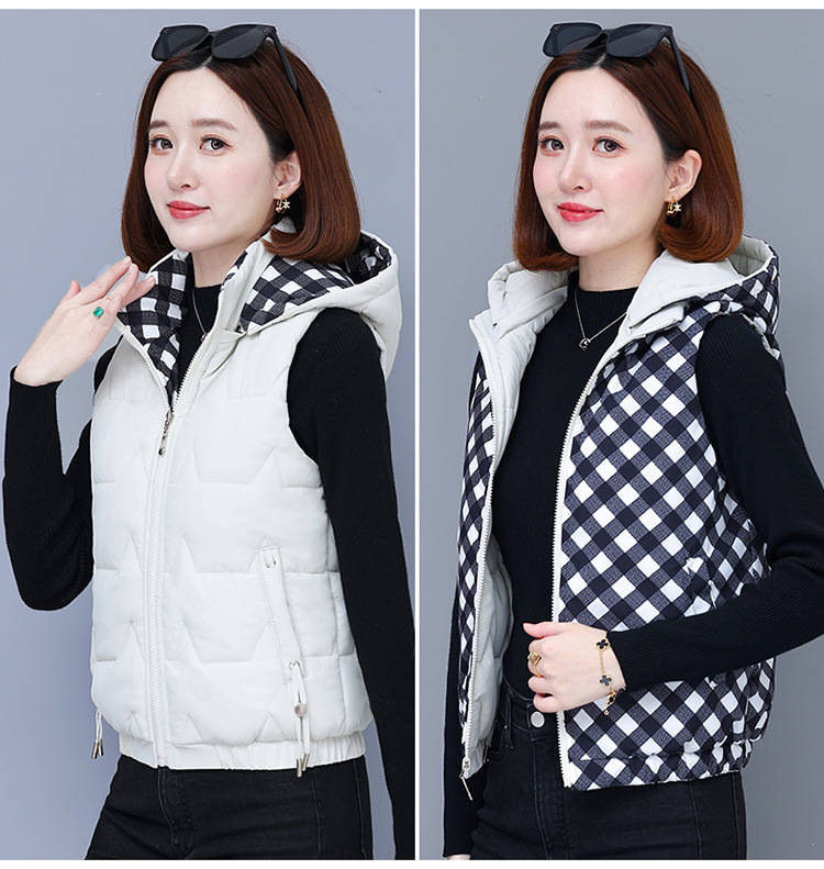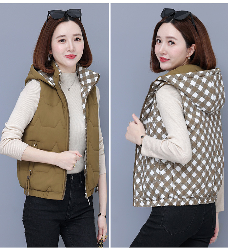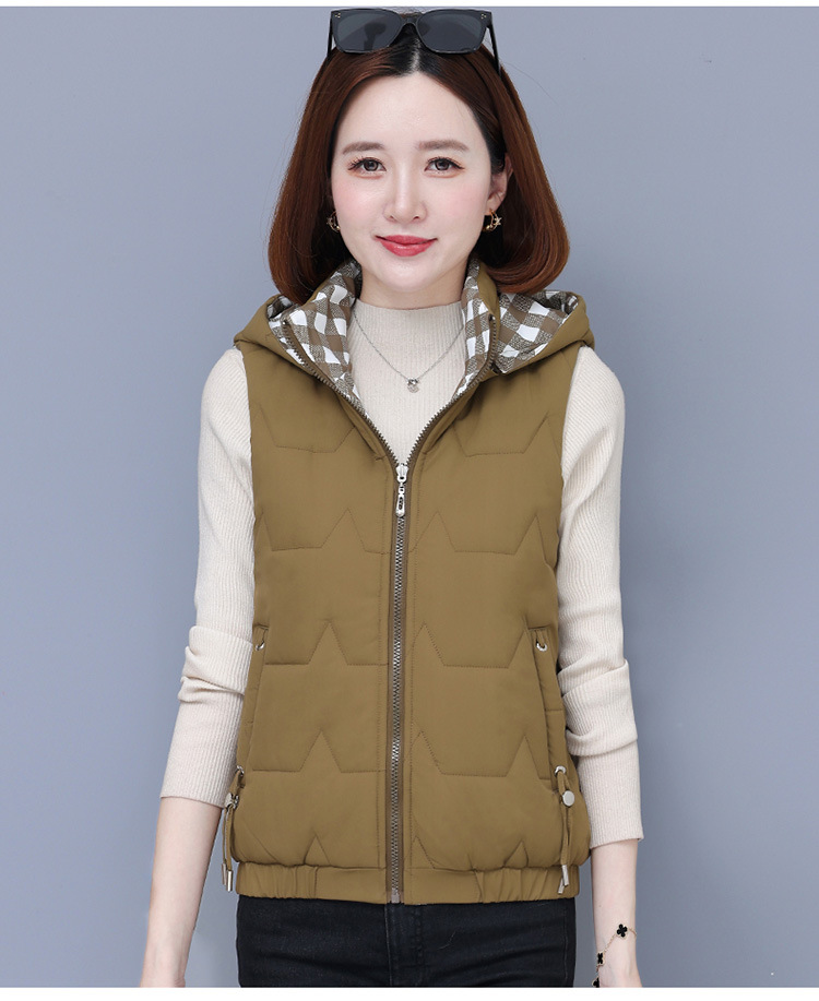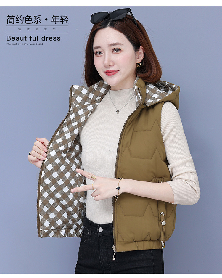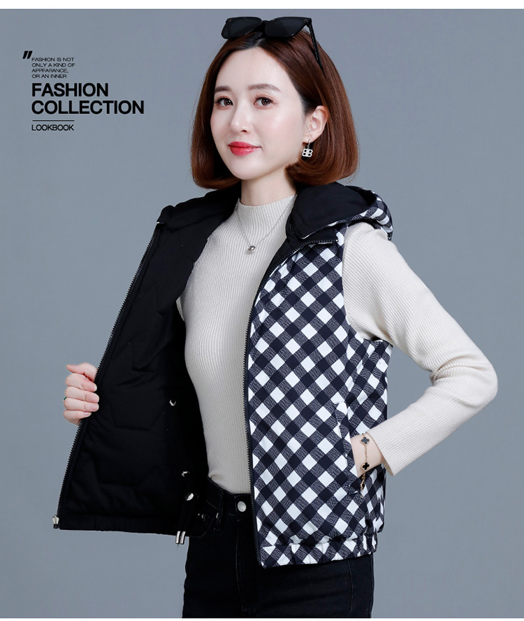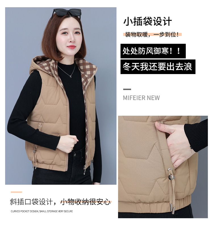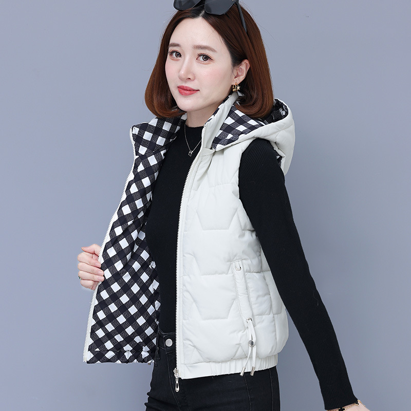 겨울 양면 면 조끼 여성의 한국식 유행 두꺼운 따뜻한 조끼 후드 조끼 재킷 여성 의류스토어 가기