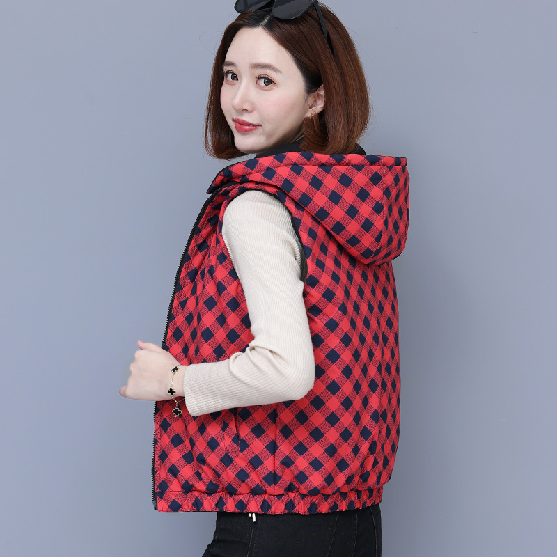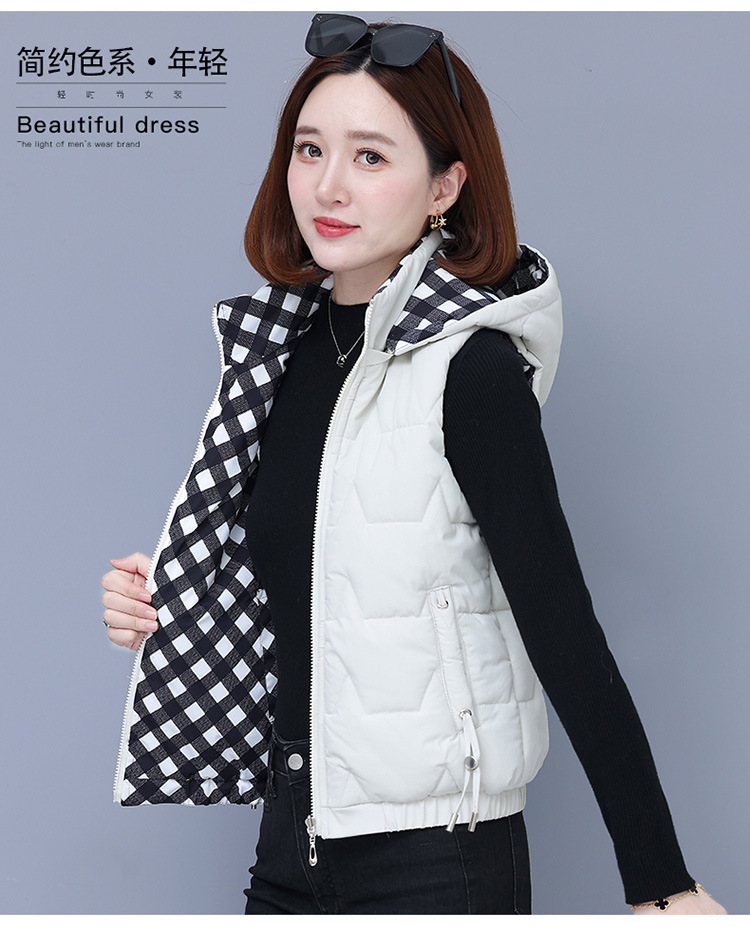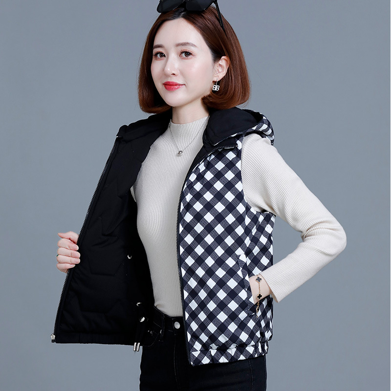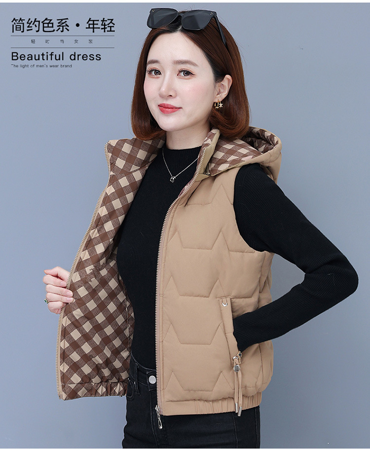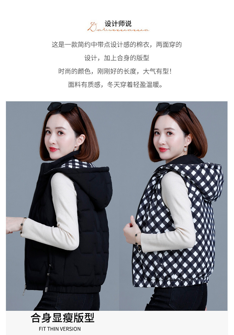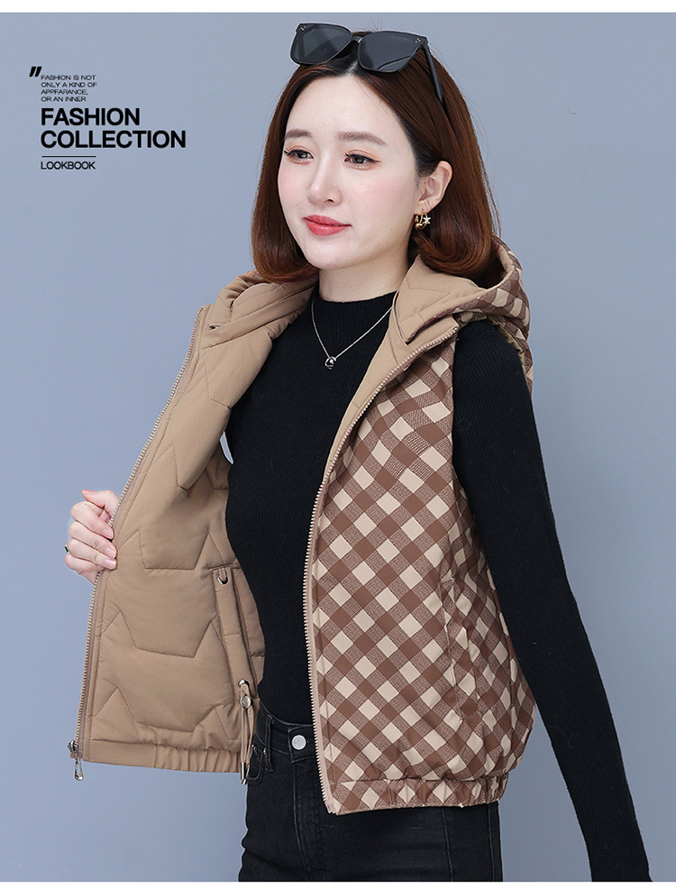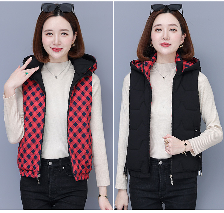 겨울 양면 면 조끼 여성의 한국식 유행 두꺼운 따뜻한 조끼 후드 조끼 재킷 여성 의류스토어 가기