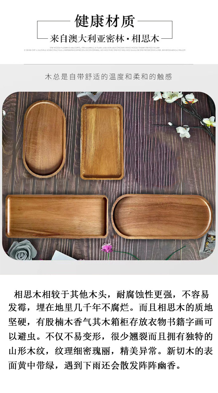 공장 직공급 아카시아 나무 트레이 주방 가정용 과일 접시 크리에이티브 식기 다기능 트레이 도매스토어 가기