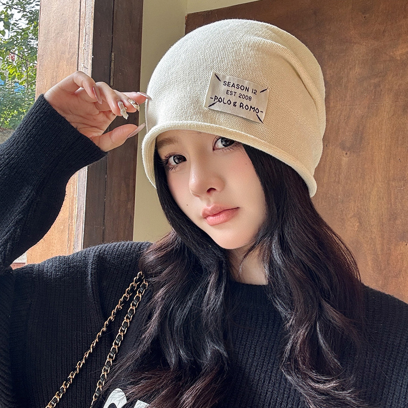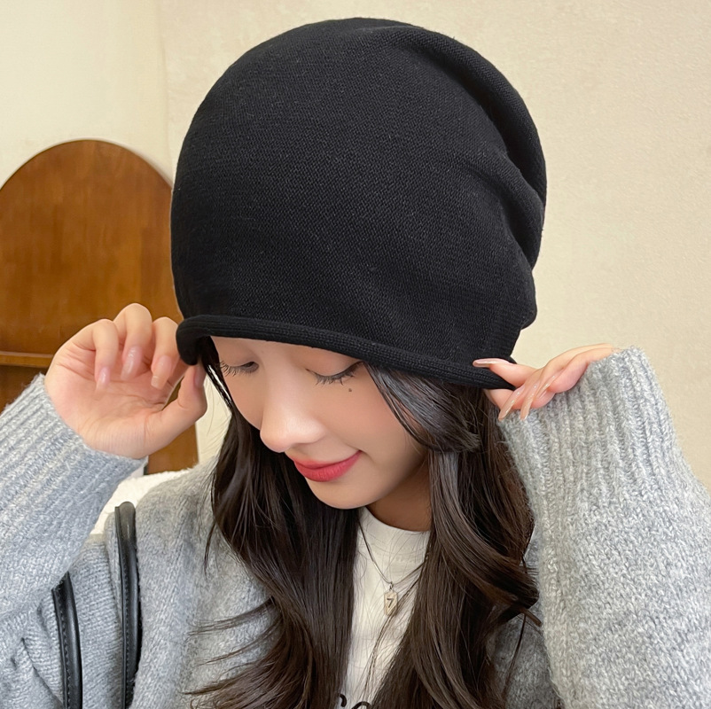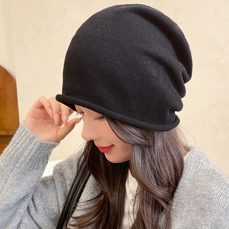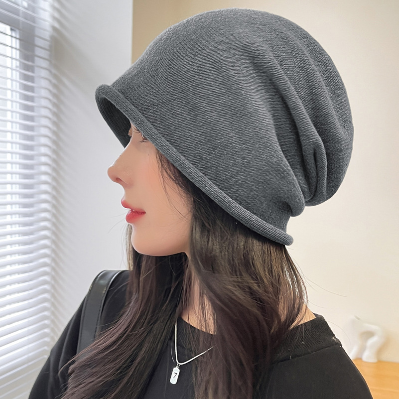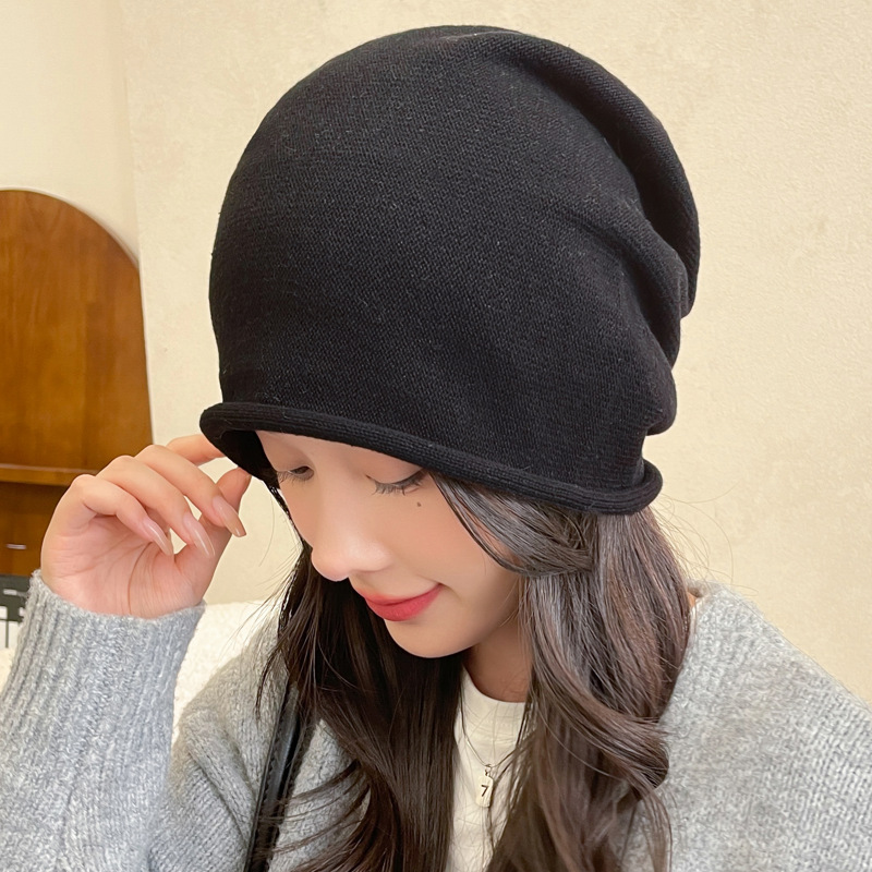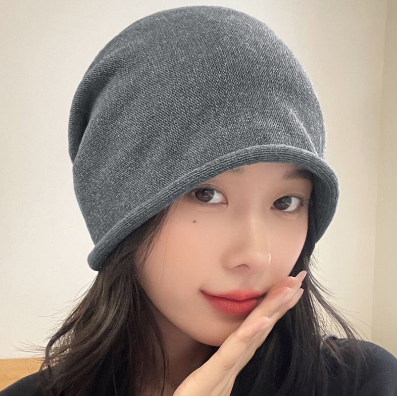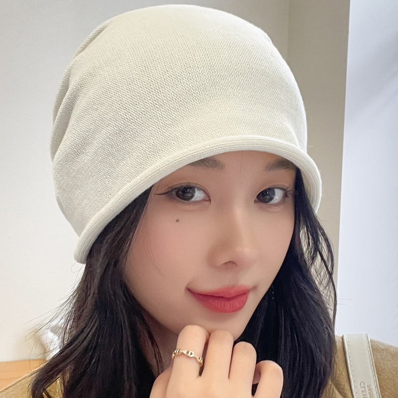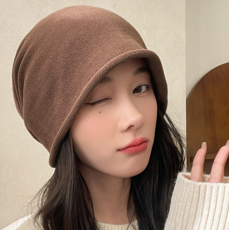 가을과 겨울 니트 컬 힙 캡 한국식 올매치 여성용 느슨한 빅 헤드 울 단색 풀오버 캡