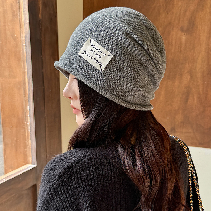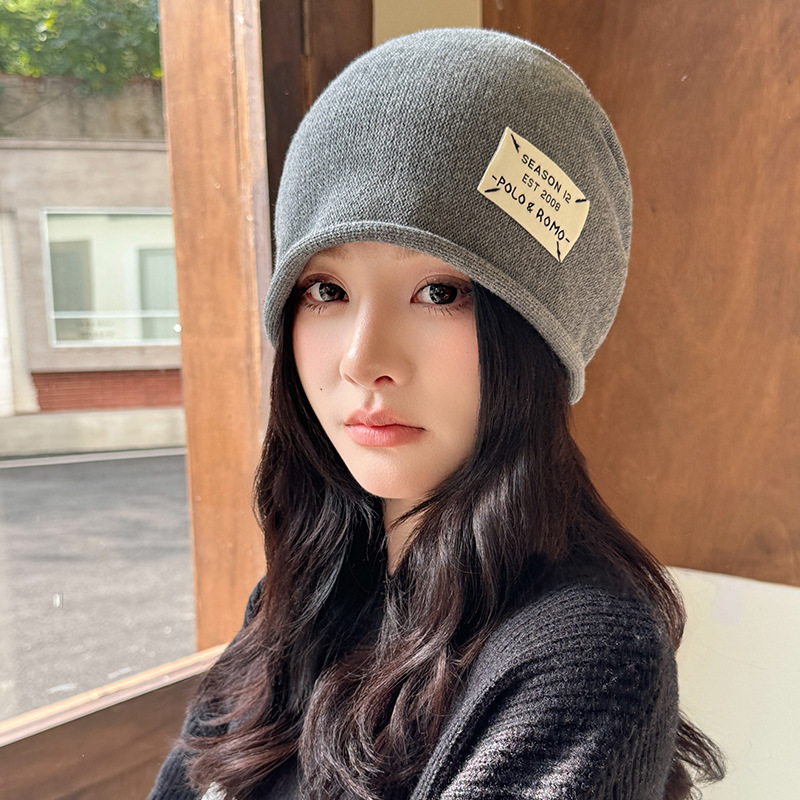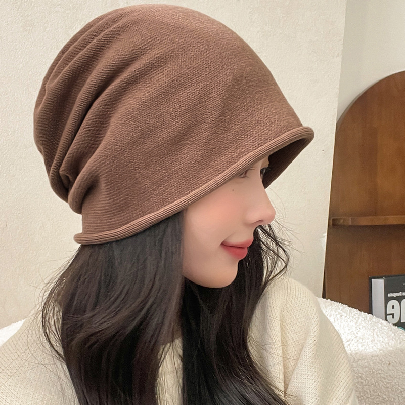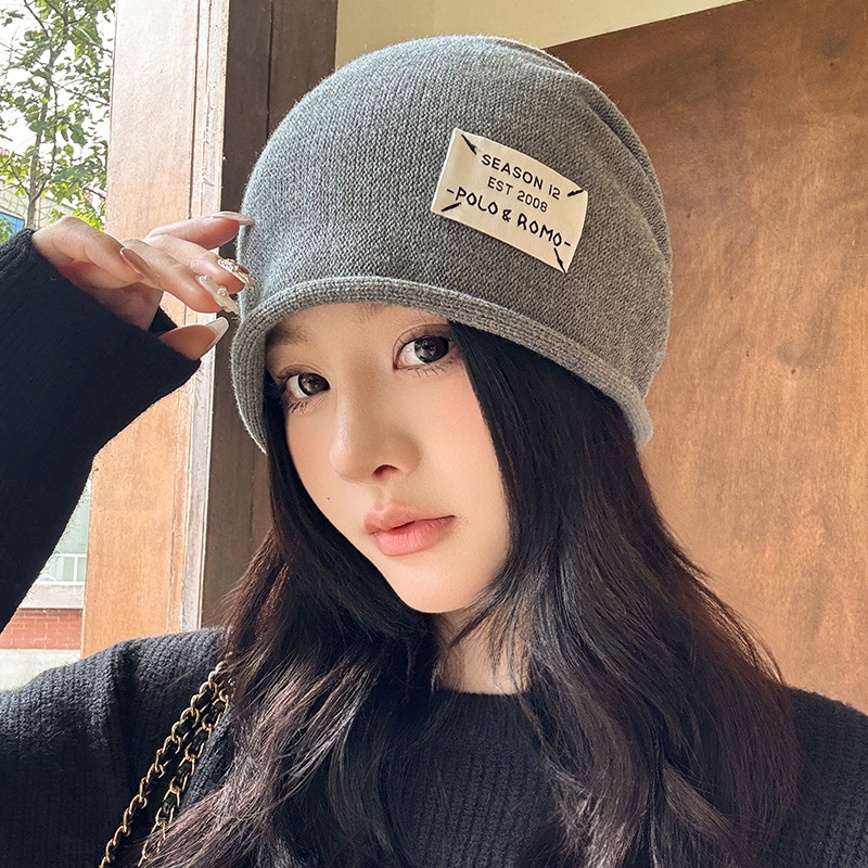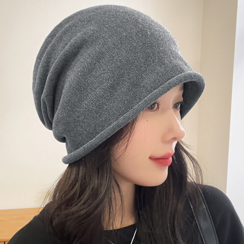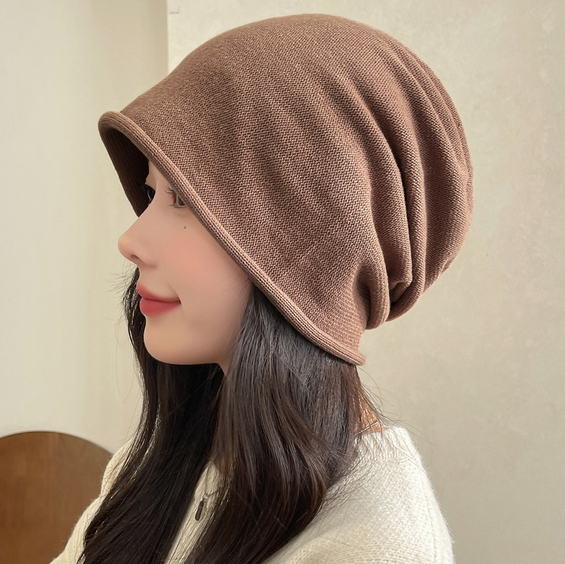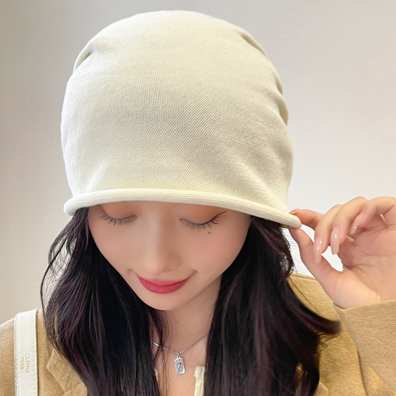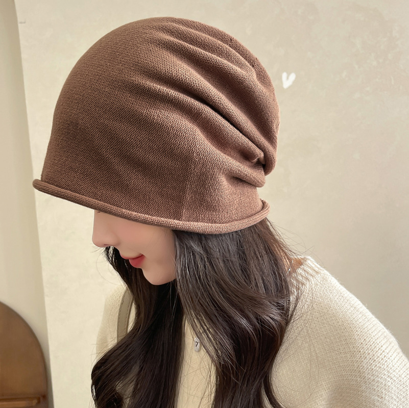 가을과 겨울 니트 컬 힙 캡 한국식 올매치 여성용 느슨한 빅 헤드 울 단색 풀오버 캡