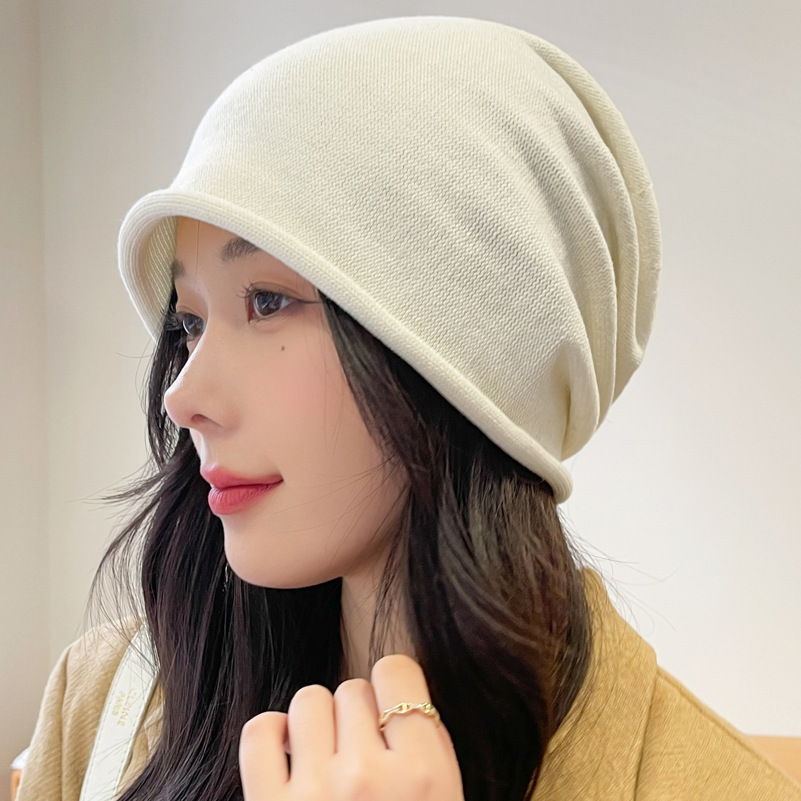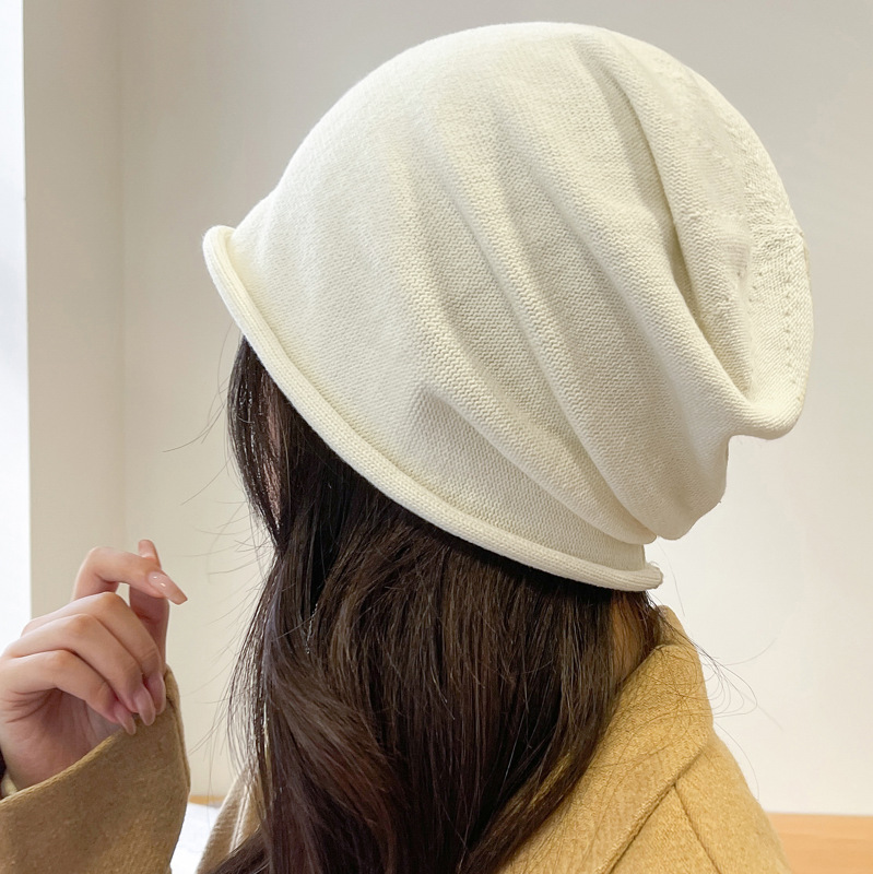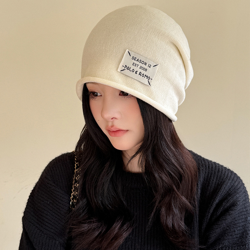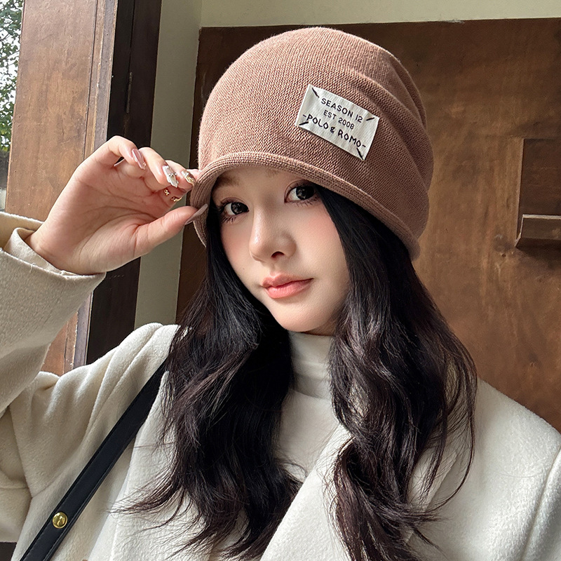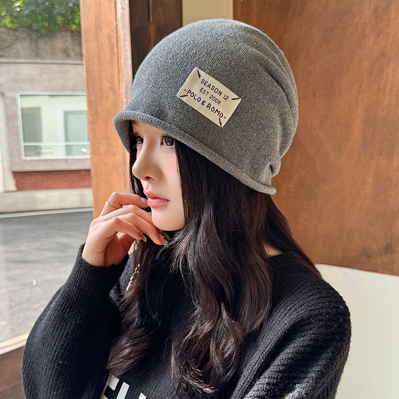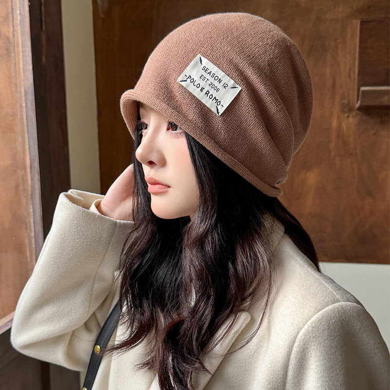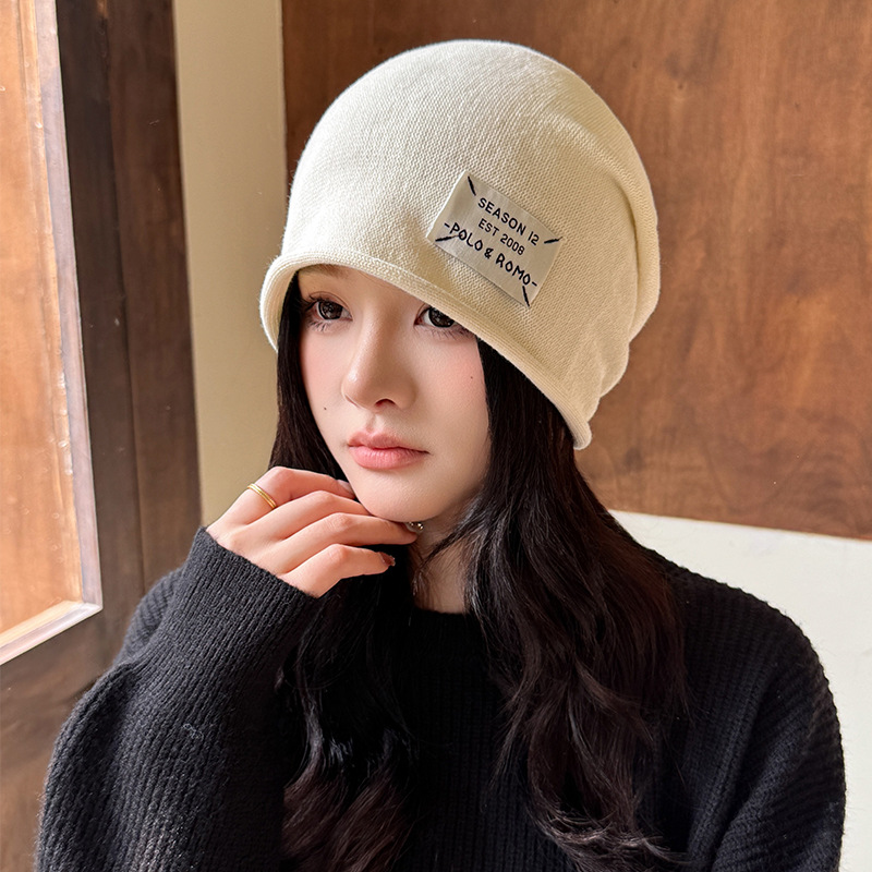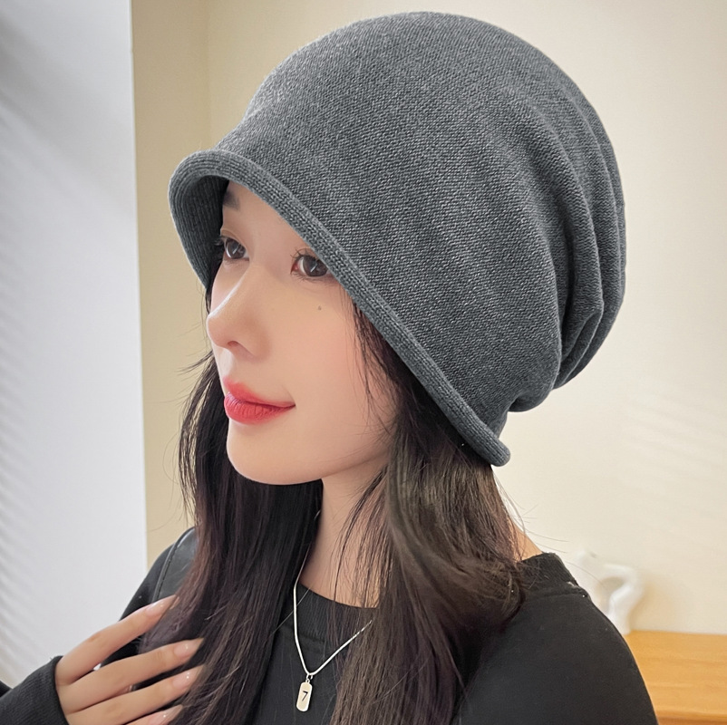 가을과 겨울 니트 컬 힙 캡 한국식 올매치 여성용 느슨한 빅 헤드 울 단색 풀오버 캡