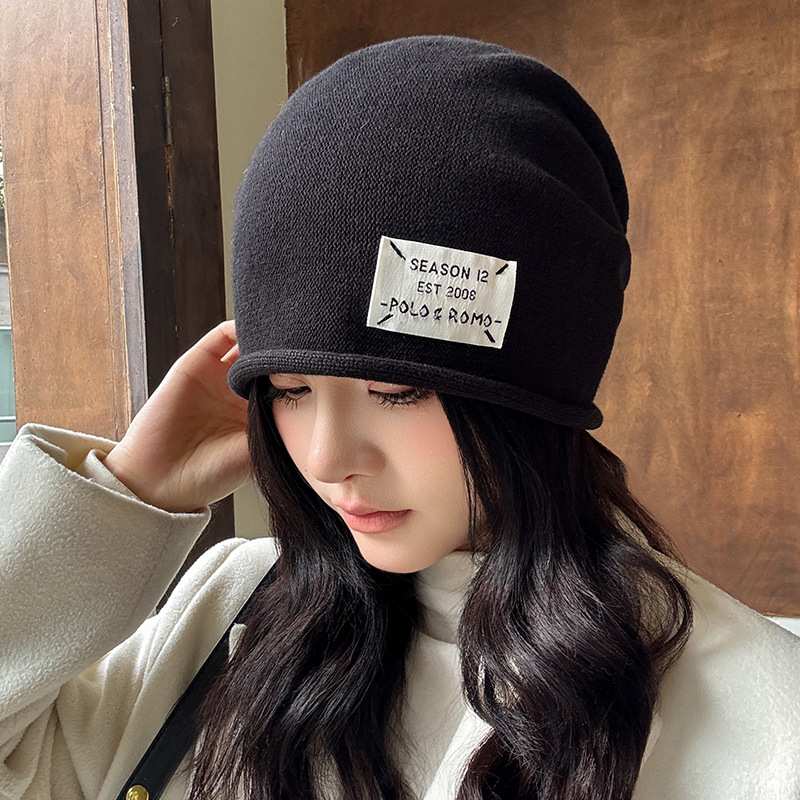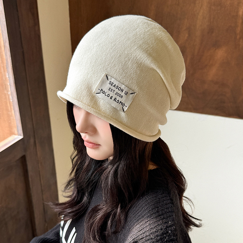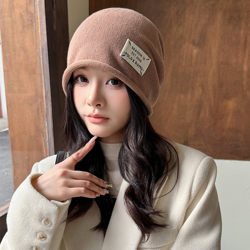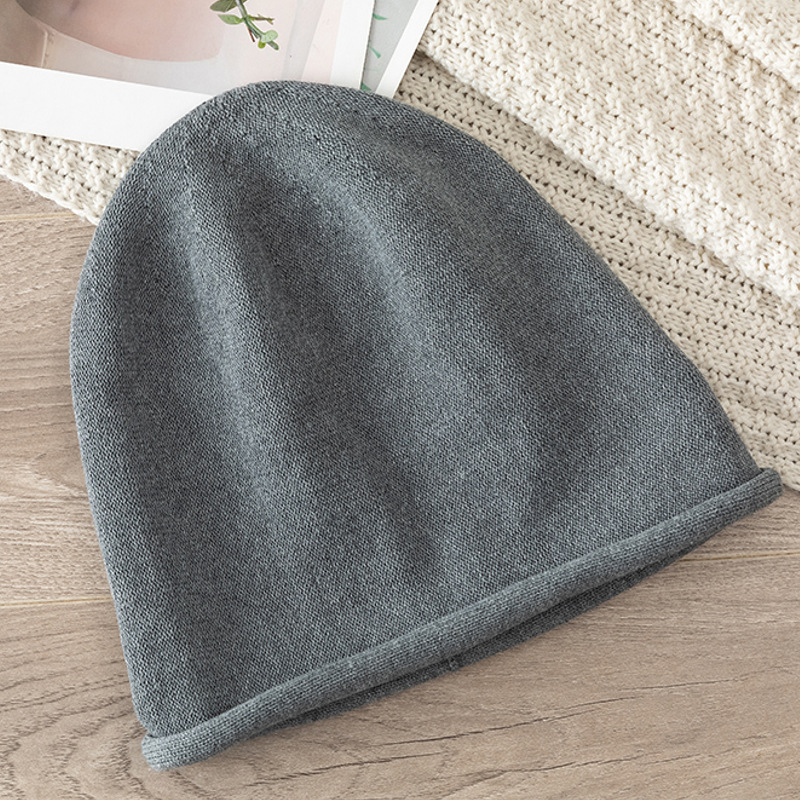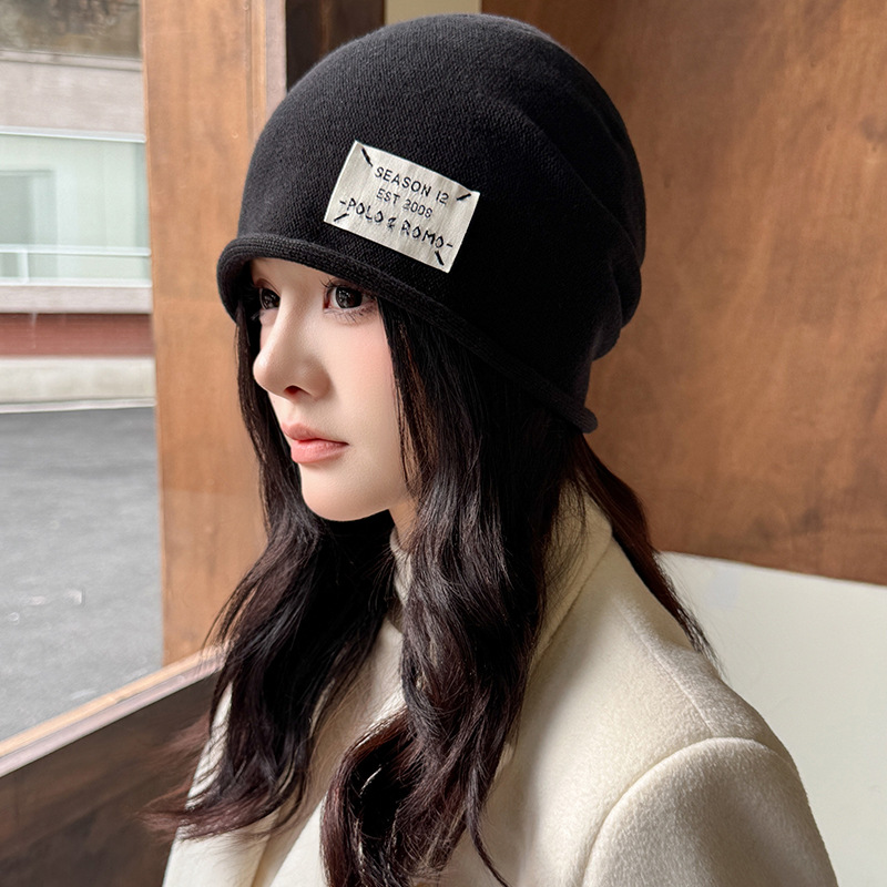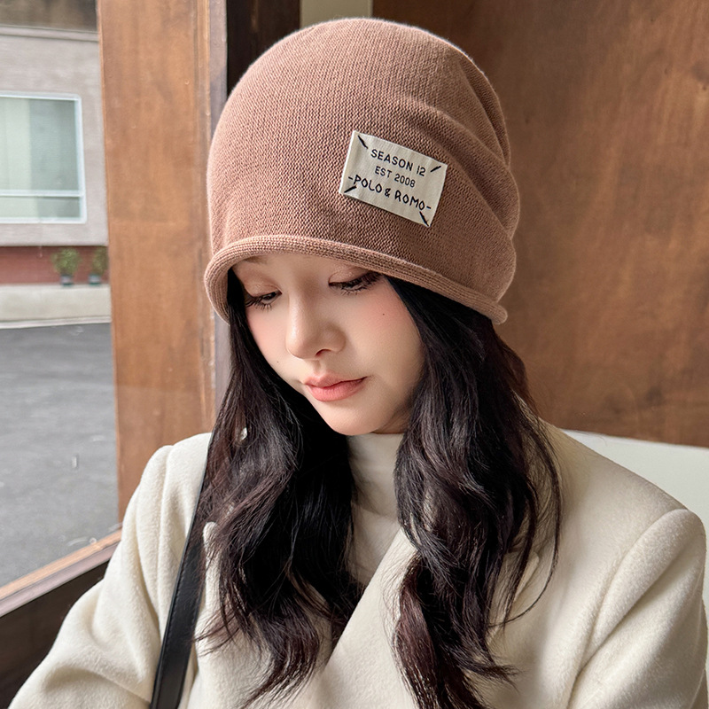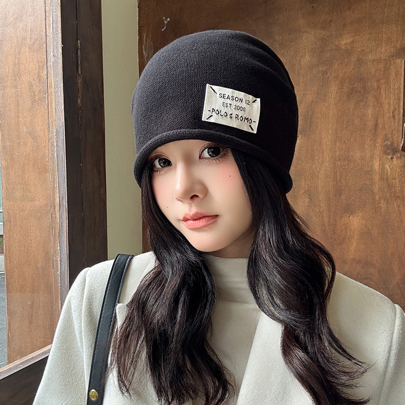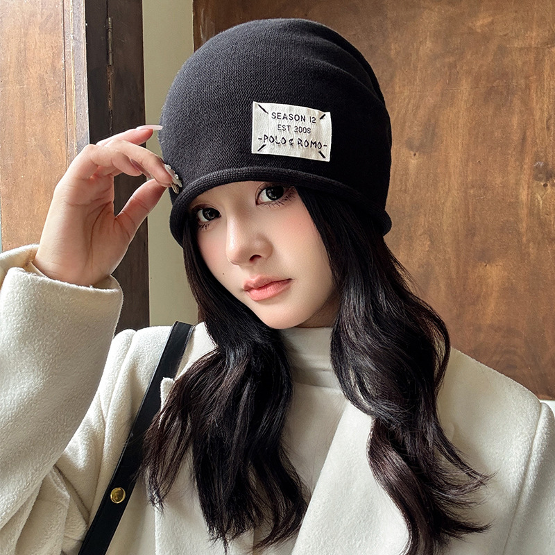 가을과 겨울 니트 컬 힙 캡 한국식 올매치 여성용 느슨한 빅 헤드 울 단색 풀오버 캡